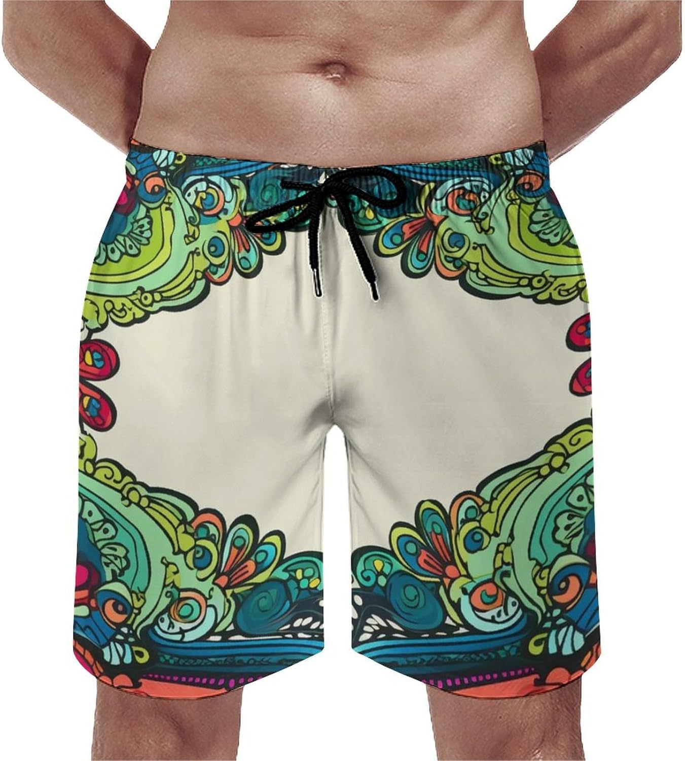 Men’s Swim Trunks Flowers Beach Shorts Quick Dry Summer Bathing Suit Swimwear Beachwear with Pockets