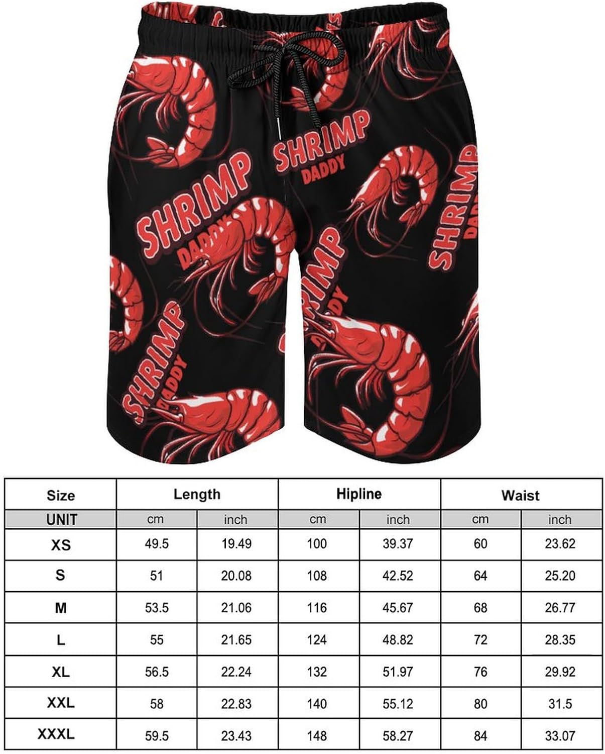 Shrimp Daddy Men’s Swim Trunks Quick Dry Hawaii Board Shorts Mesh Lining Beach Swimwear with Pockets