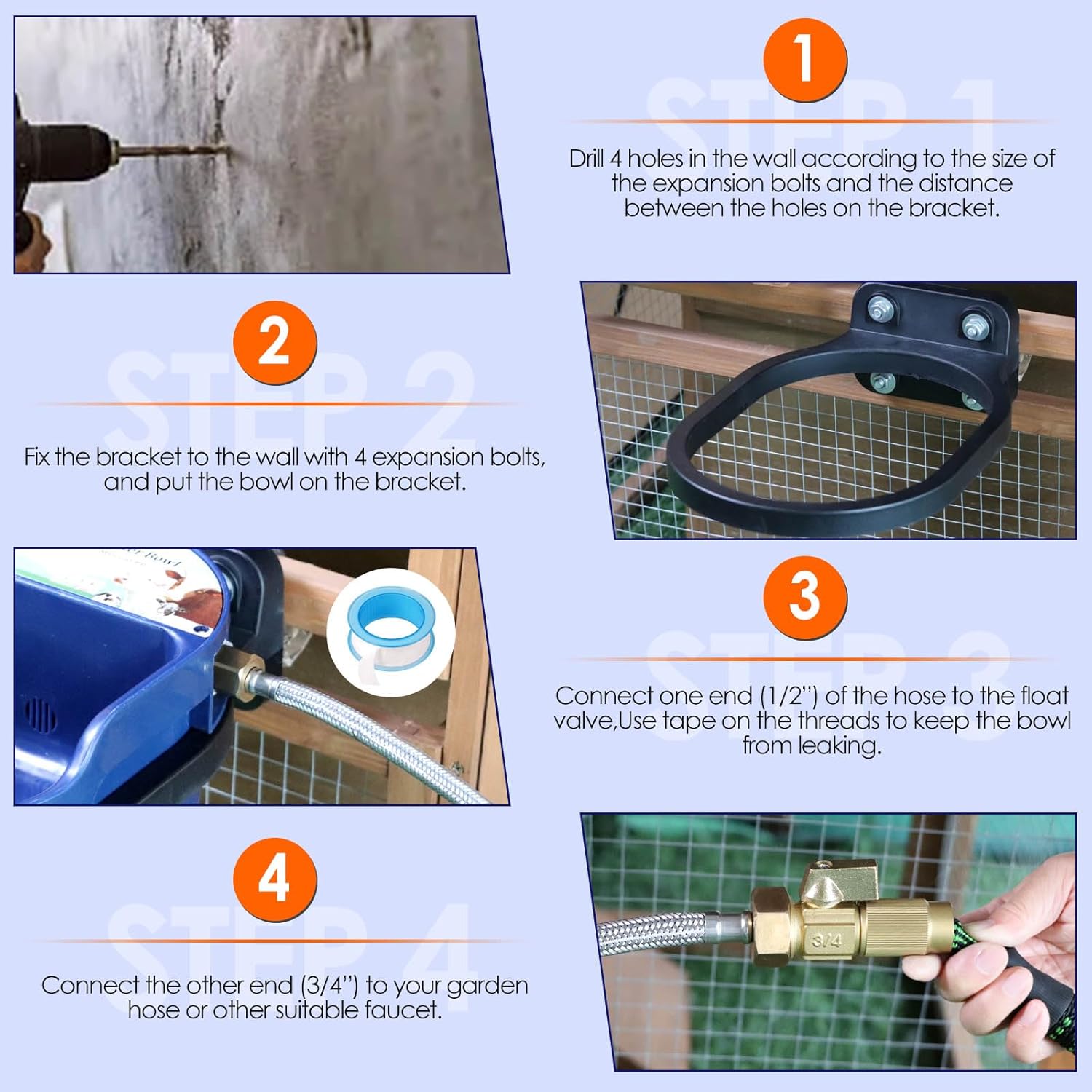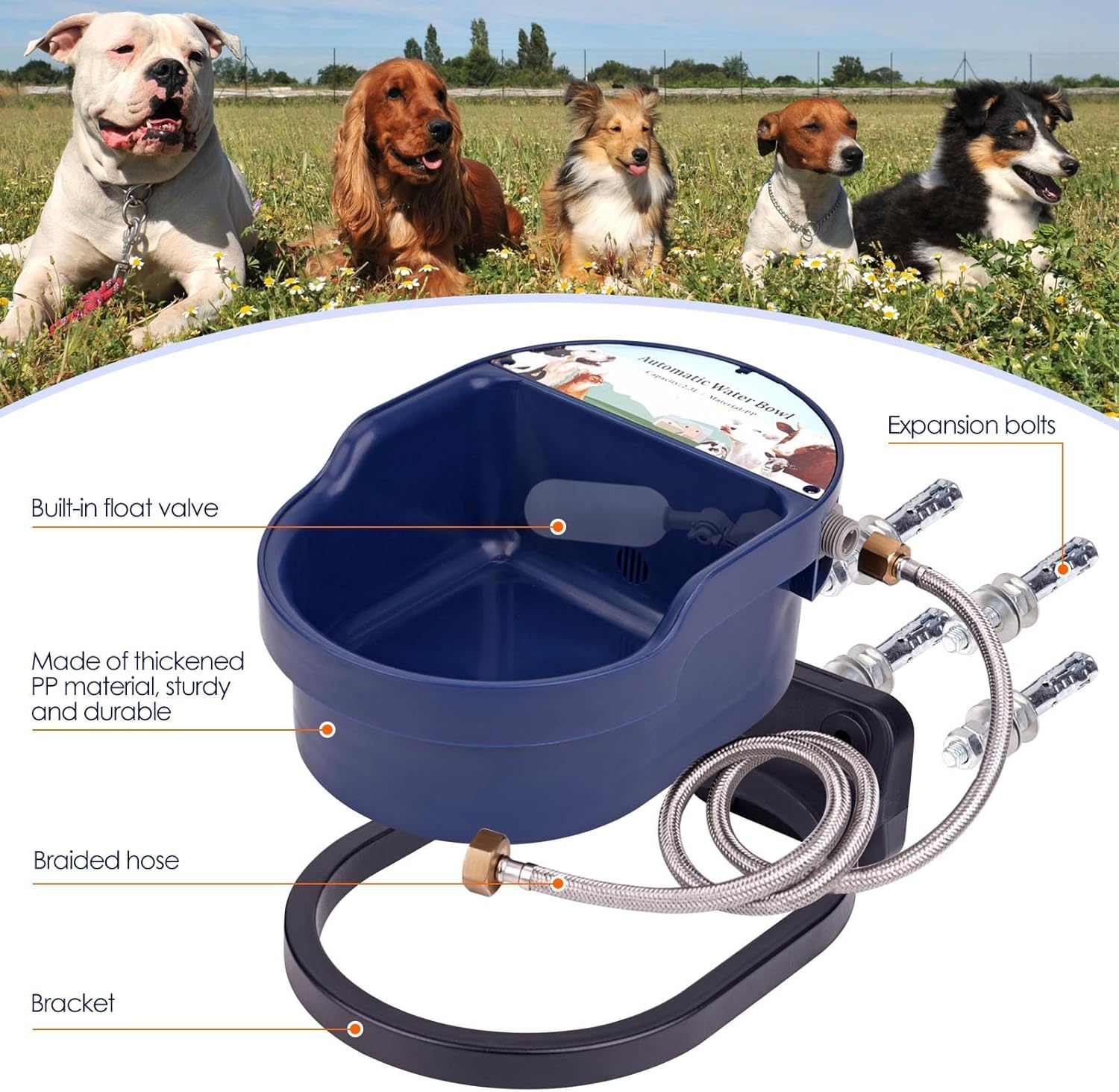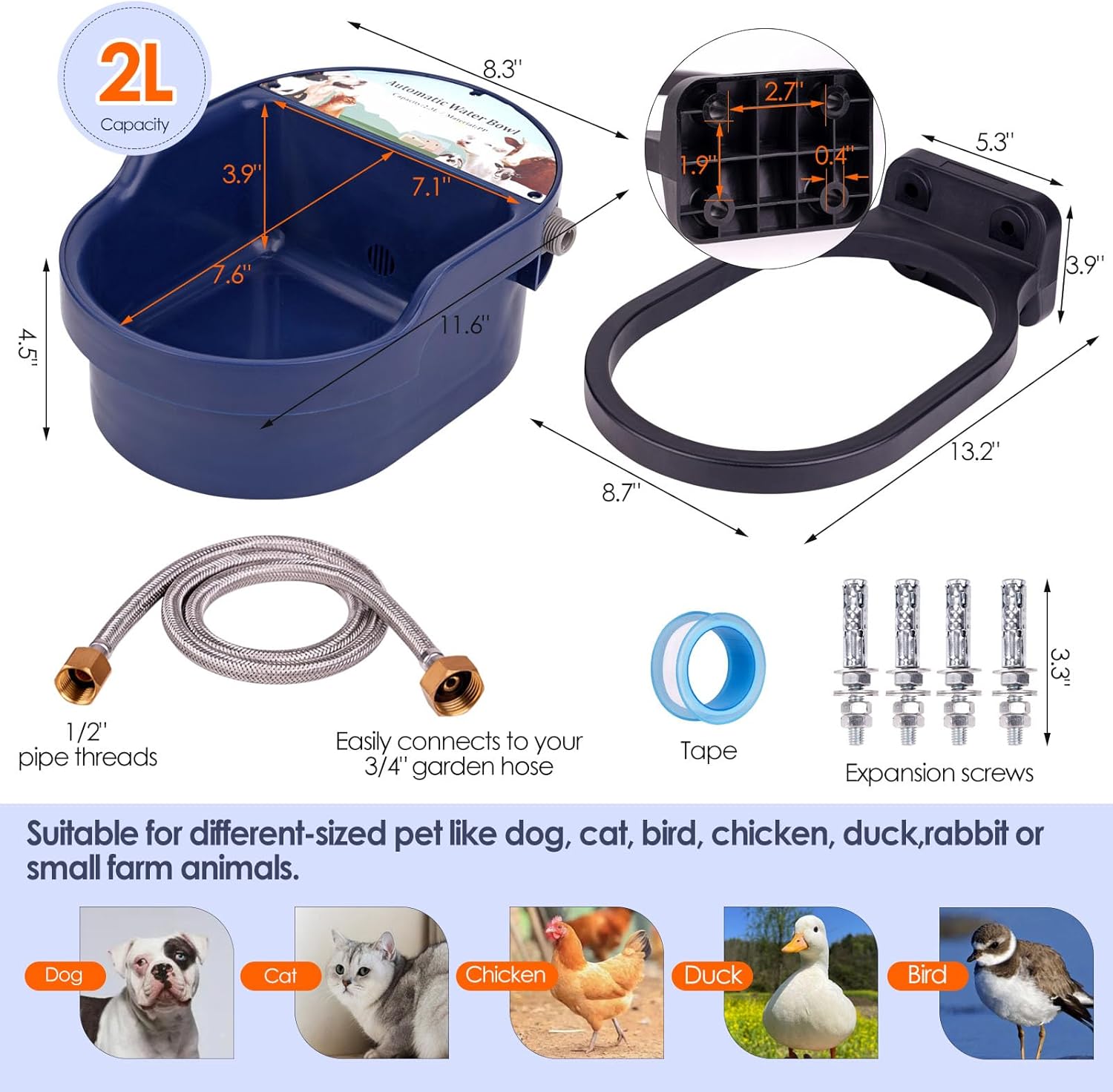 Automatic Dog Water Bowl Dispenser Wall Mounted and Freestanding, 2L Automatic Dog Water Feeder with Hose for Outdoor and Indoor Use, Pet Waterer for Dogs and Cats Bird Chicken