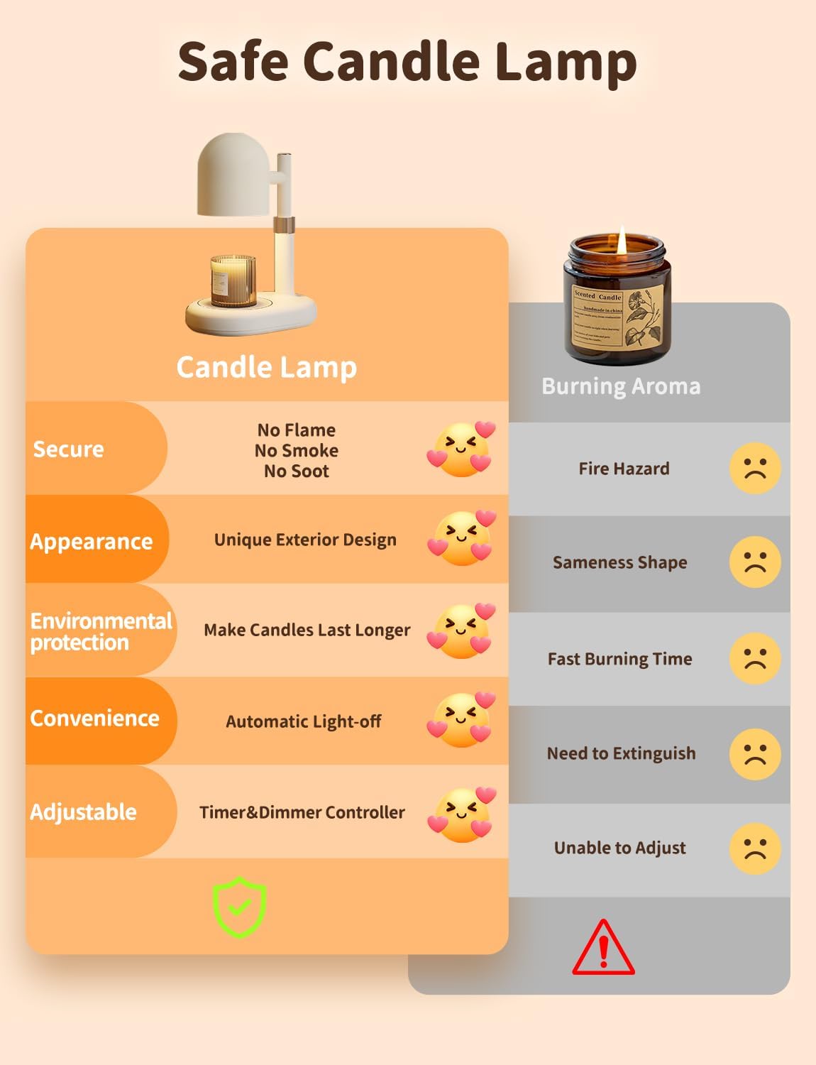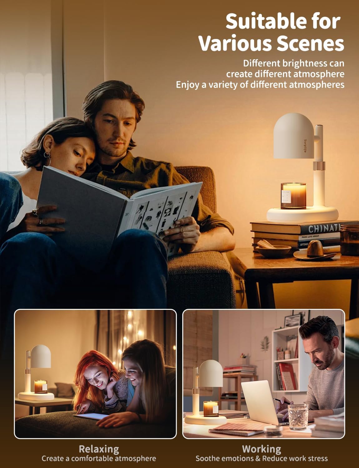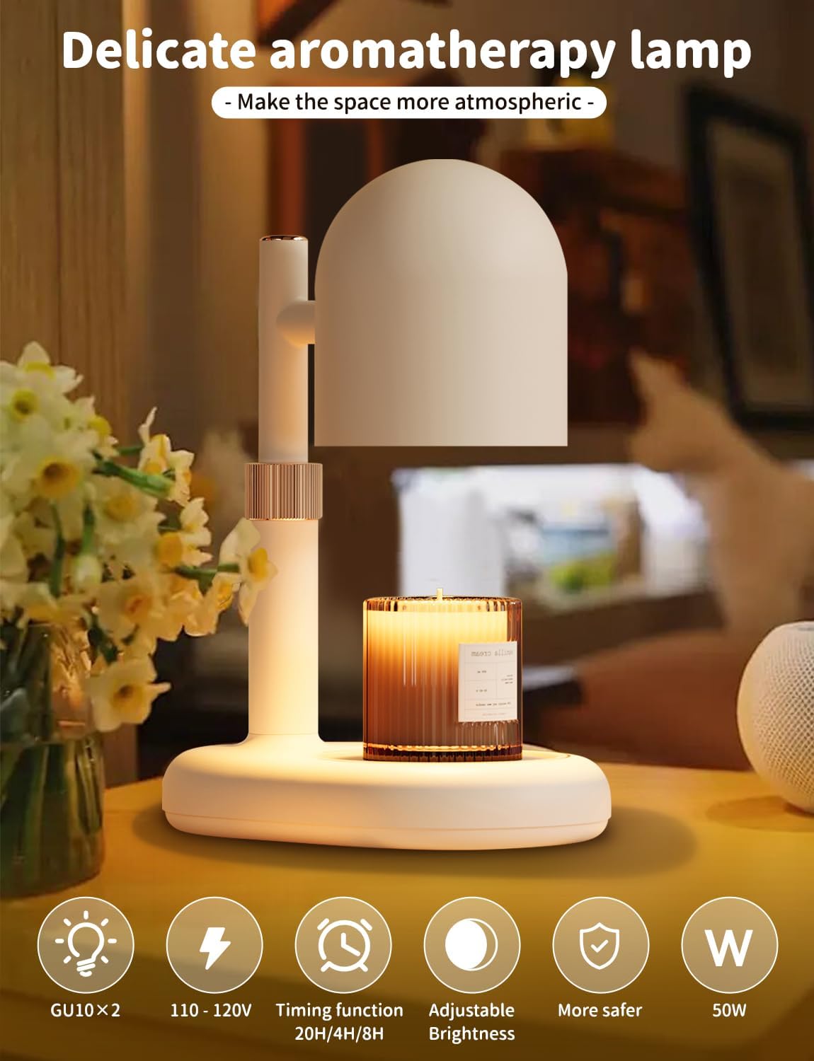 Candle Warmer Lamp with Timer & Dimmer, Adjustable Height Candle Warmer, Wax Warmer Lamp for Candles with 2 GU10 Bulbs, Home Decor House Warming Gifts