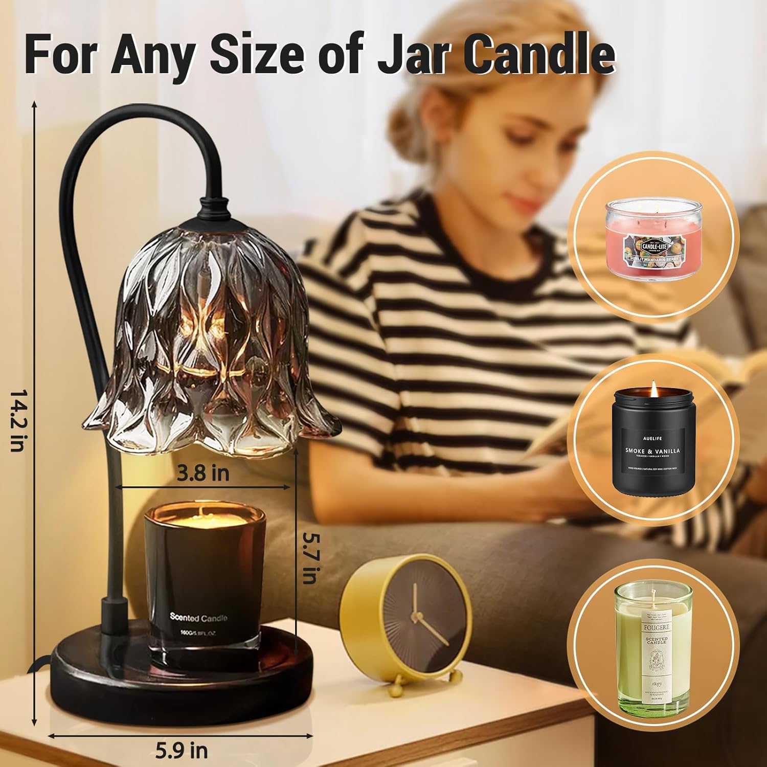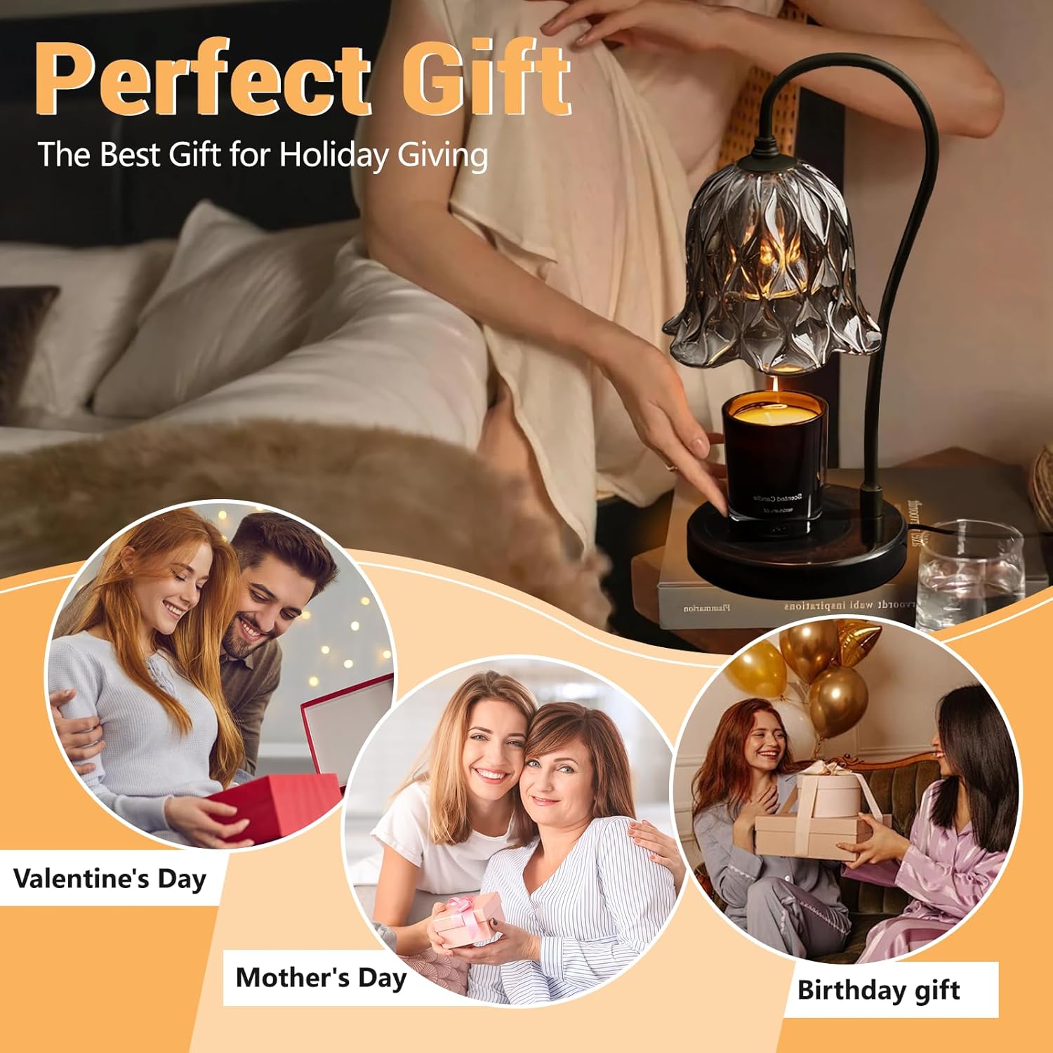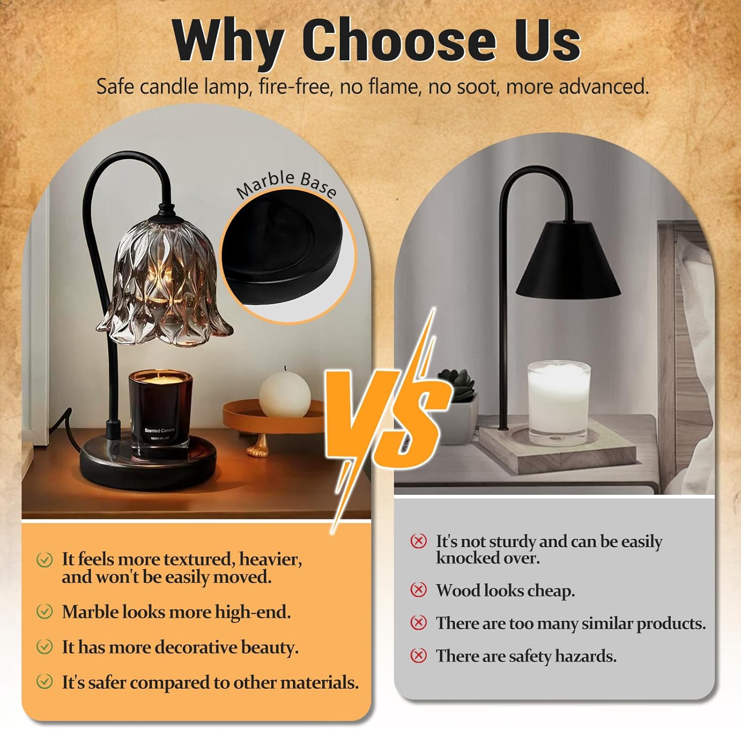 Candle Warmer Lamp with Timer&Dimmer, Adjustable Brightness Marble Base Electric Wax Melts Warmer, Home Decor Candle Warming Lamp Gifts with 2 Bulbs