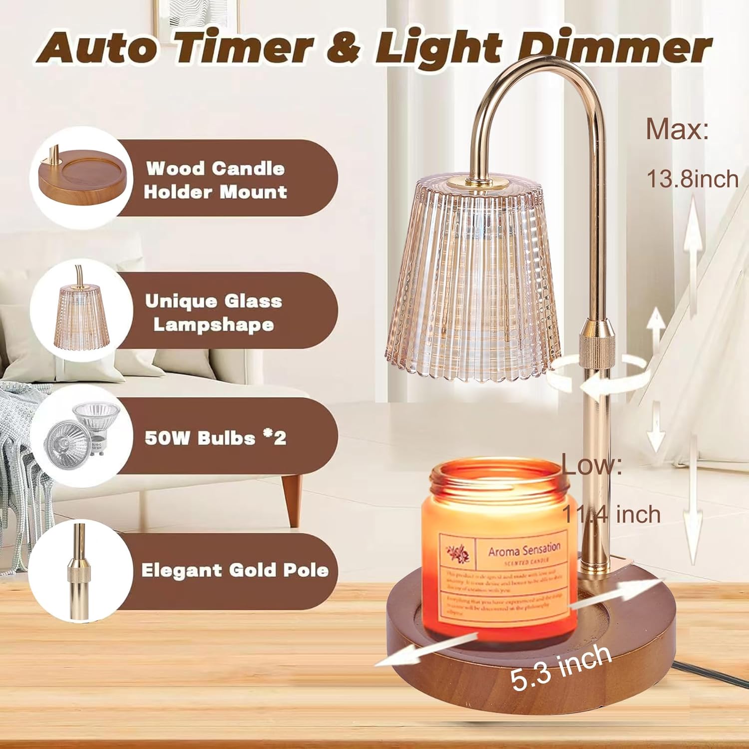 Electric Timer Candle Warmer Light,with Bracket Dimmable Candles Wax Glass Warmers Lamps for Jar Candles Burner No Flame Scented Melting Warming Lantern Adjustable Height(50W*4PCS) (2Pack-C)