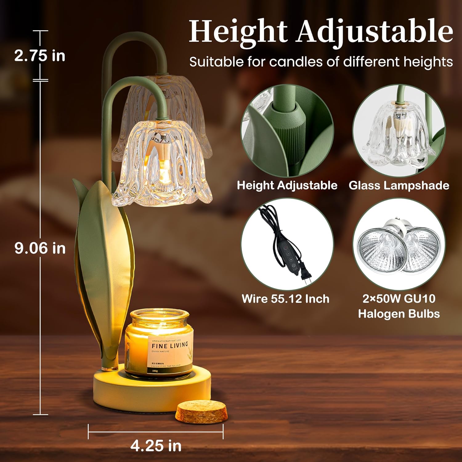 Flower Candle Warmer Lamp,Birthday Gifts for Women Mom,Candle Warmer Lamp with Timer Dimmer,Adjustable Height Wax Warmer,Wax Melt Warmer House Warming Gifts New Home Bedroom Office Décor
