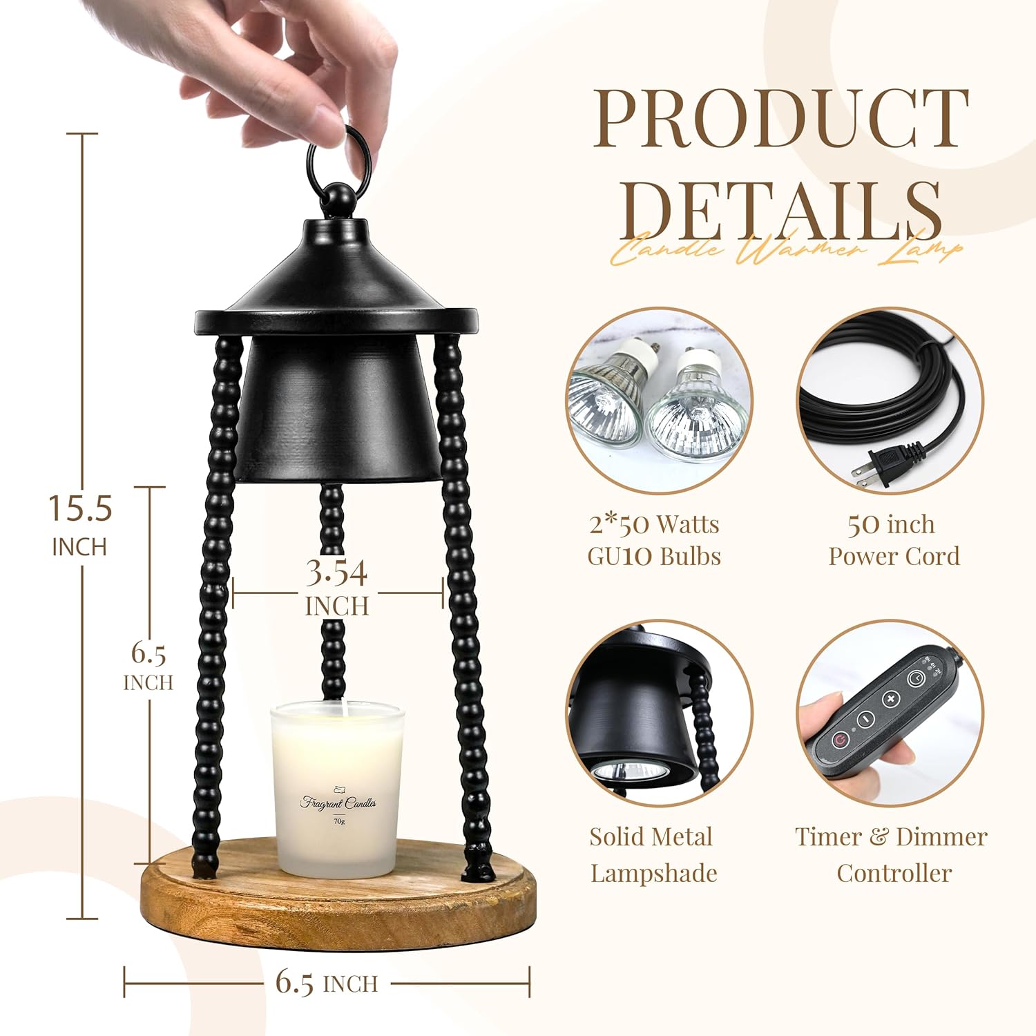 Lighthouse Candle Warmer Lamp with Timer & Dimmer, Wax Melt Warmer for Jar Candles, Includes 2 Bulbs โ Birthday & Mother’s Day Gifts for Mom, Women, Friends, Sisters, Housewarming & Home Decor (Black)