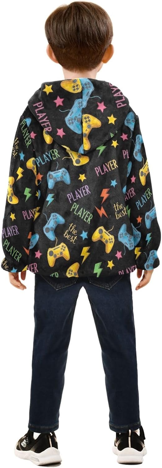 CHIFIGNO Colorful Game Controllers Kids Warm up Jacket Fleece Jacket for Fall Winter 3T