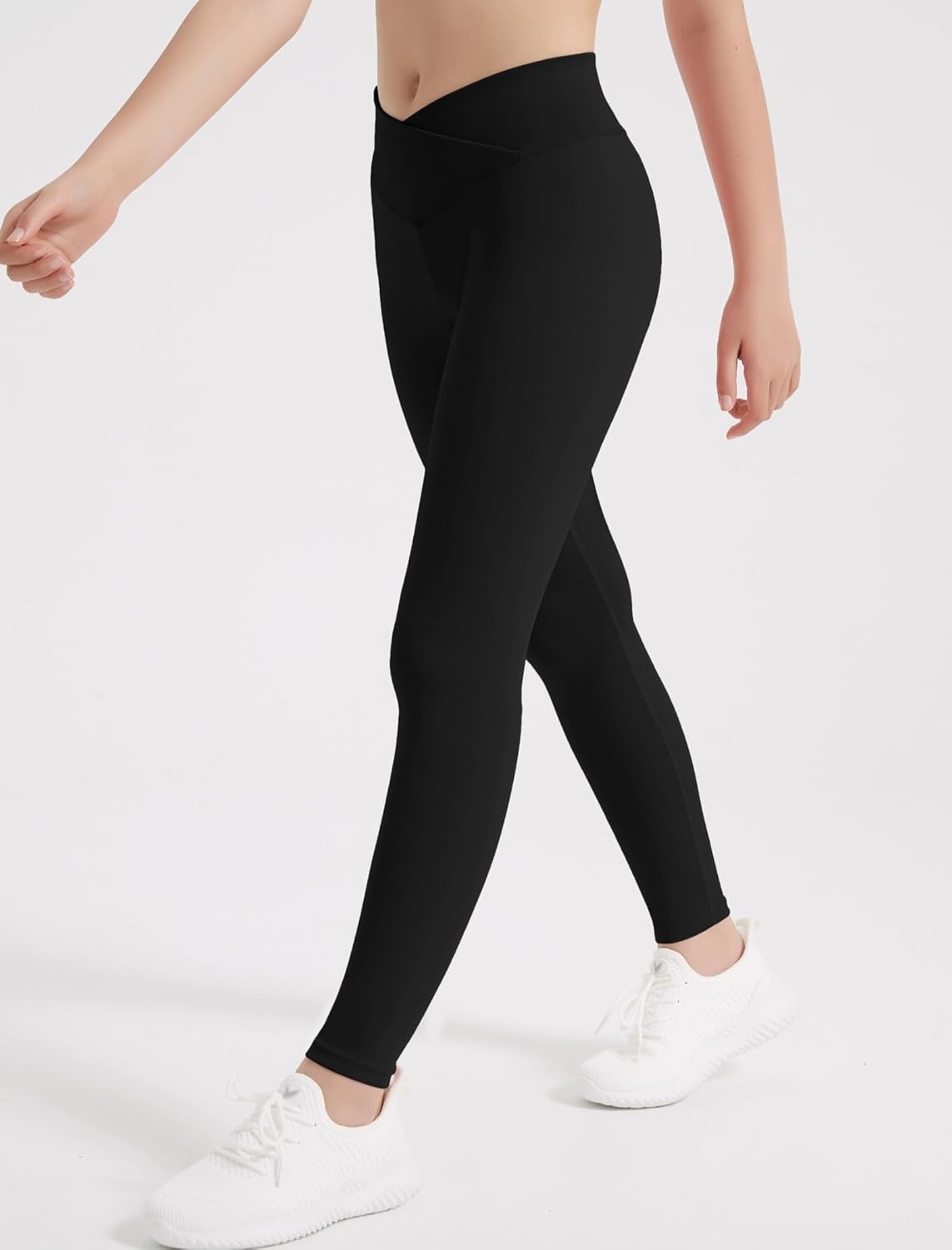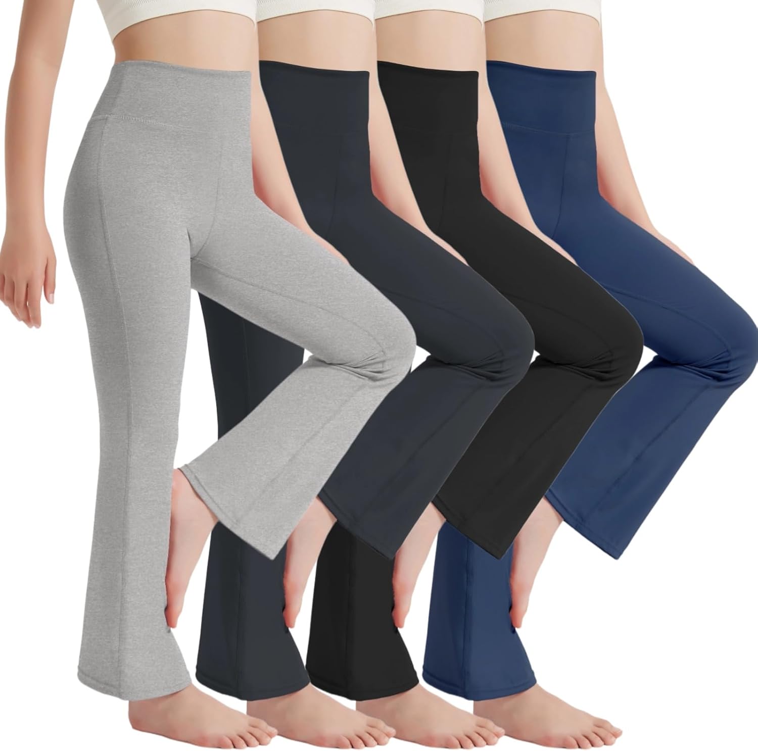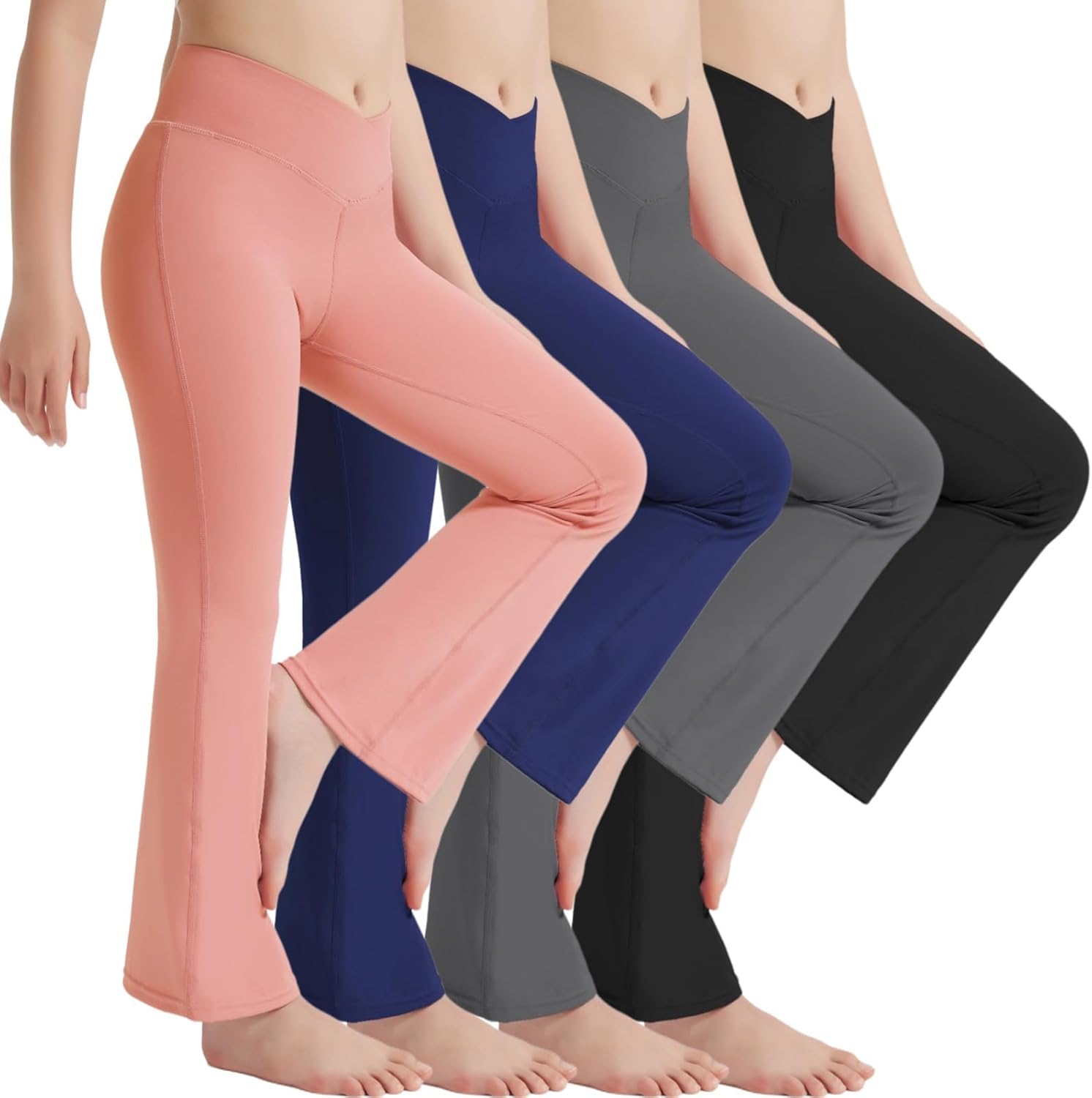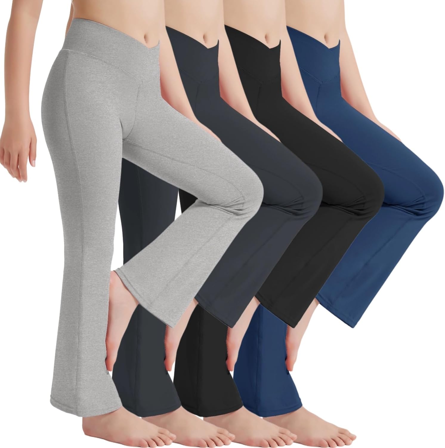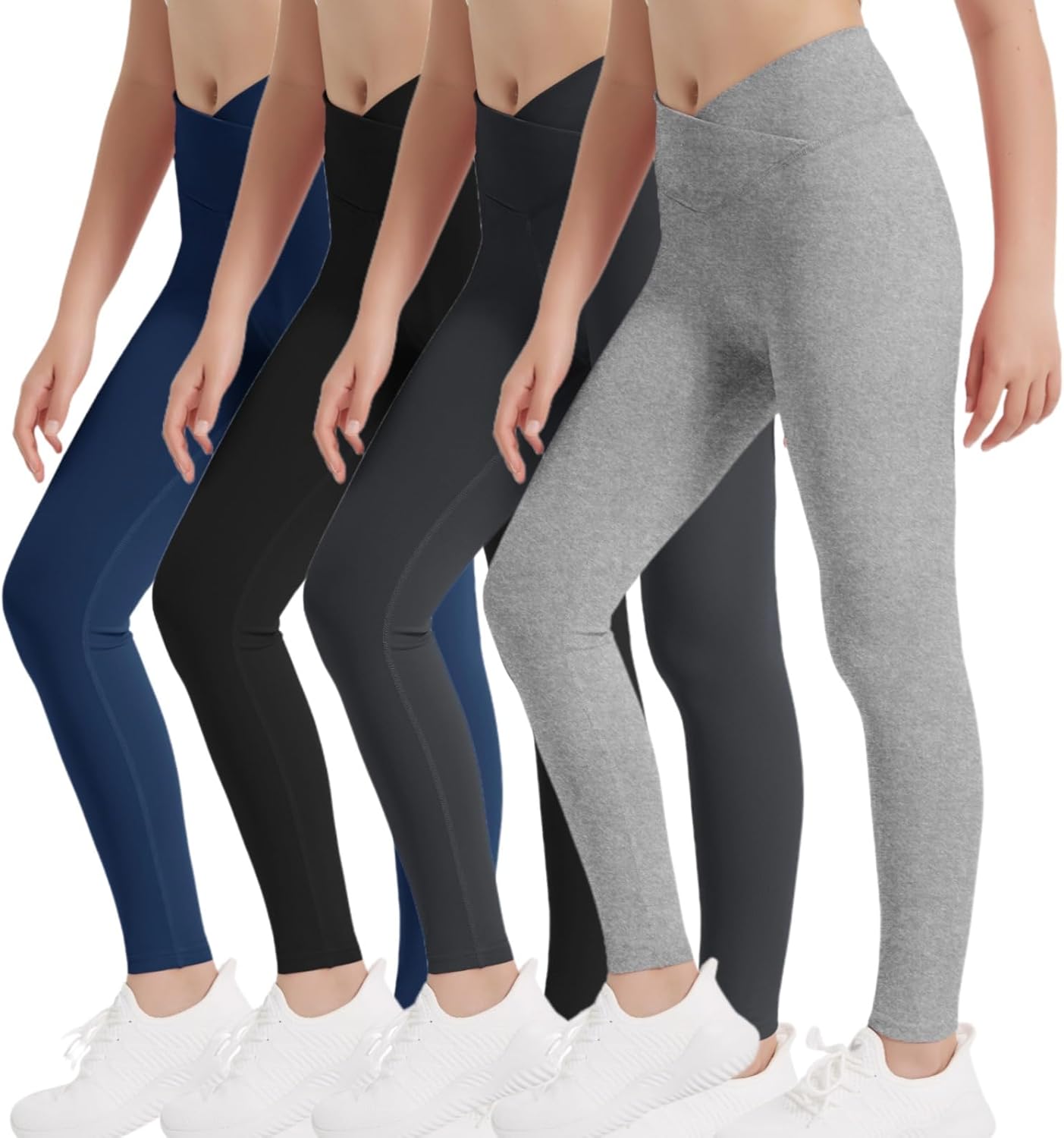 EXARUS 4 Pack Girls Leggings Teen Yoga Pants Crossover V Waist Ankle/Full Length High Waisted for Sports Tween Casual