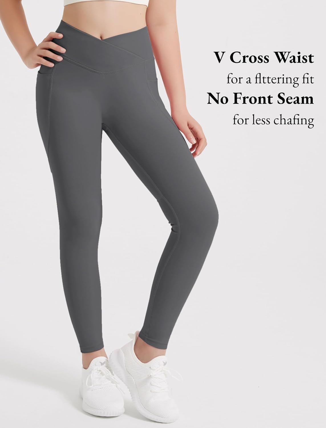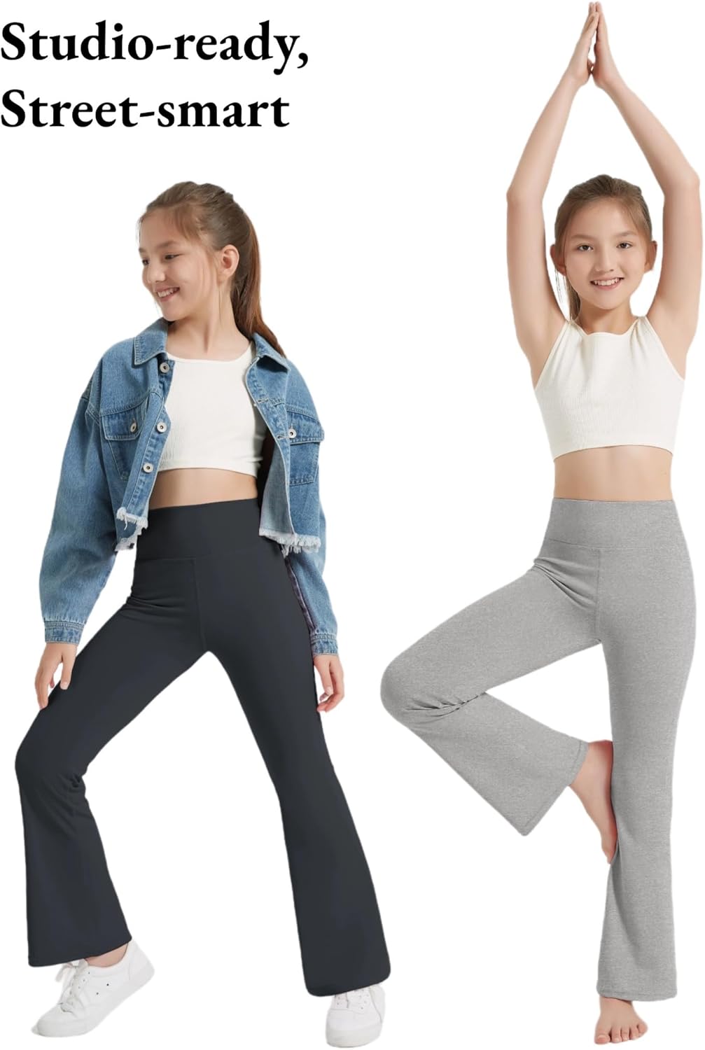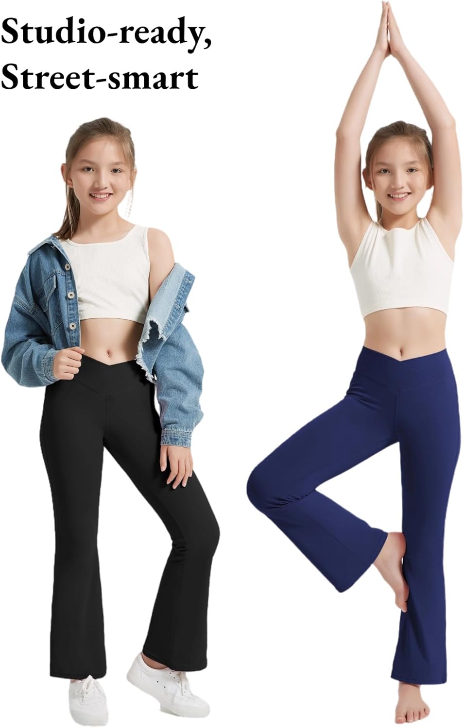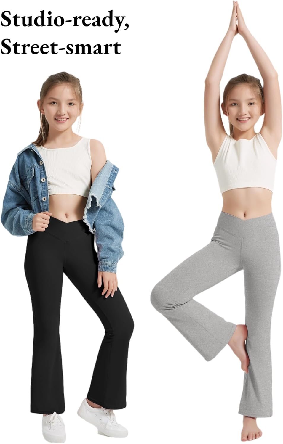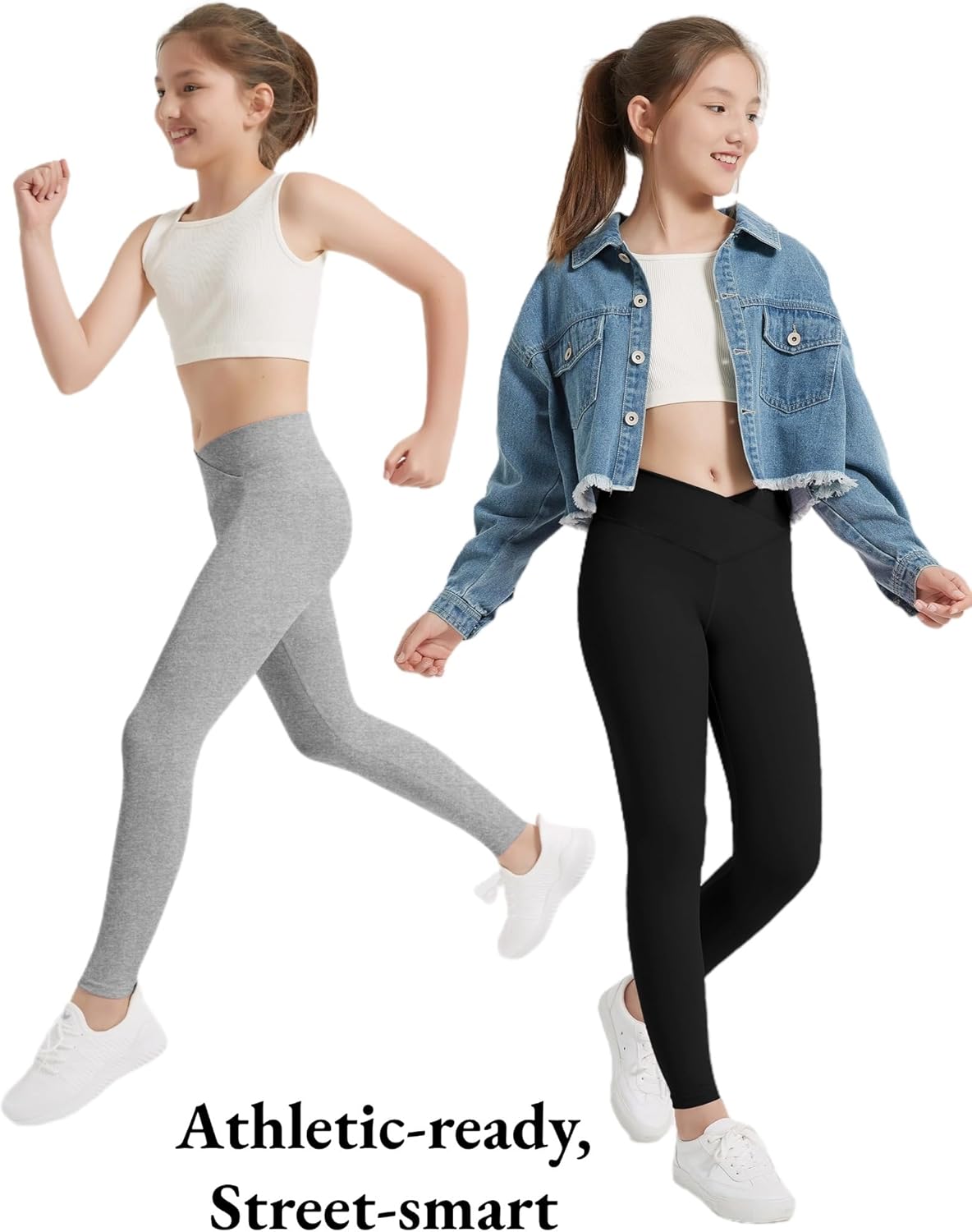 EXARUS 4 Pack Girls Leggings Teen Yoga Pants Crossover V Waist Ankle/Full Length High Waisted for Sports Tween Casual