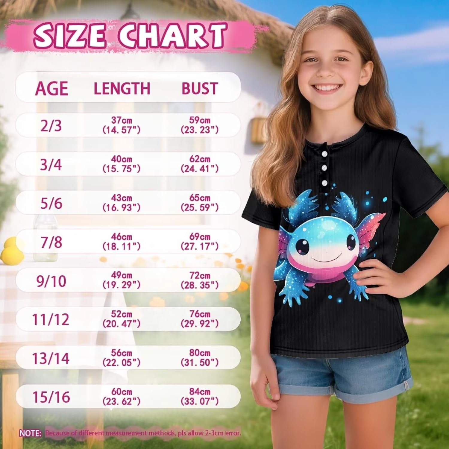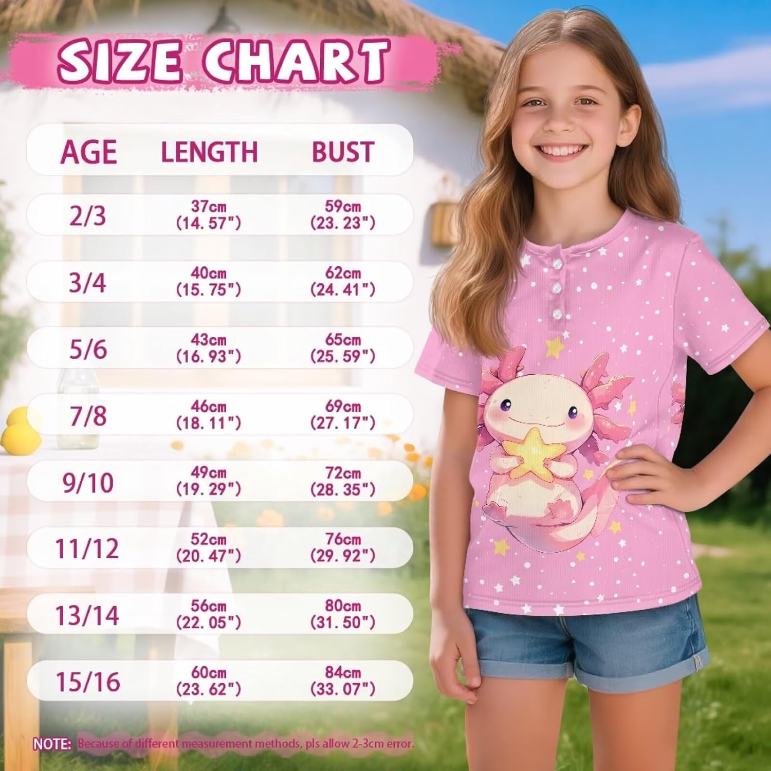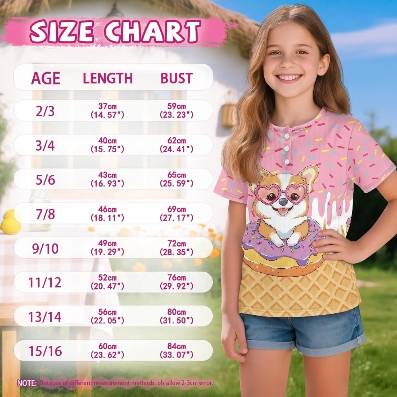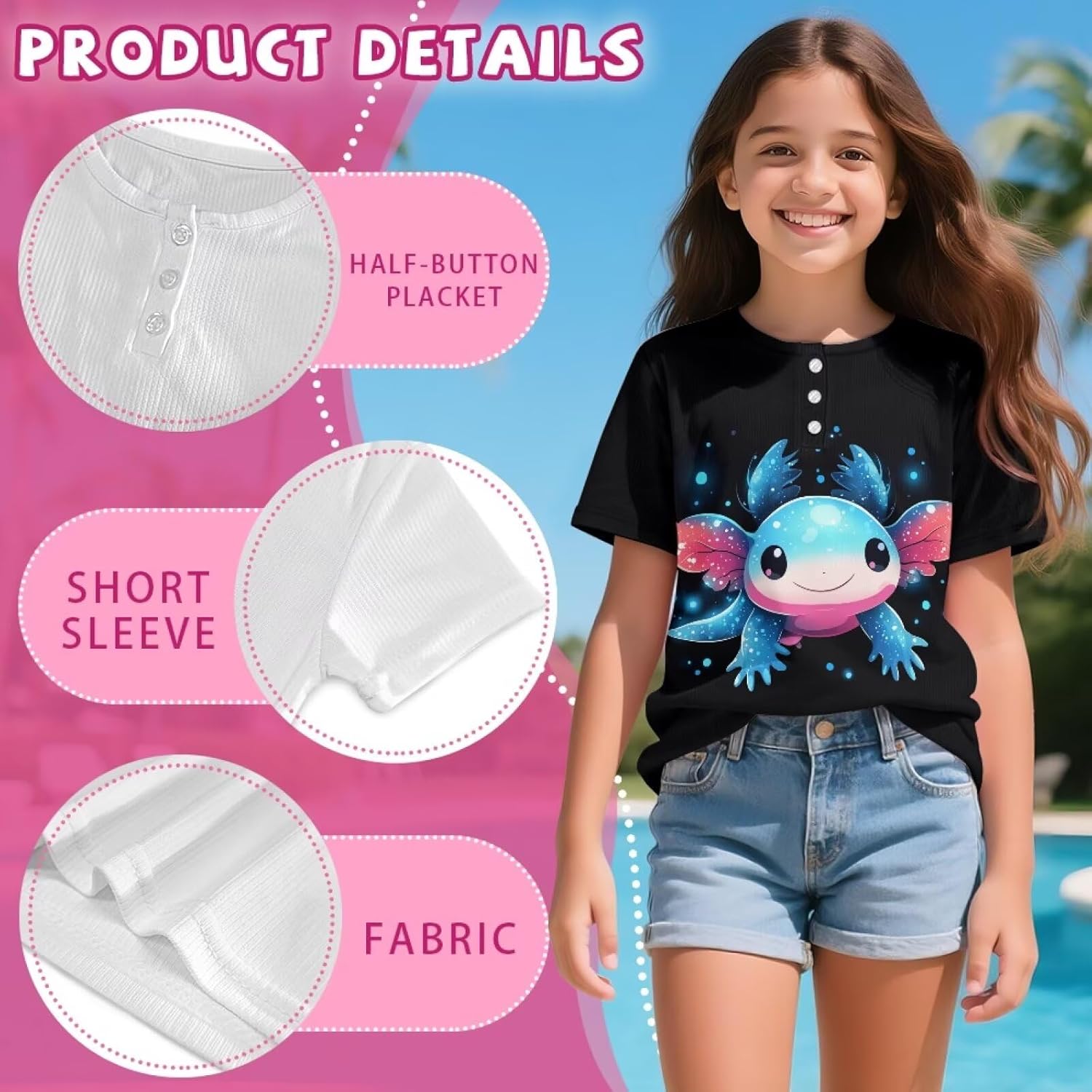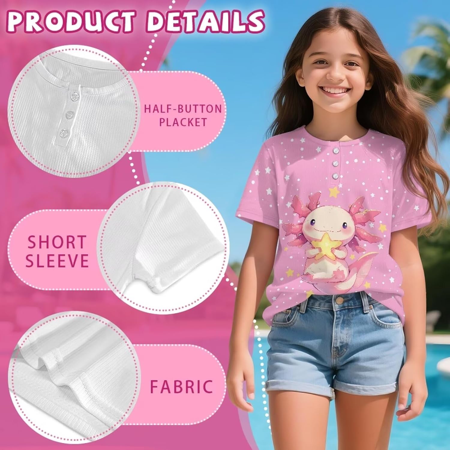 Girls Shirt Short Sleeve T-Shirt Henley Casual Basic Summer Tee Tops for Kids Teen 2-12 Years