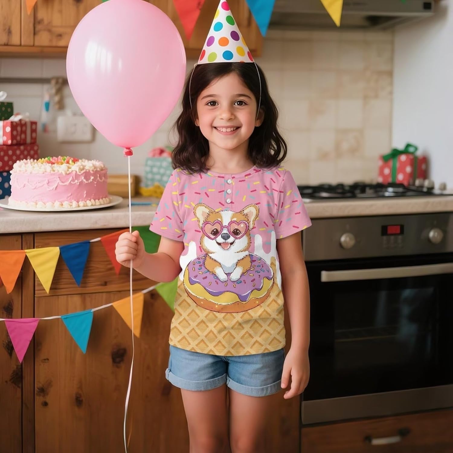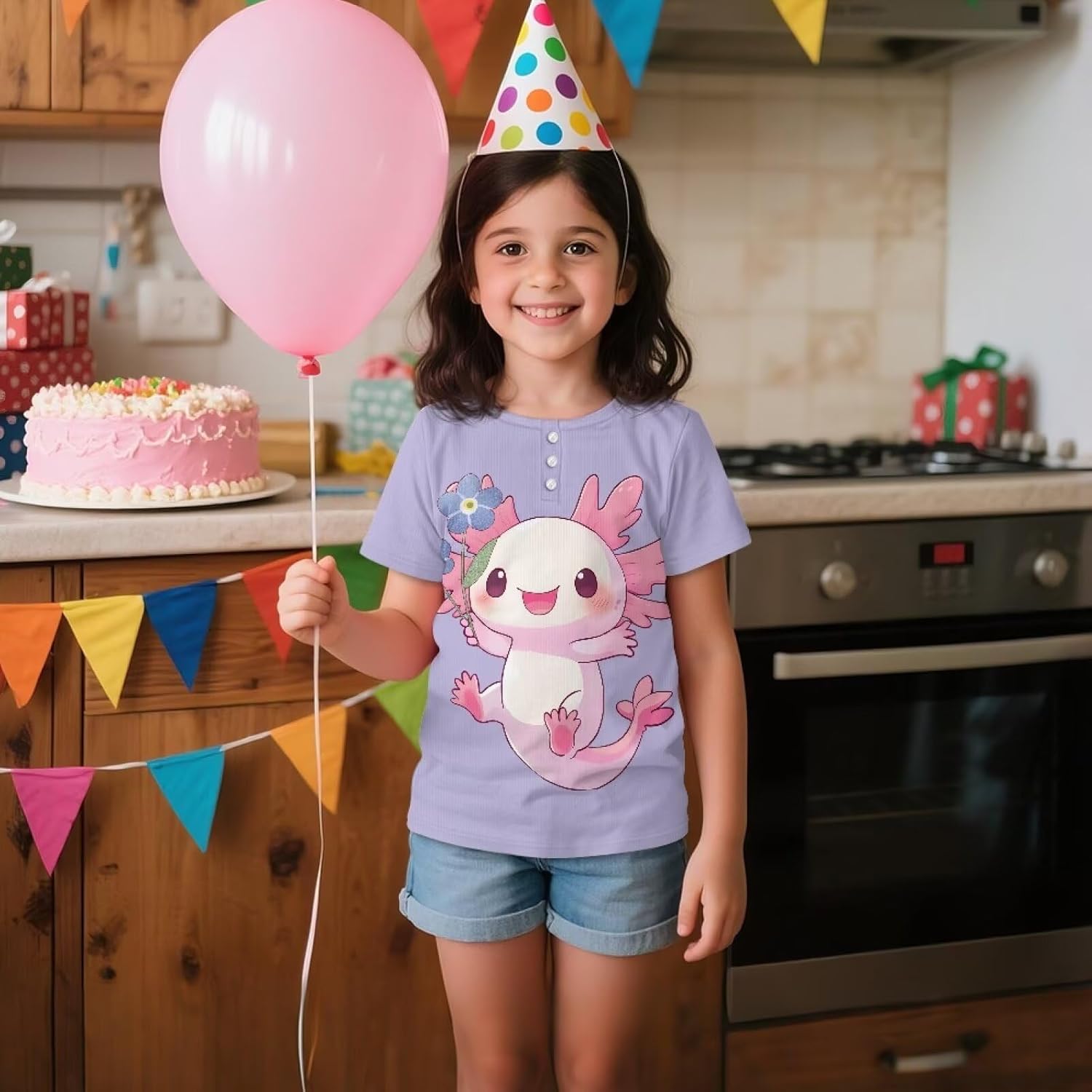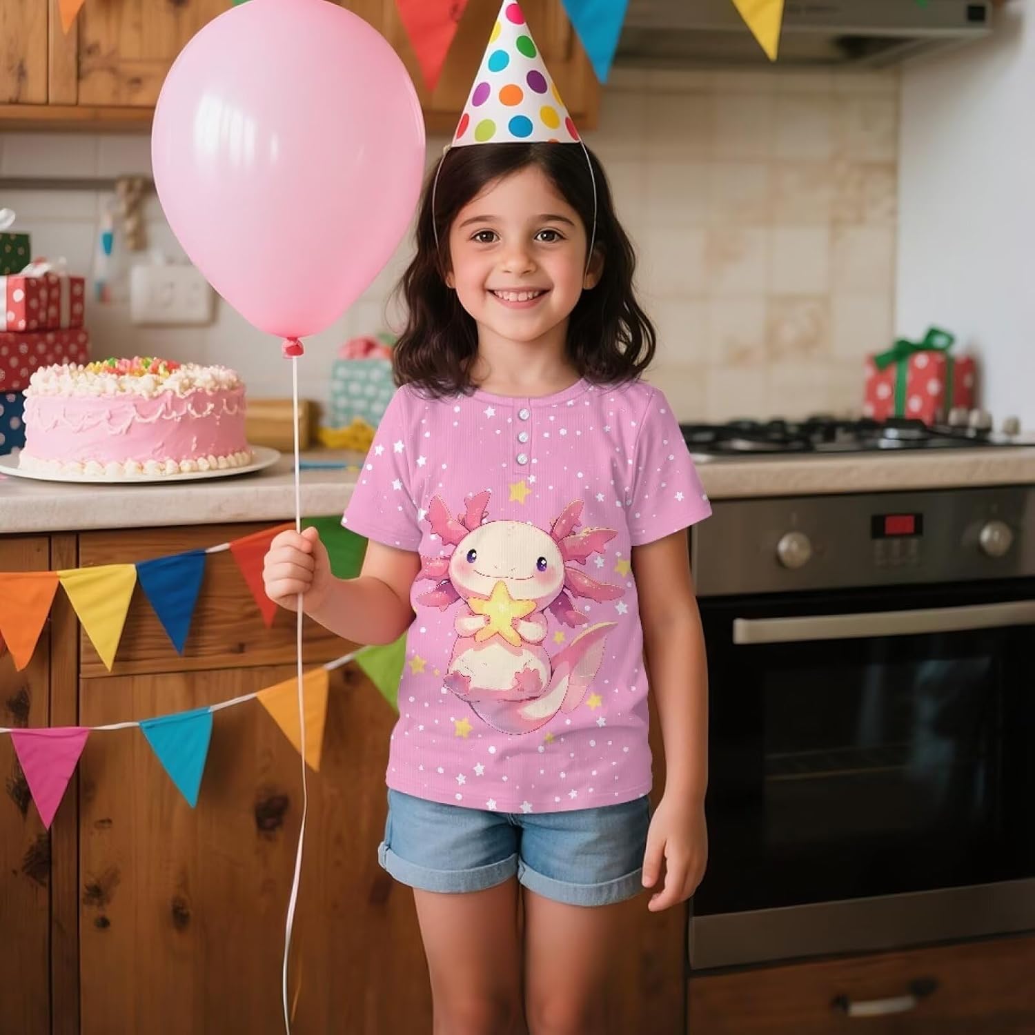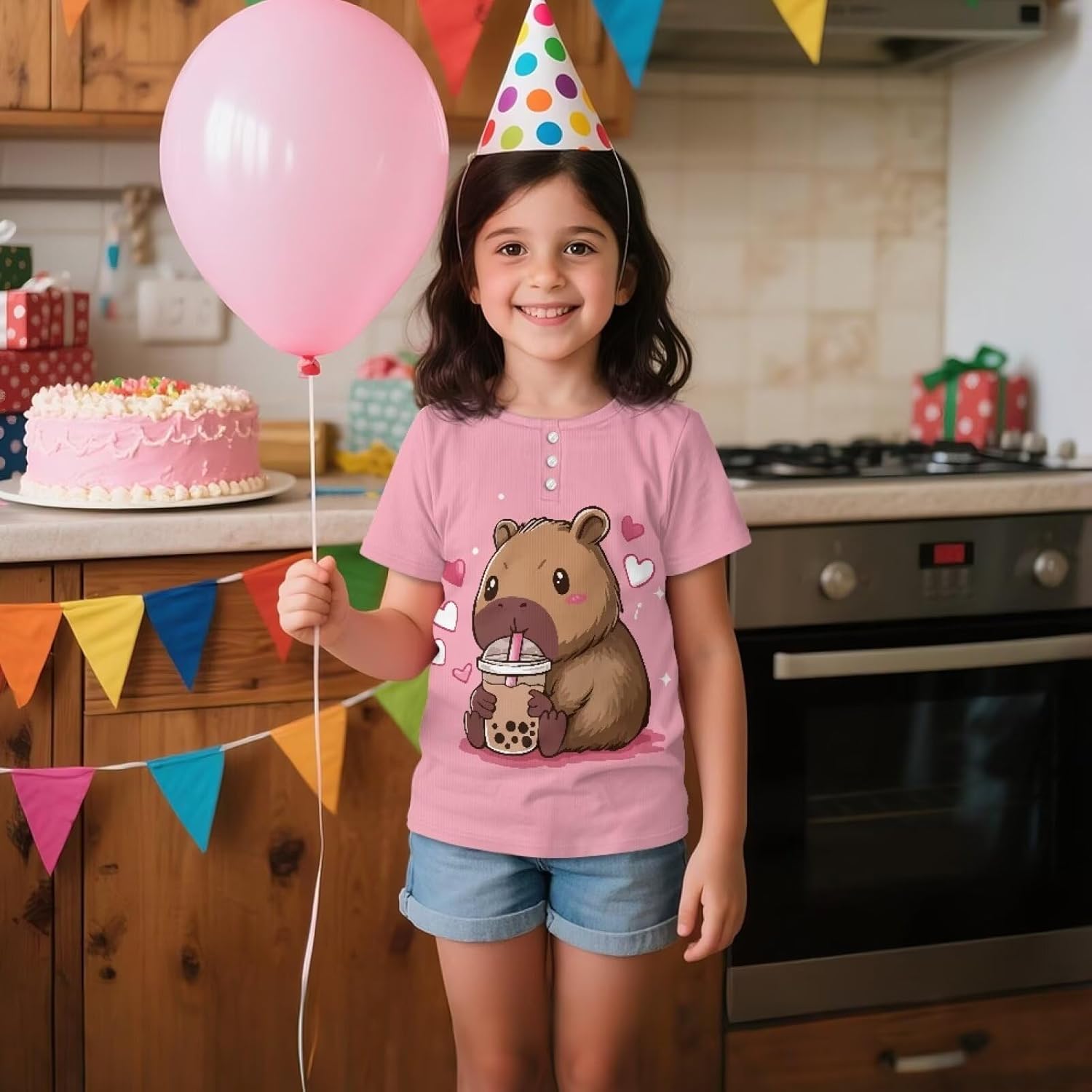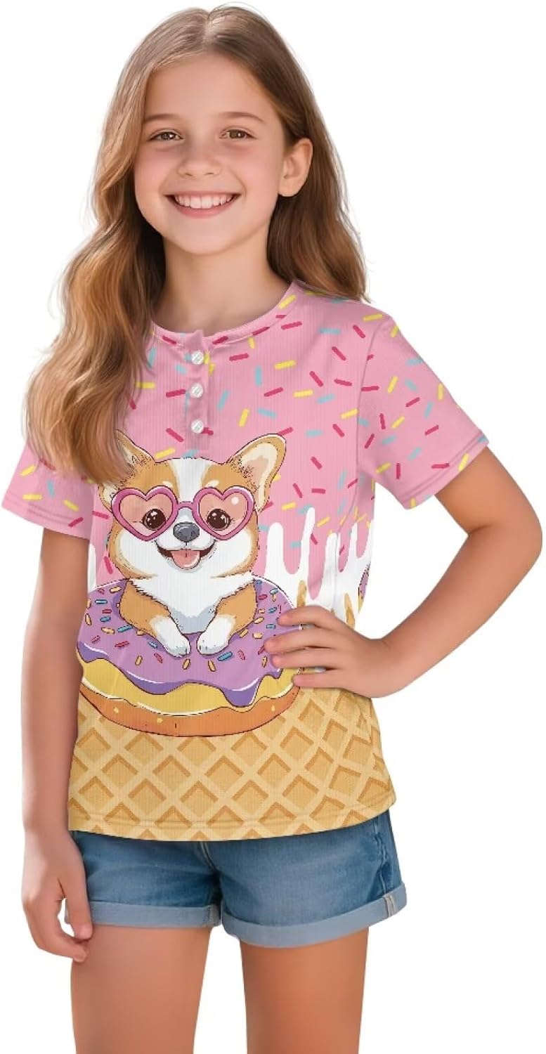 Girls Shirt Short Sleeve T-Shirt Henley Casual Basic Summer Tee Tops for Kids Teen 2-12 Years