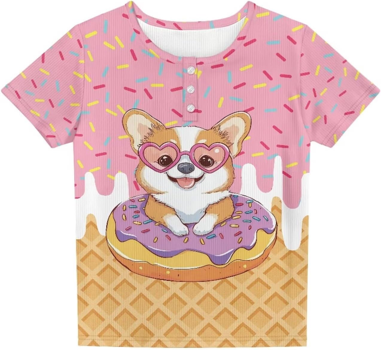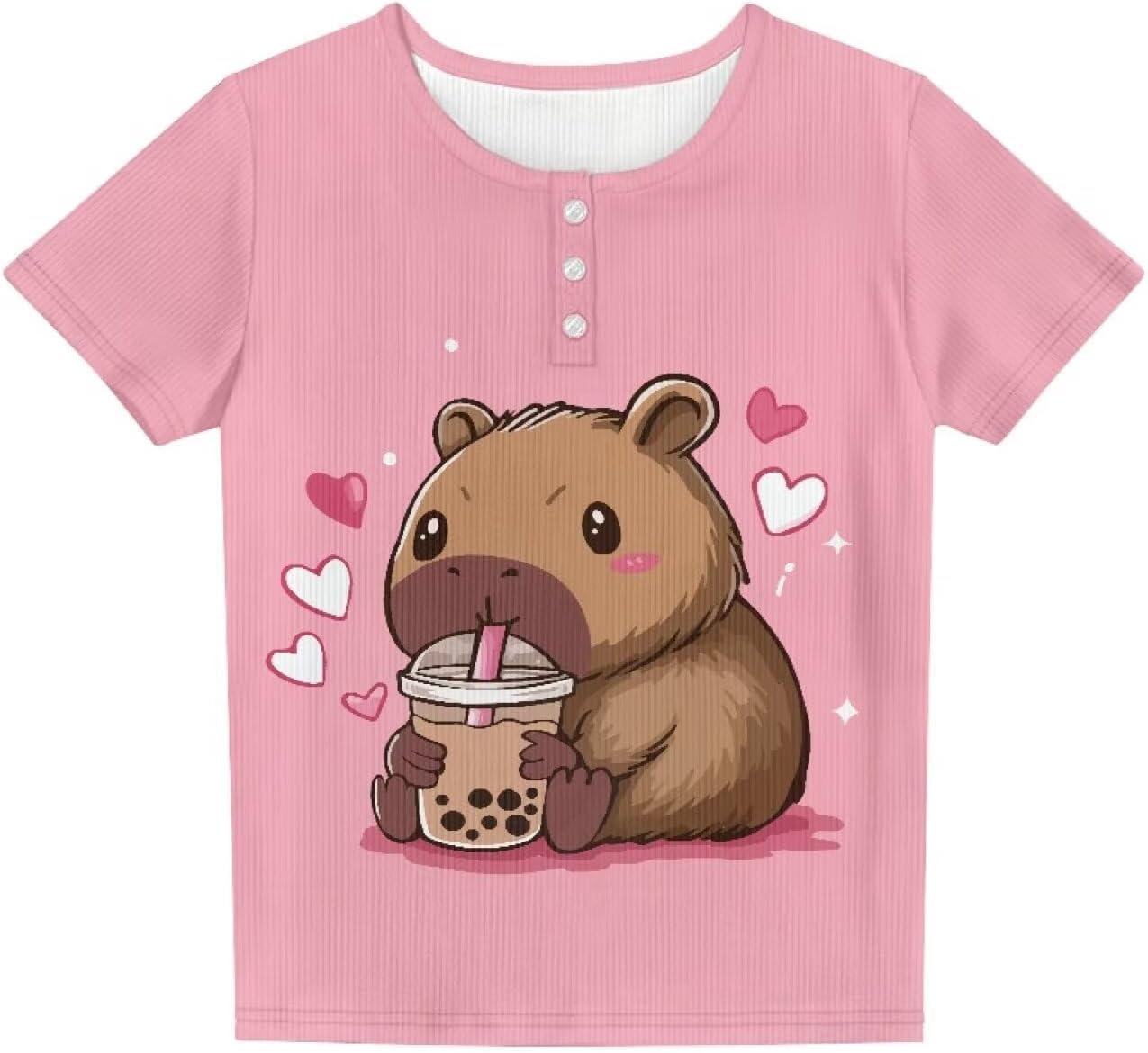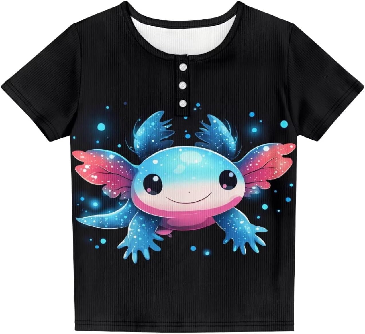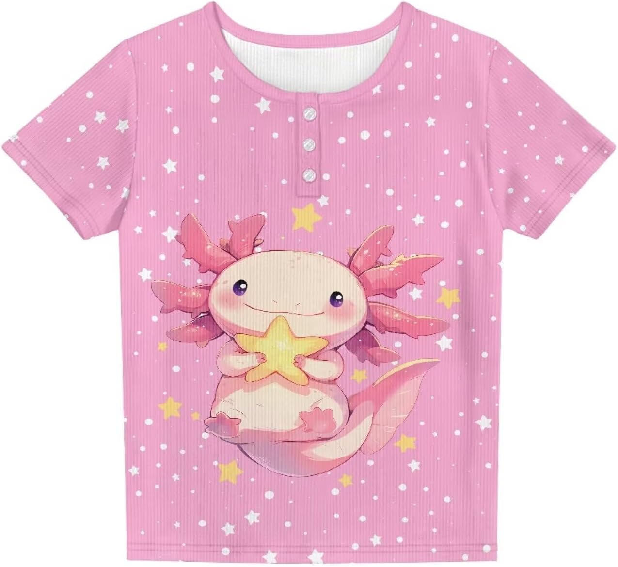 Girls Shirt Short Sleeve T-Shirt Henley Casual Basic Summer Tee Tops for Kids Teen 2-12 Years