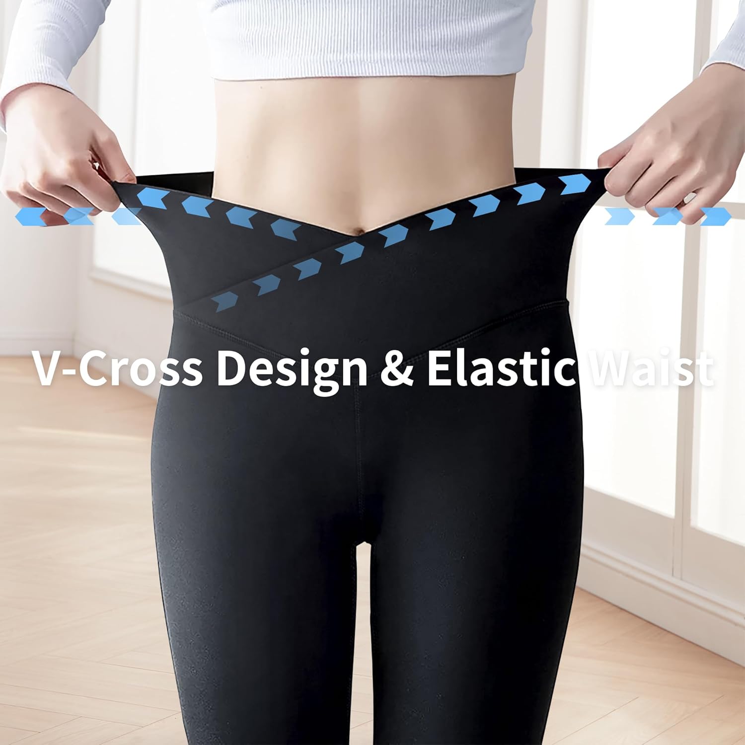 Gnainach Girls Bootcut Leggings, Crossover Leggings, Figure Skating Pants Size 12-13 Years Old Solid Black Soft Slim High Waisted Trousers