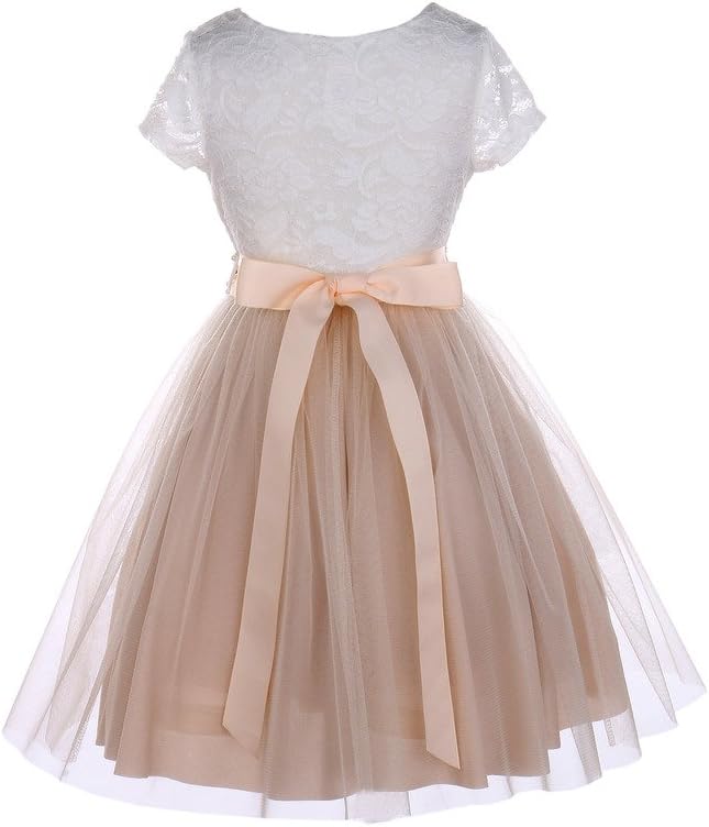 iGirlDress Little Girls Sleeves Lace Tulle Flower Girls Dresses Sizes 2-14