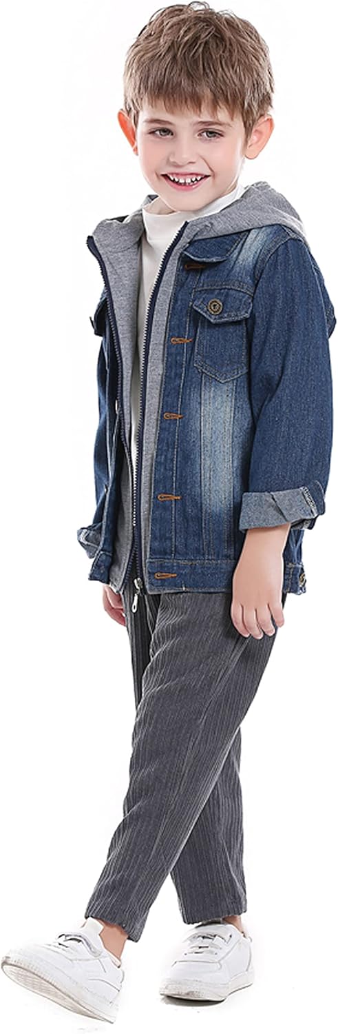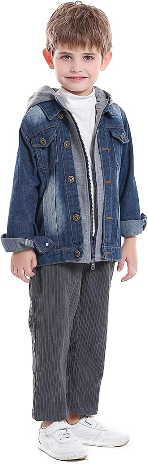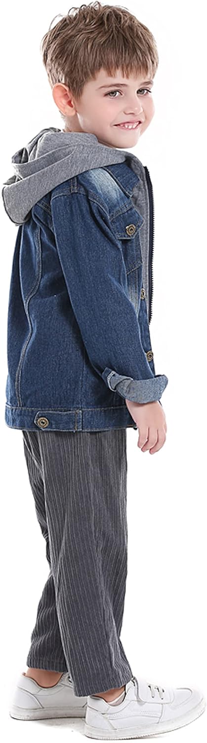 Joe Wenko Boys Girls Kids Hooded Denim Jacket Teens Jean Jacket with Hood