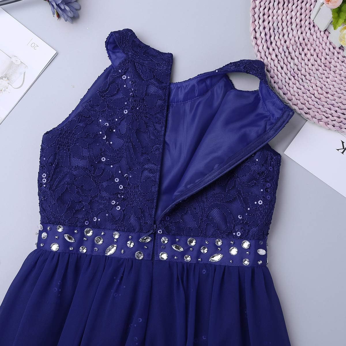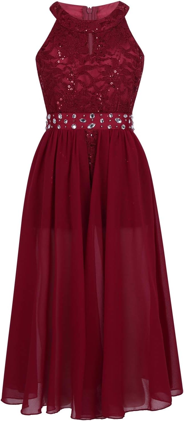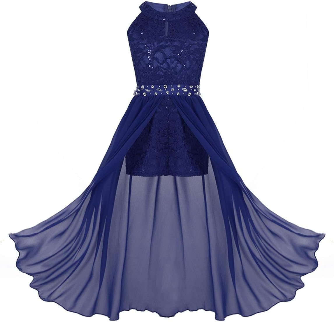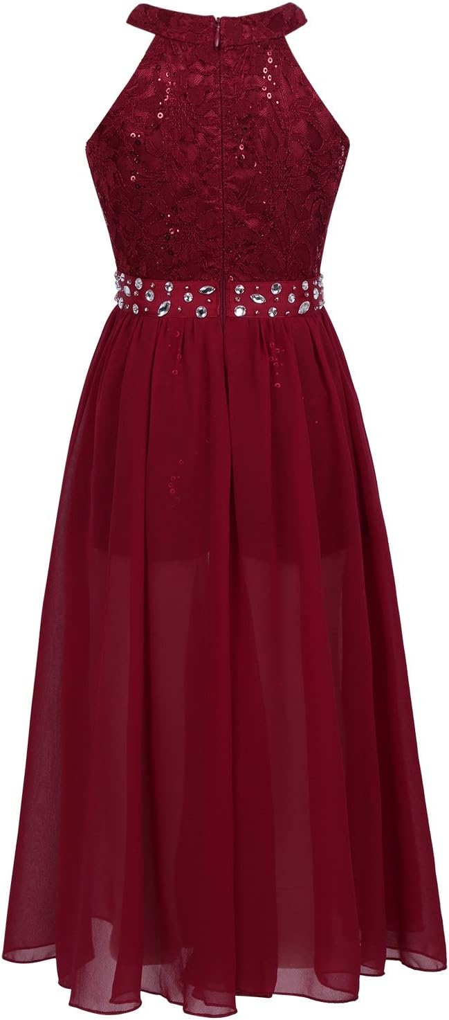 Kids Big Girls Sequins Floral Lace Halter-Neck Junior Bridesmaid Wedding Flower Girls Dress Party Prom Gown