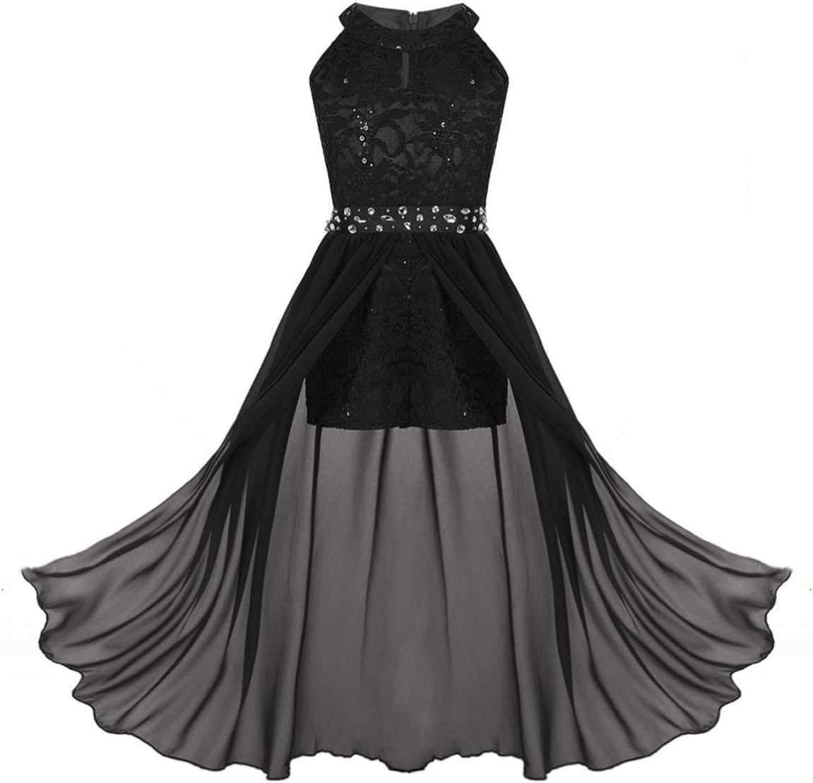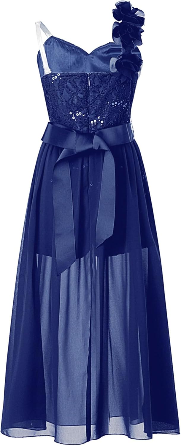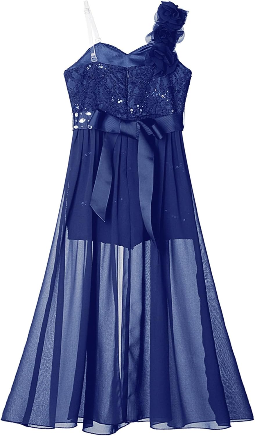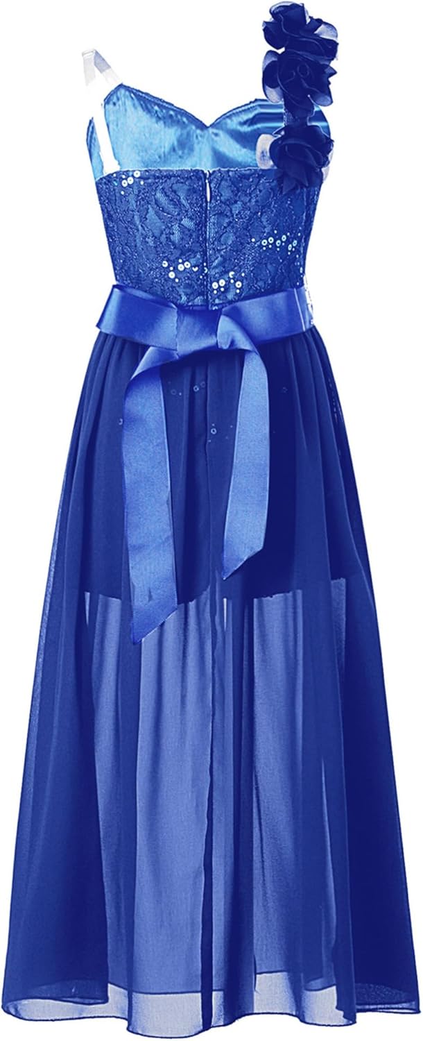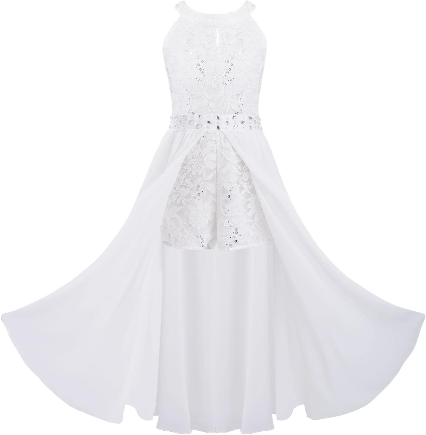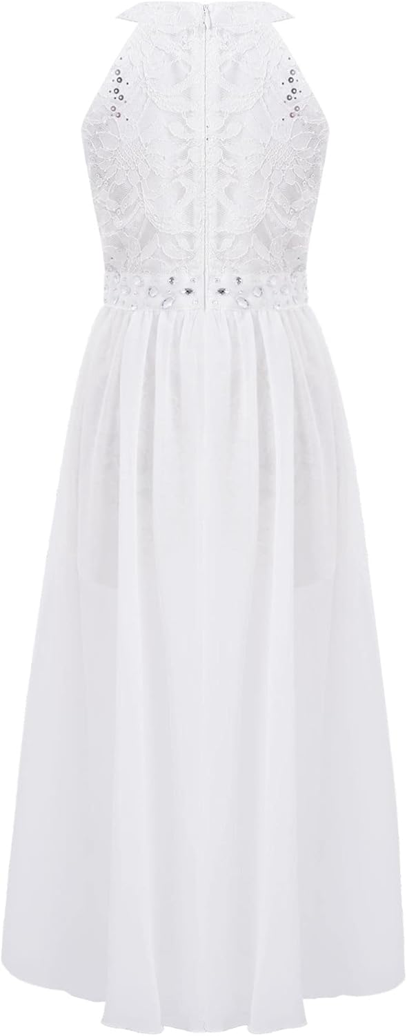 Kids Girls Sleeveless Floral Lace Shiny Rhinestones Birthday Party Maxi Dress Pageant Dancing Romper Gowns