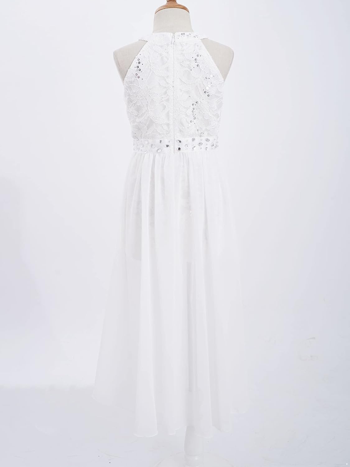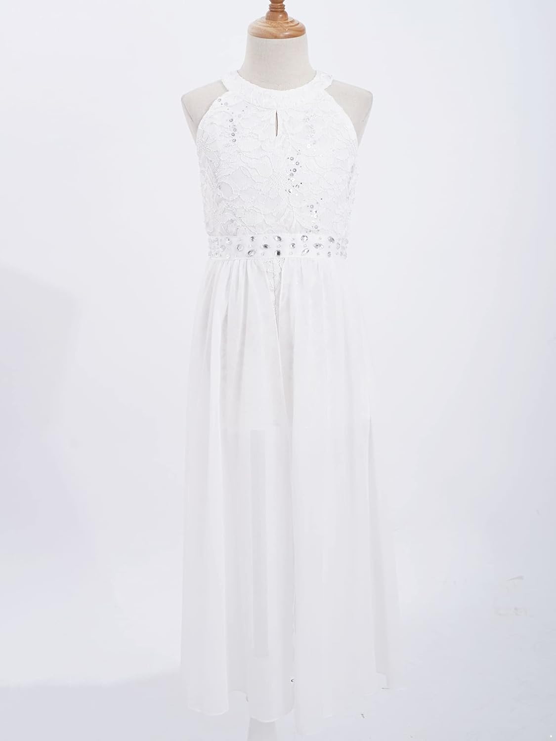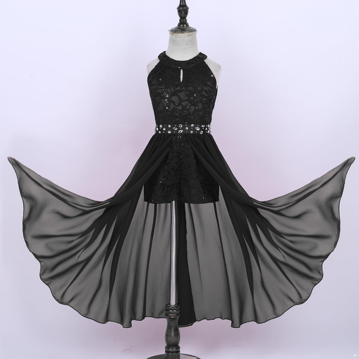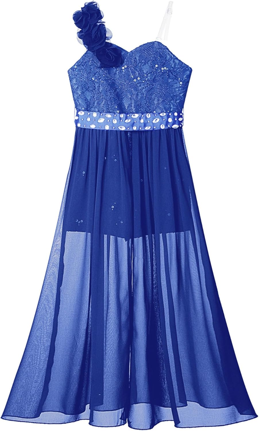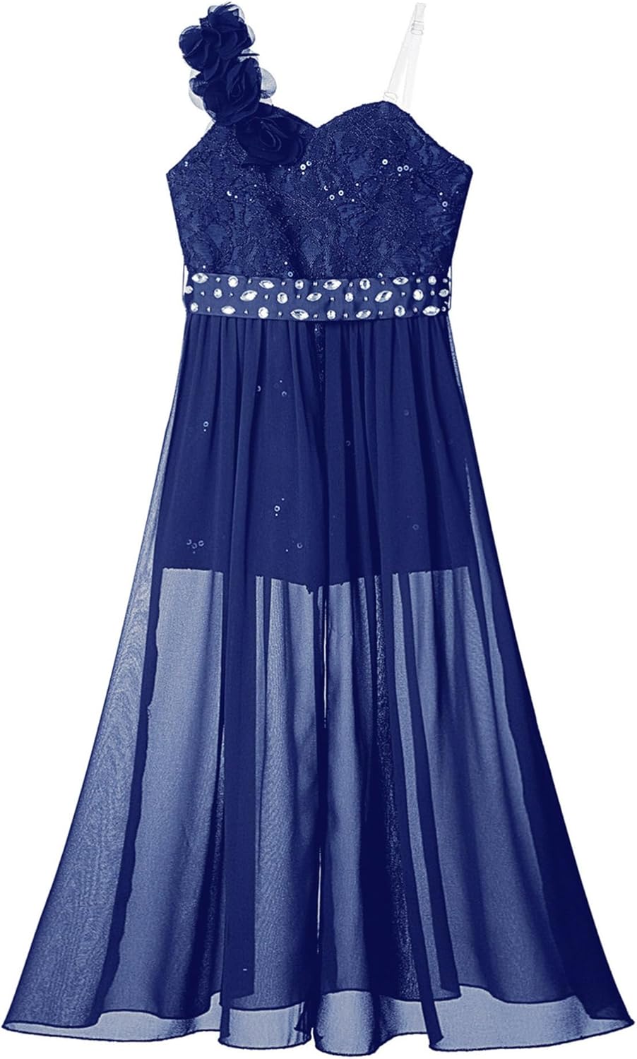 Kids Girls Sleeveless Floral Lace Shiny Rhinestones Birthday Party Maxi Dress Pageant Dancing Romper Gowns