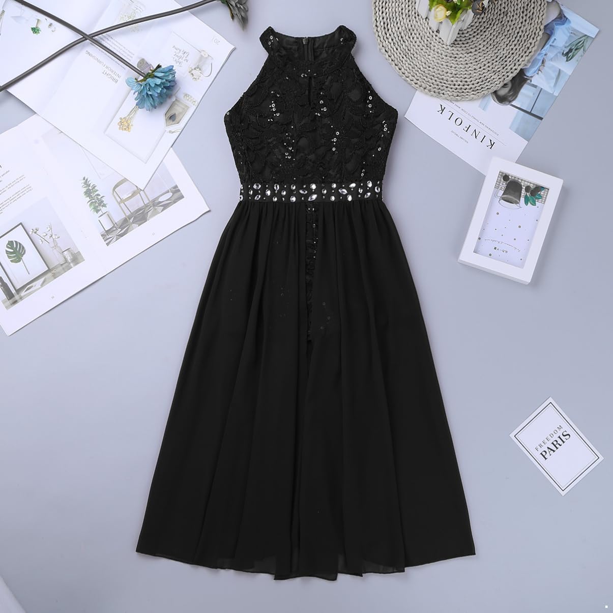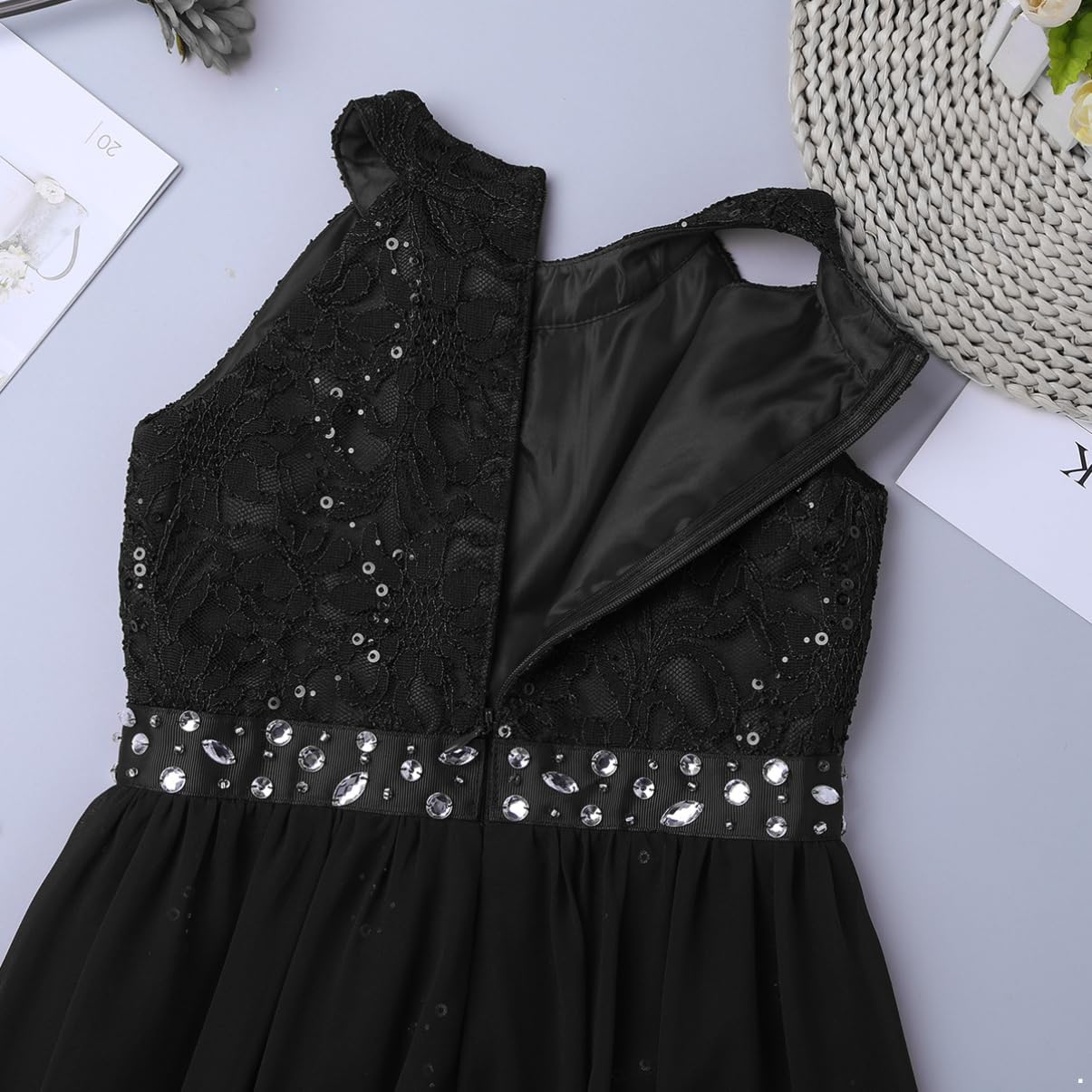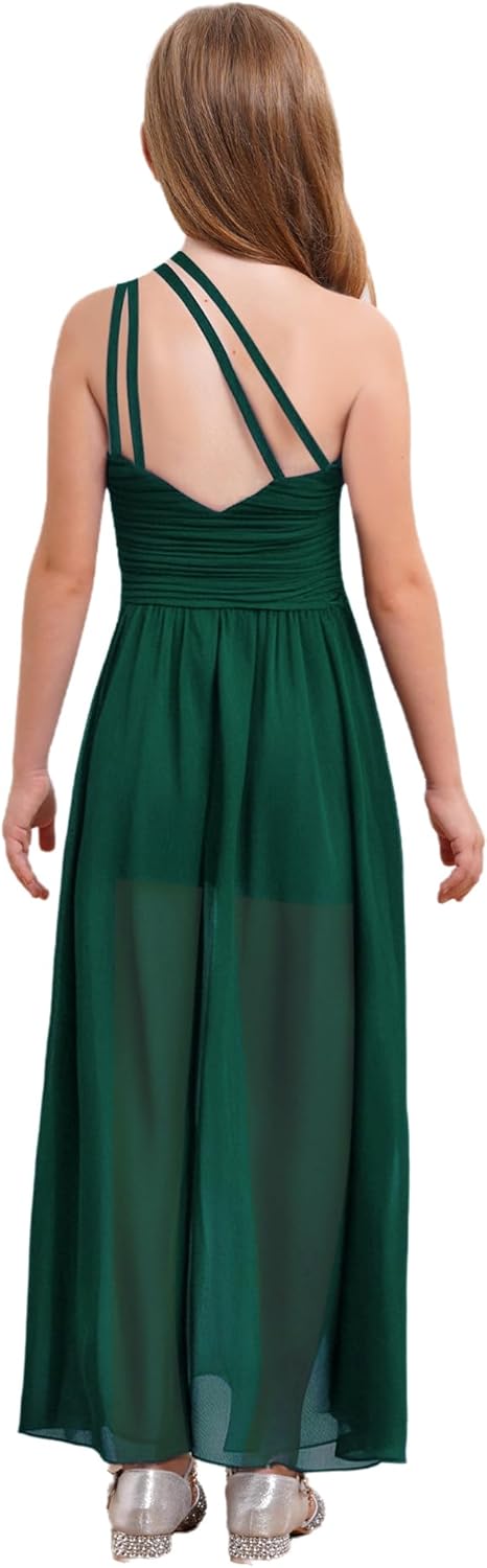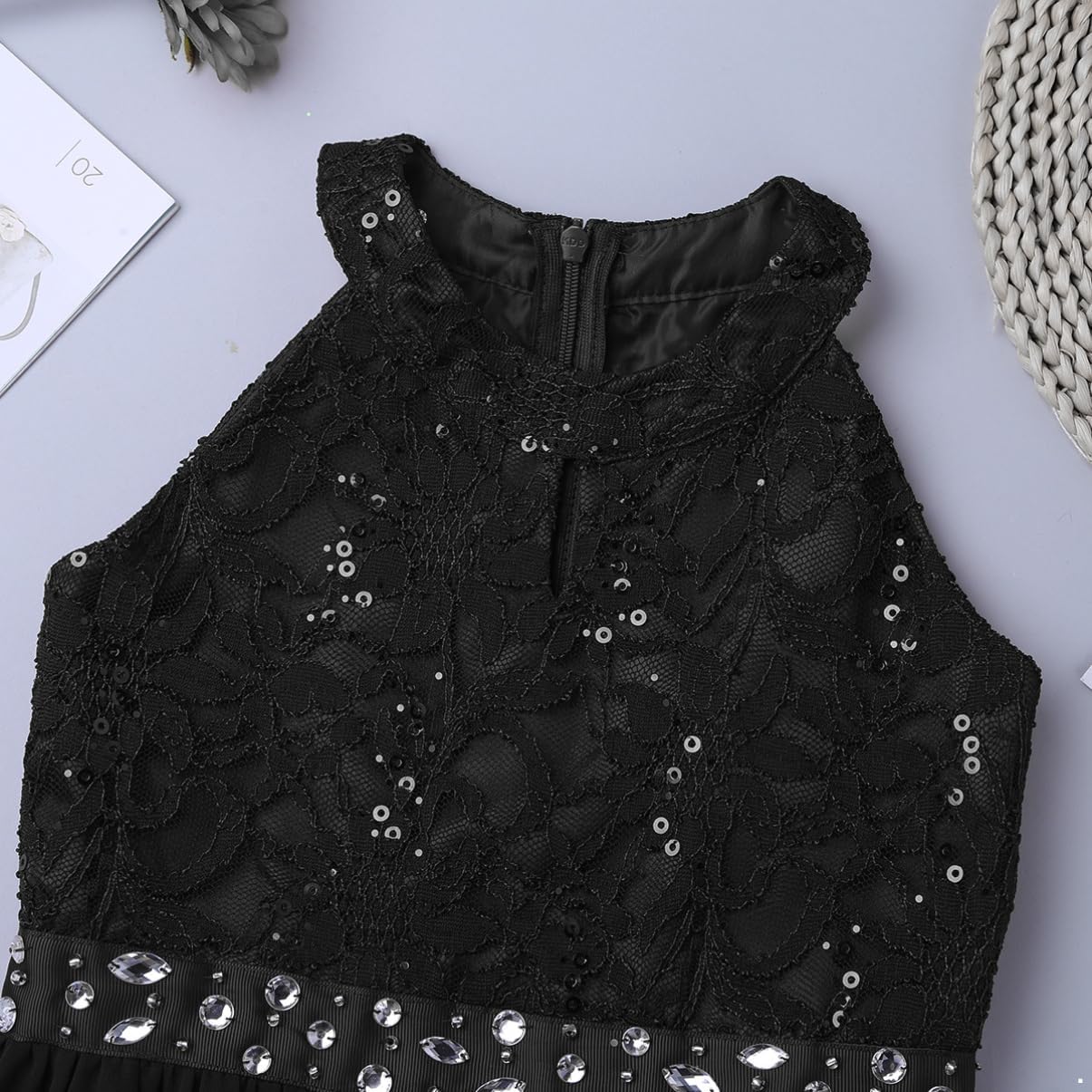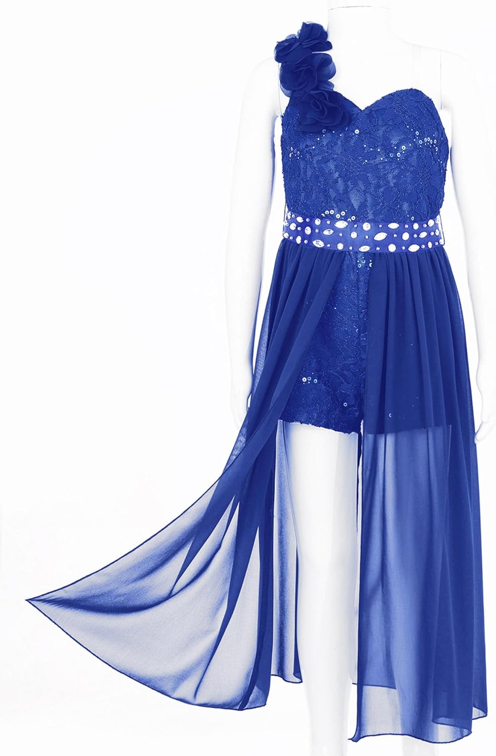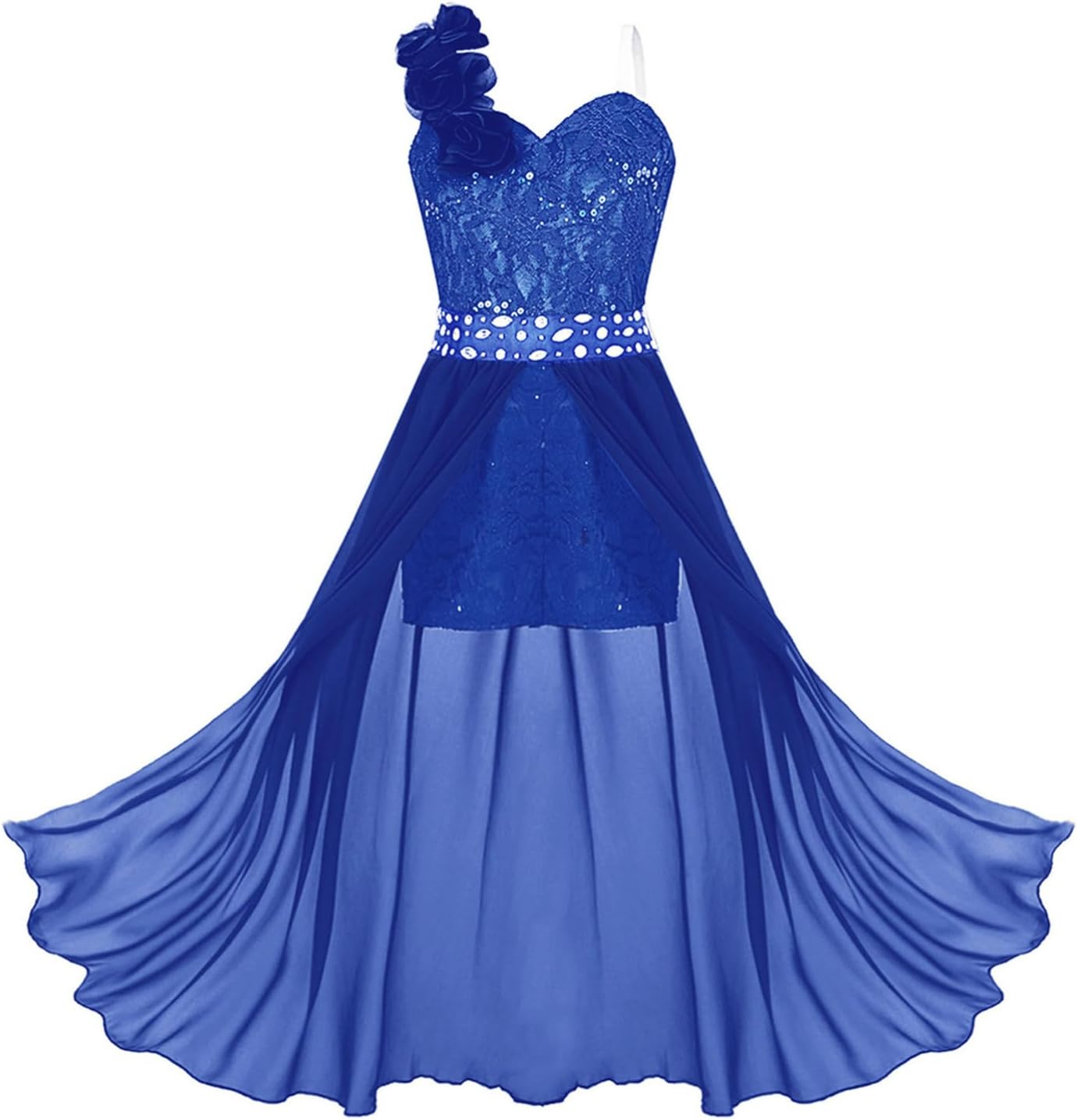 Kids Girls Sleeveless Floral Lace Shiny Rhinestones Birthday Party Maxi Dress Pageant Dancing Romper Gowns