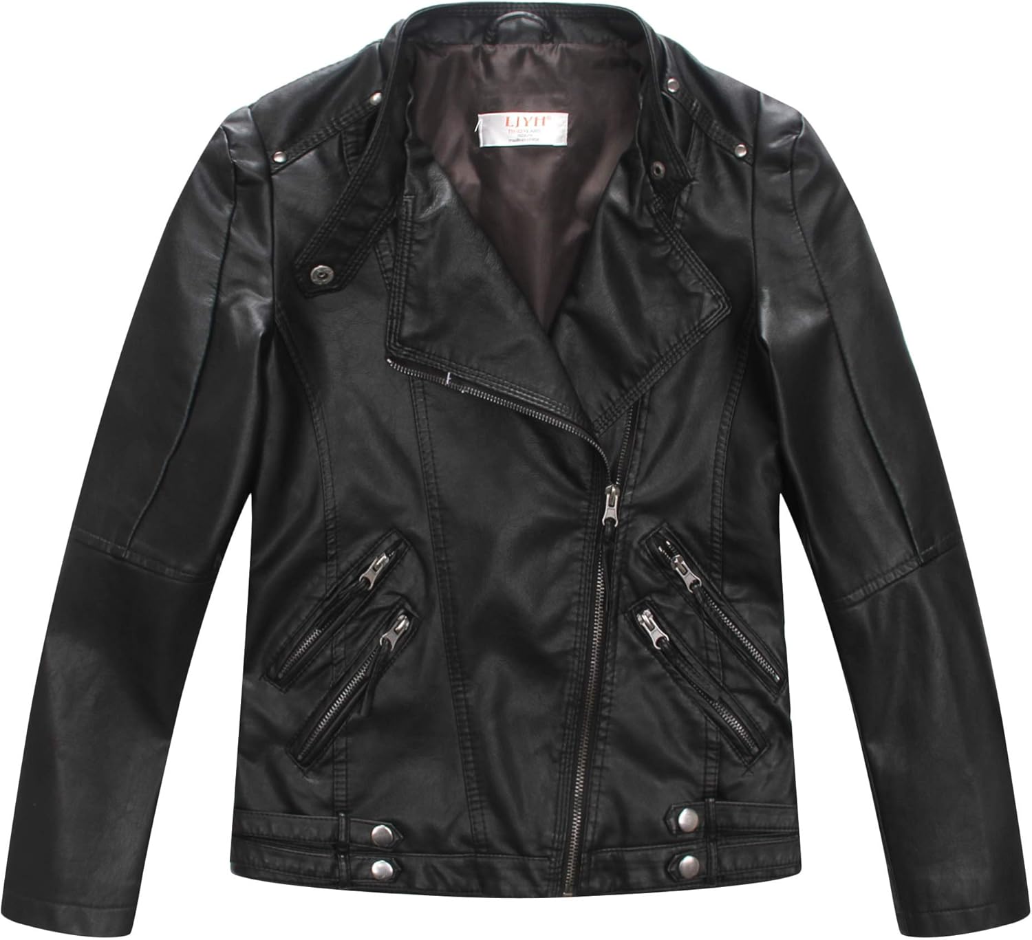 LJYH Girls Faux Leather Quilted Shoulder Motorcycle Jackets Kids Spring Moto Biker Coats Black 11/12 Years Boys Spring Faux Leather Moto Jackets Kids Zipper Fall Coats Outerwear 11-12yrs 150