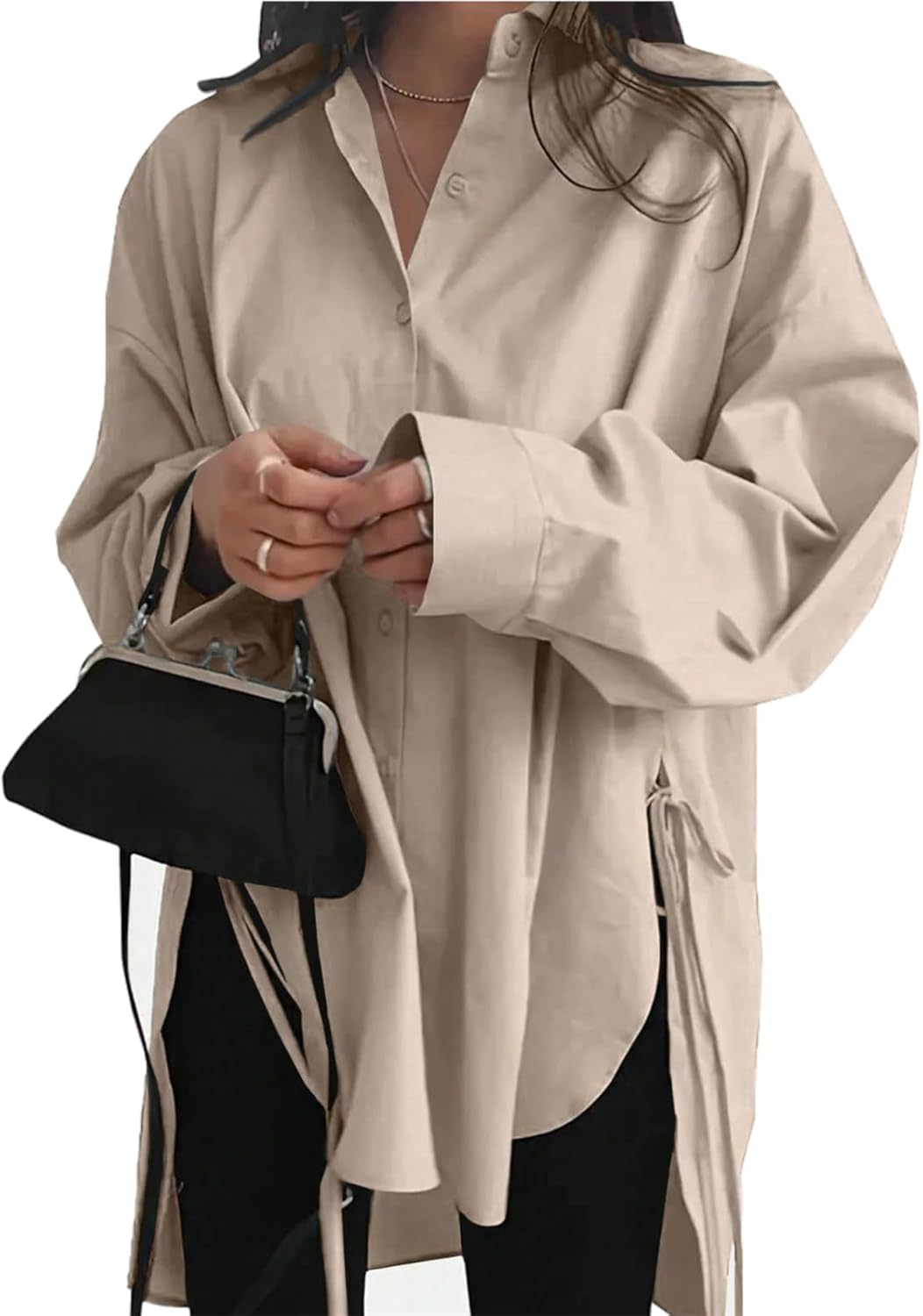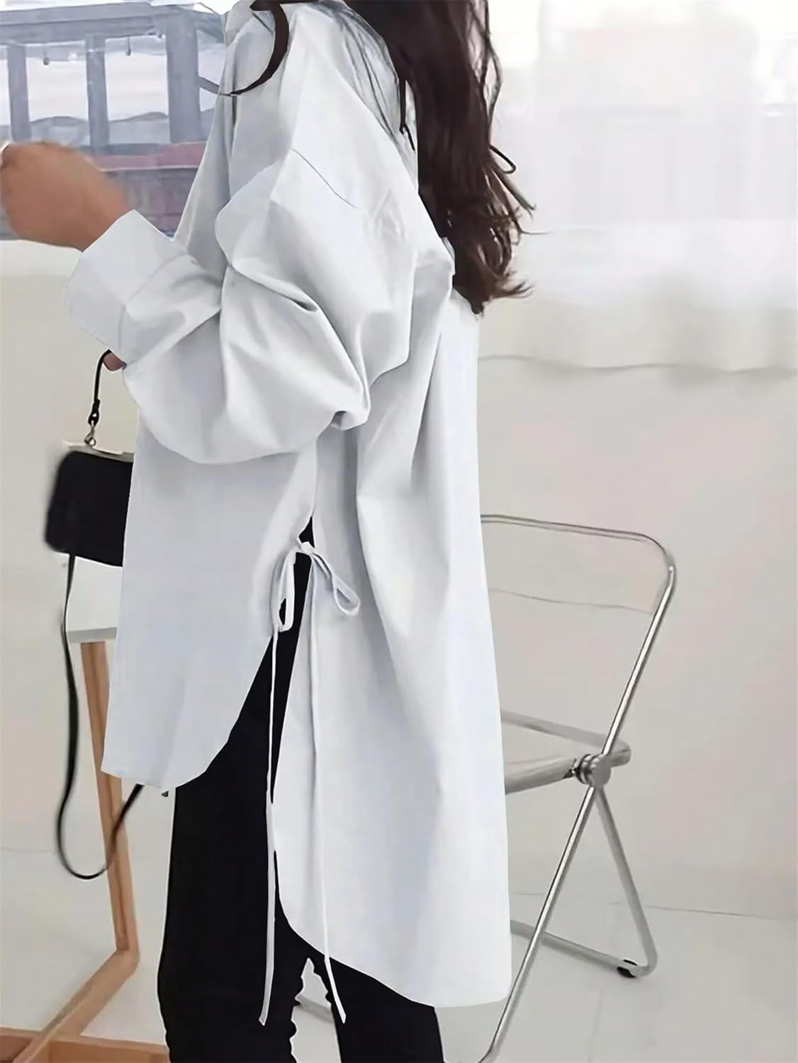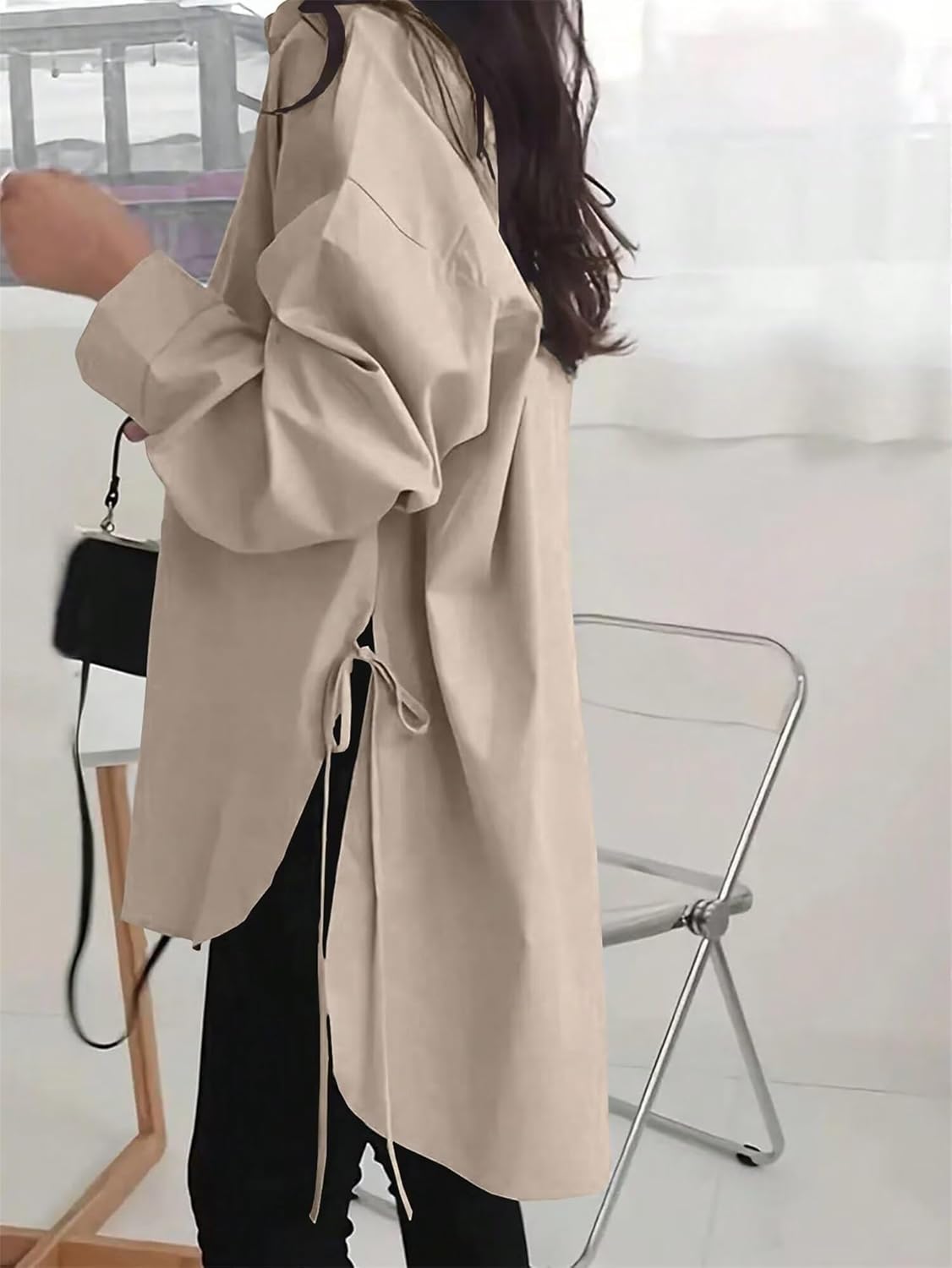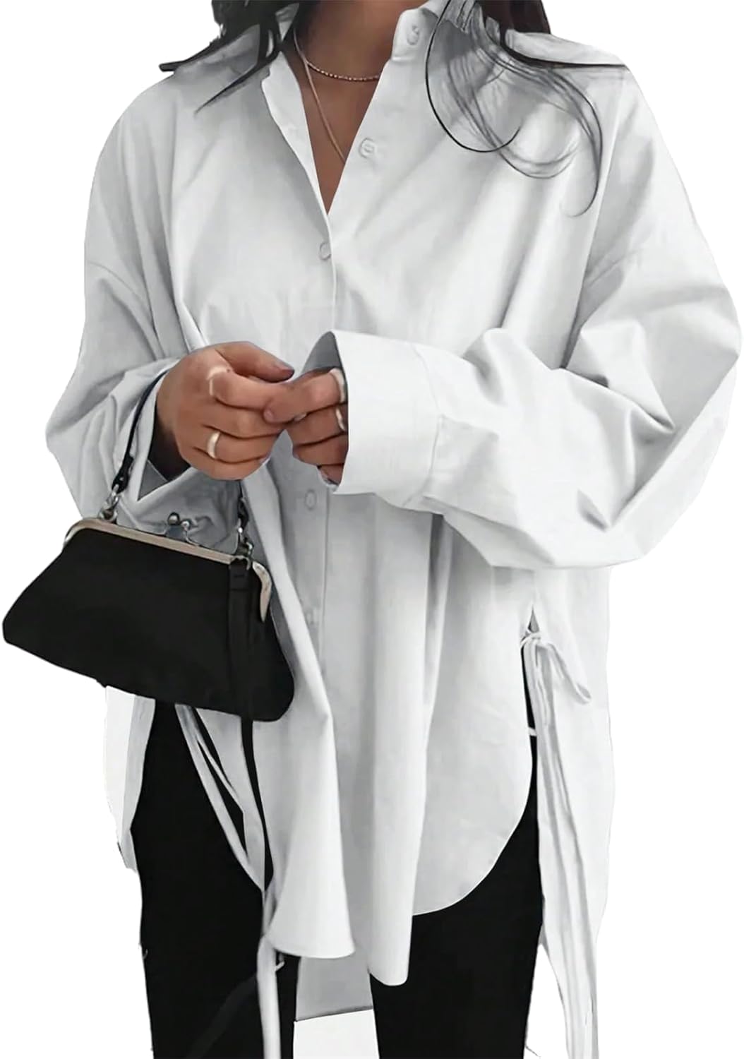 Women’s Stylish Long Sleeve Shirt Trendy V-Neck Cut Side Cutouts Top Adjustable Straps Fashion-Forward Blouse