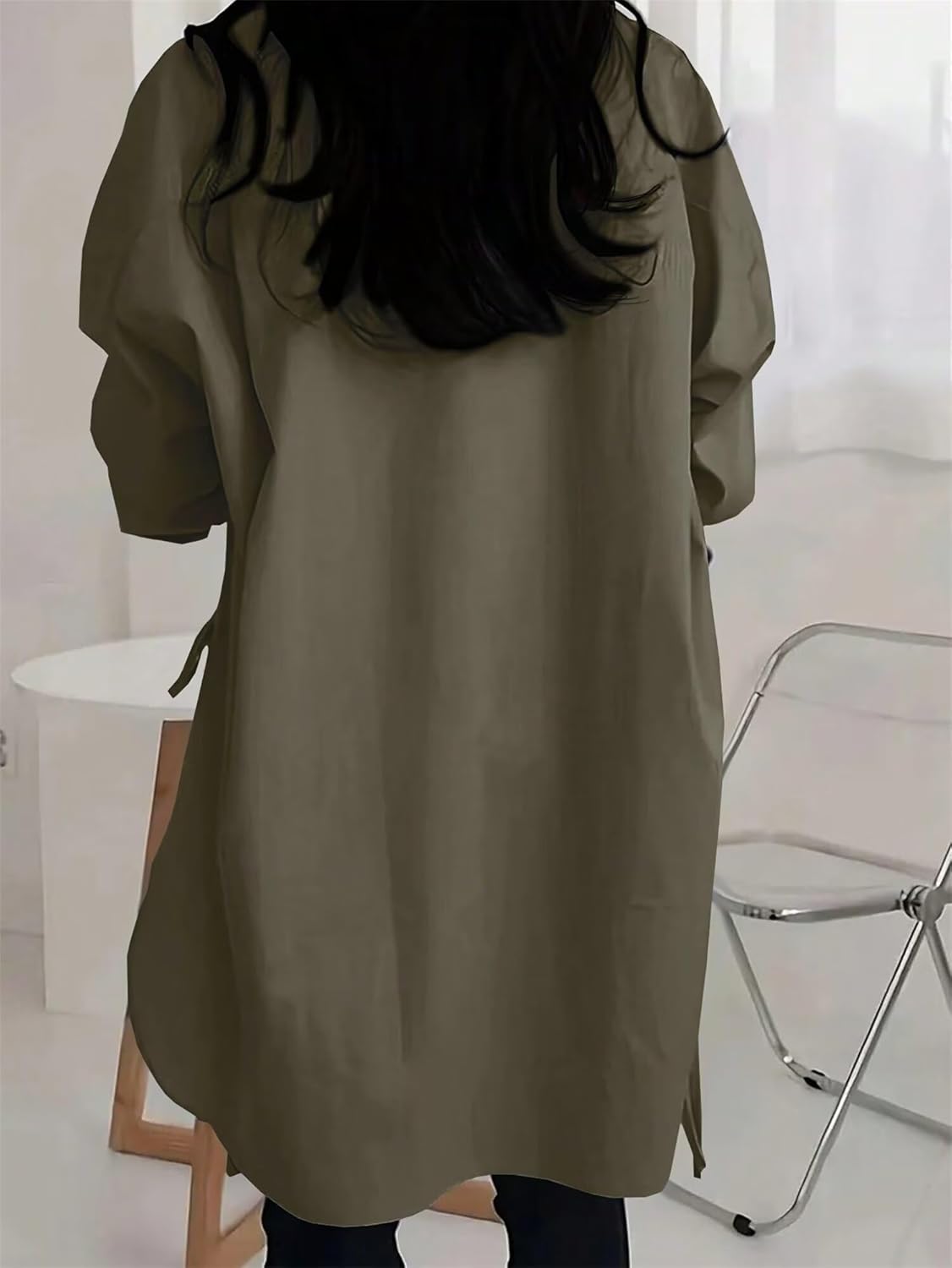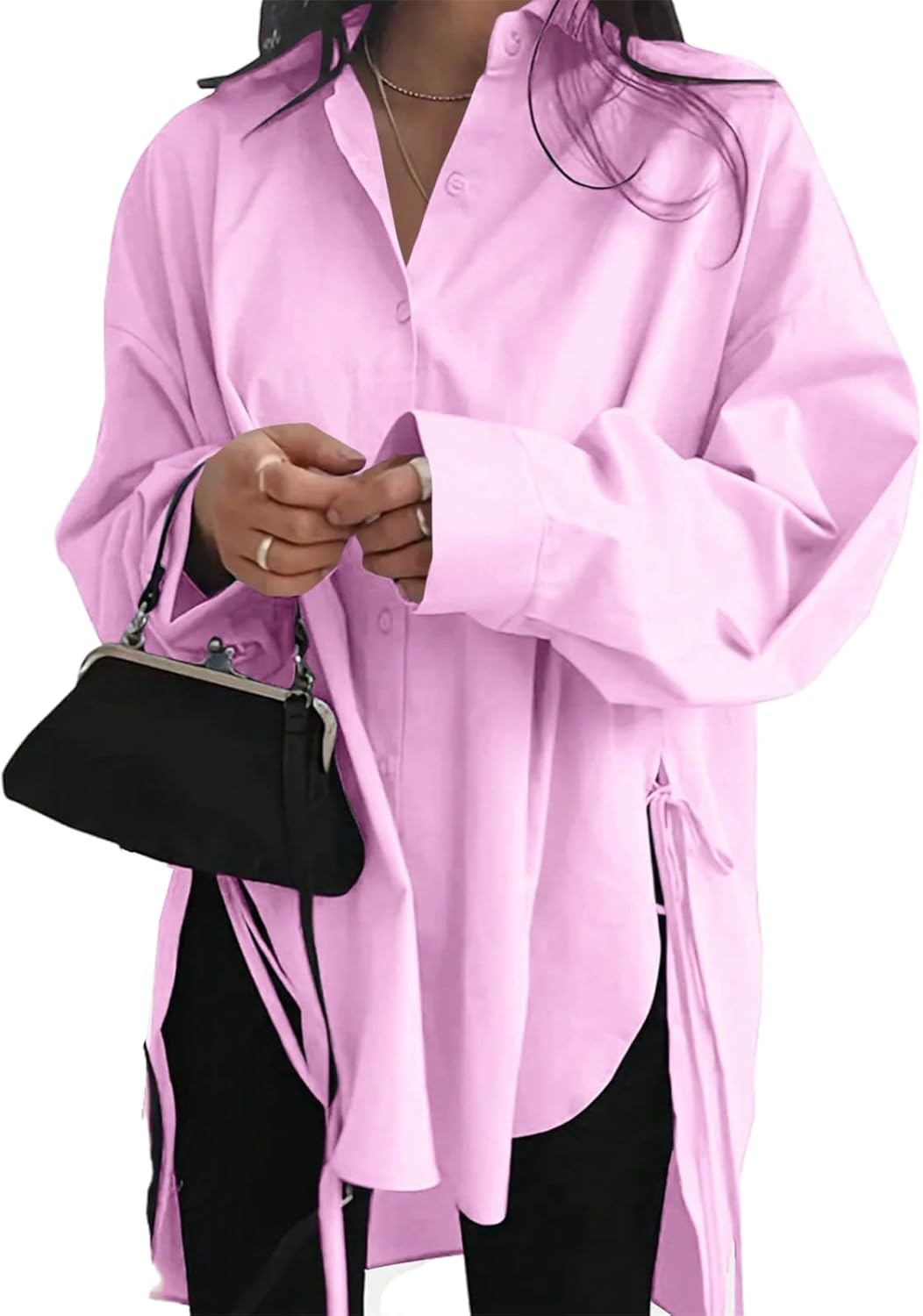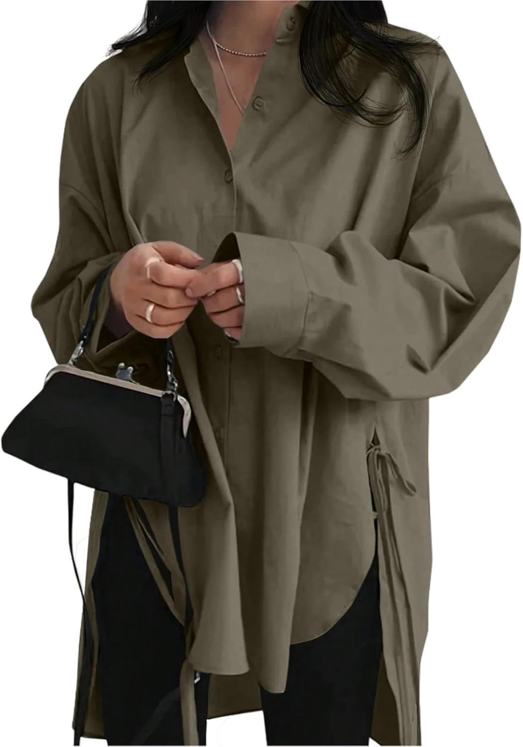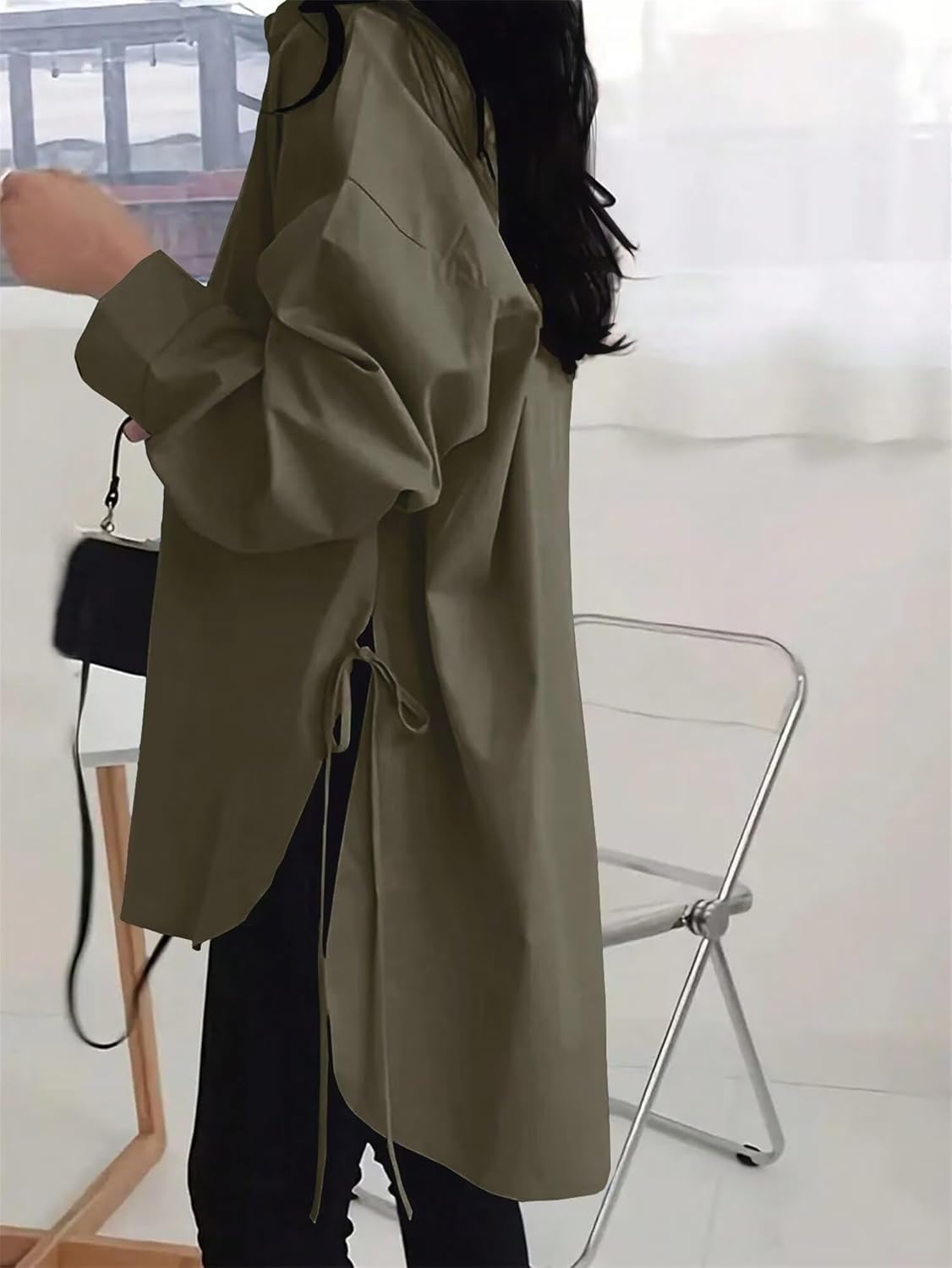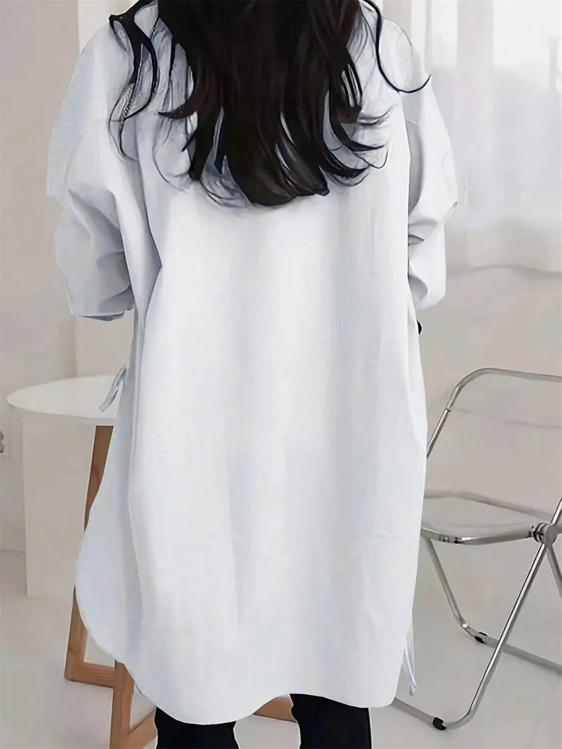 Women’s Stylish Long Sleeve Shirt Trendy V-Neck Cut Side Cutouts Top Adjustable Straps Fashion-Forward Blouse