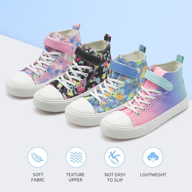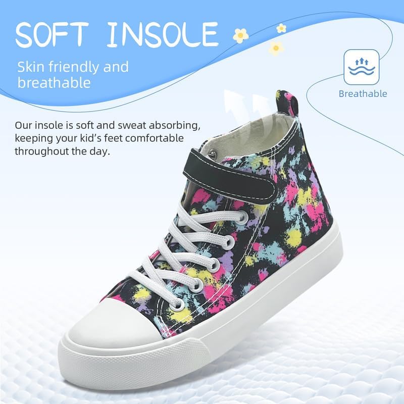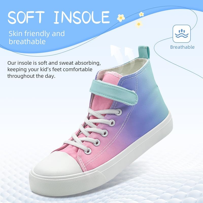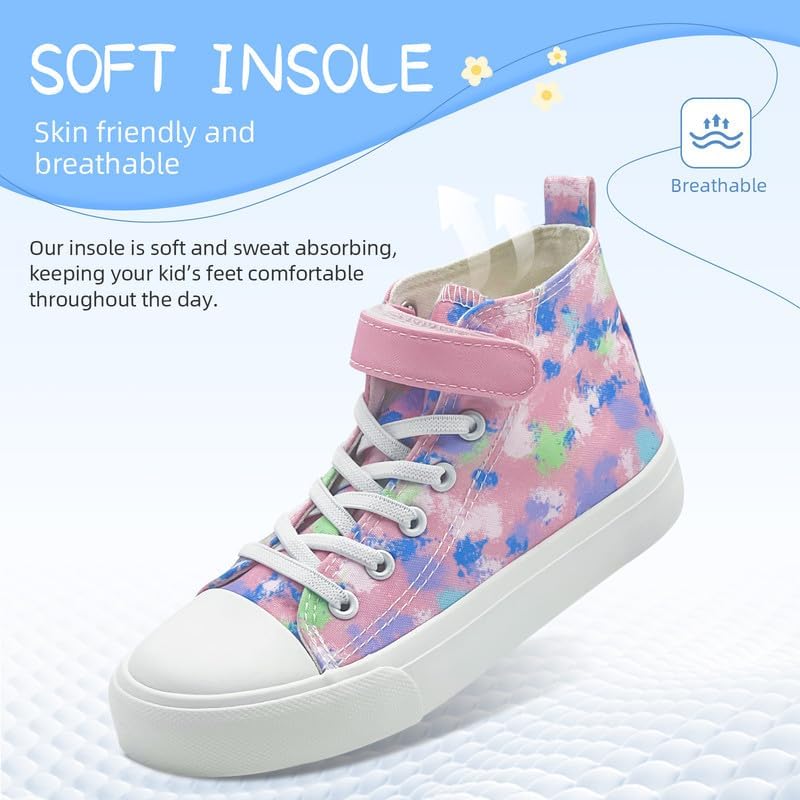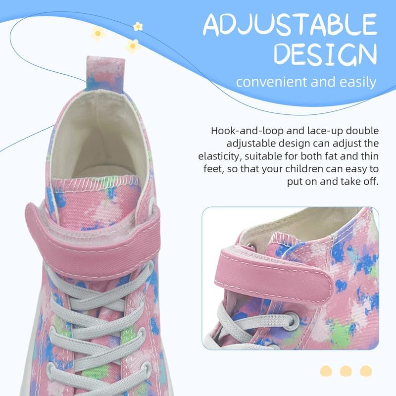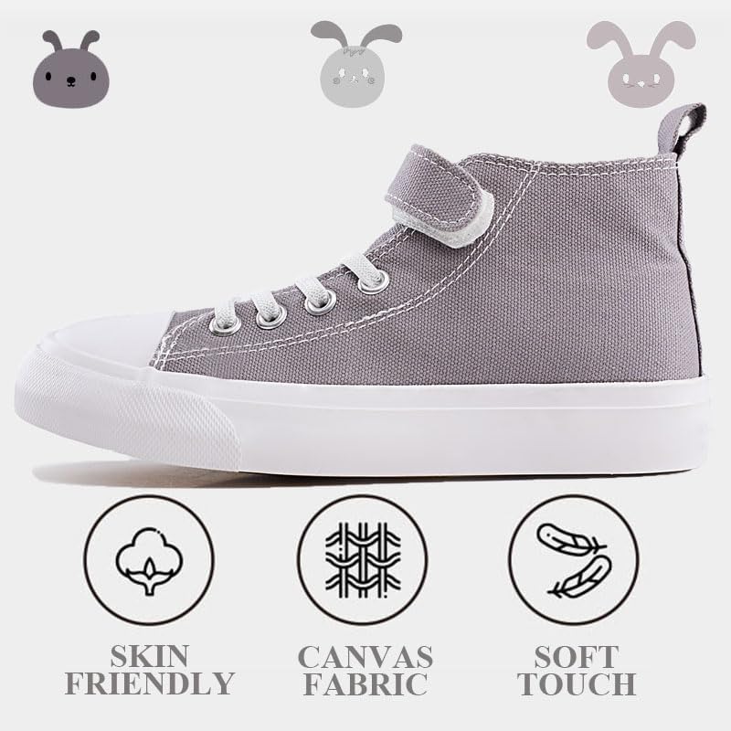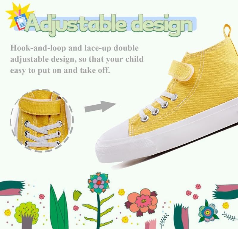 LUMUBBY Kid Shoes for Boys Girls Toddler Little Kid Canvas Mid Top Sneakers Classic Adjustable Strap Lace up Shoes for Kids Breathable Lightweight