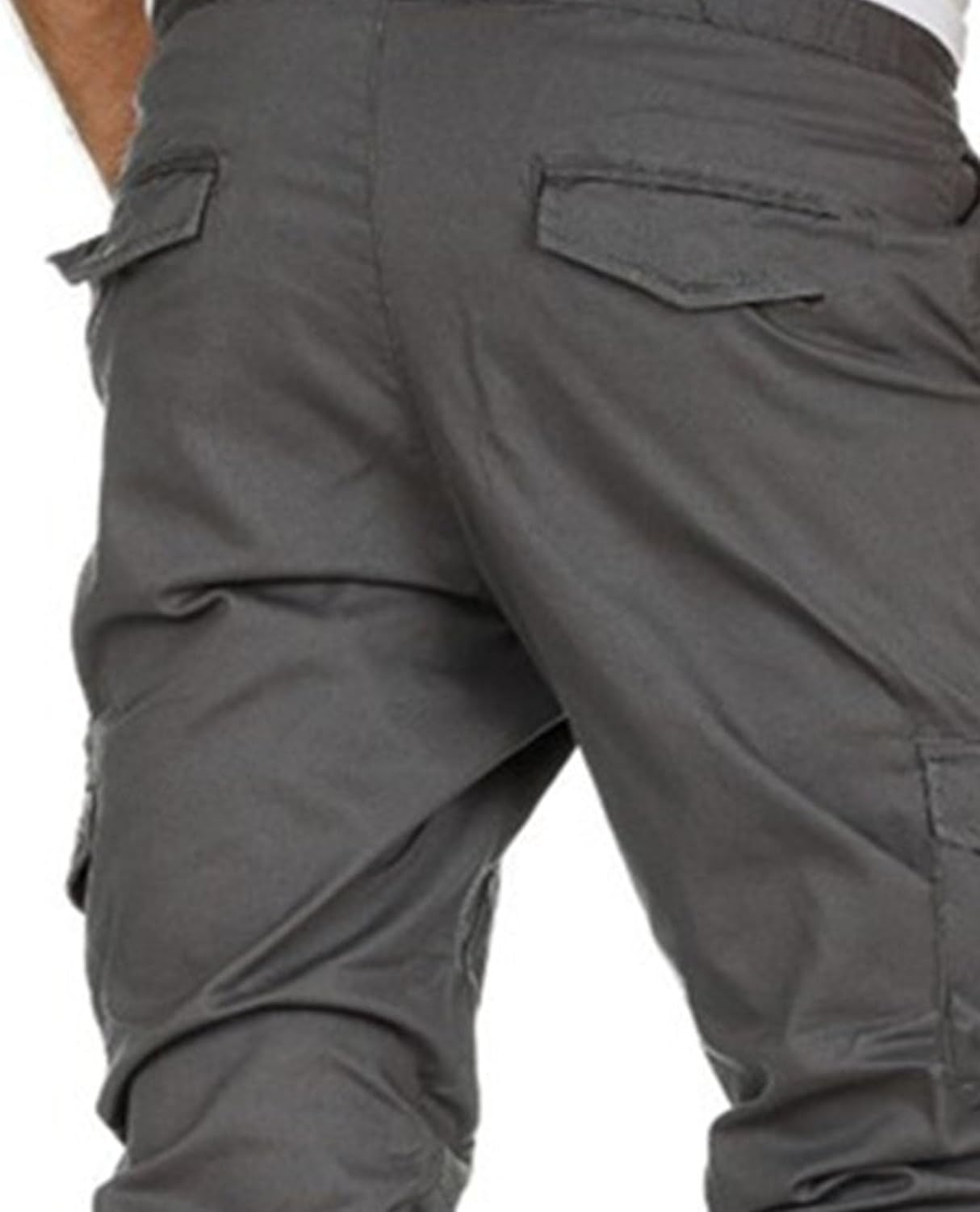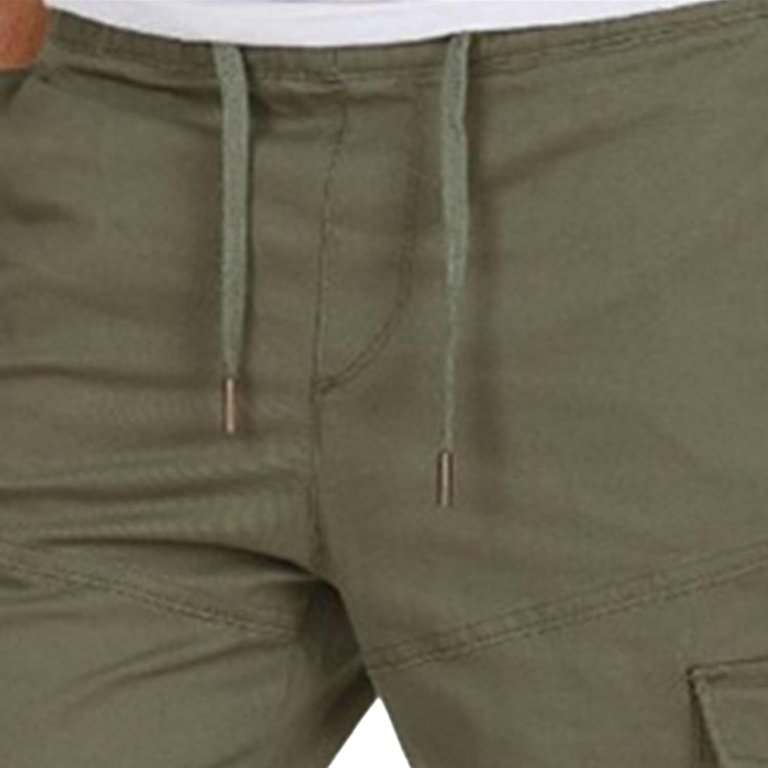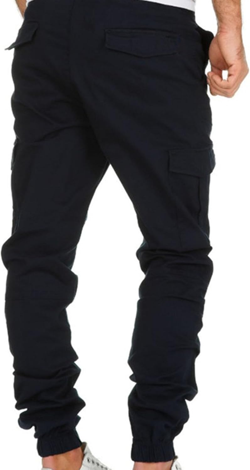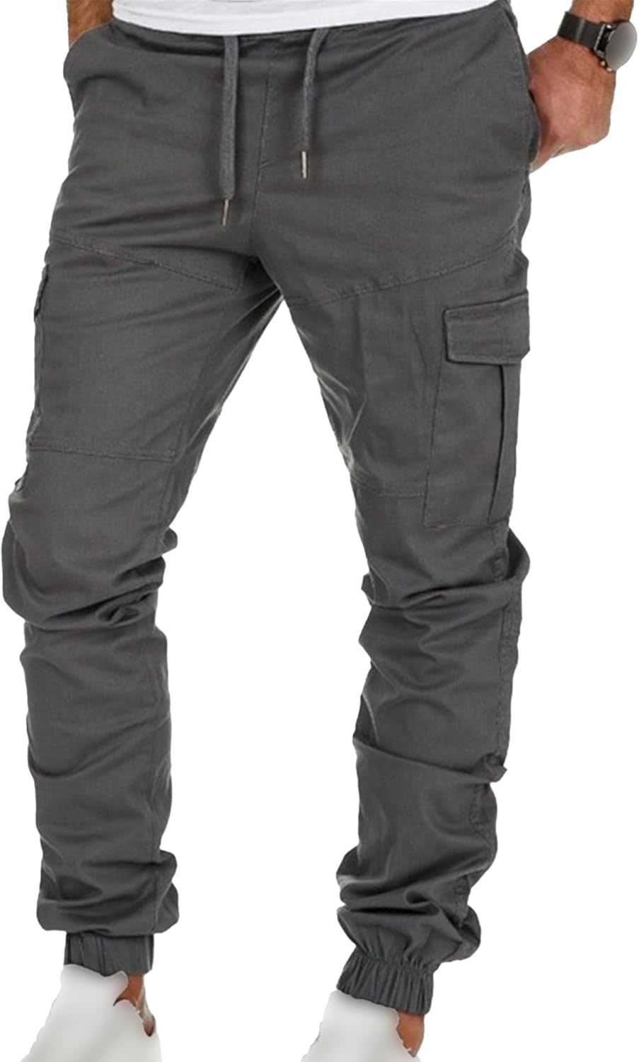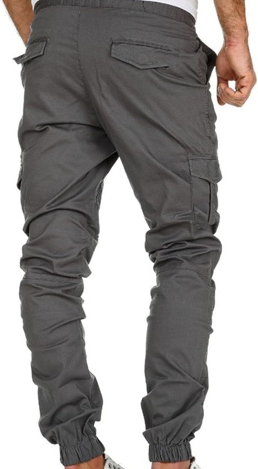 Mens Drawstring Cargo Jogger Pants Regular Slim Fit Stretch Work Pants Skinny Flap Pockets Multi Jogging Outdoor Pant