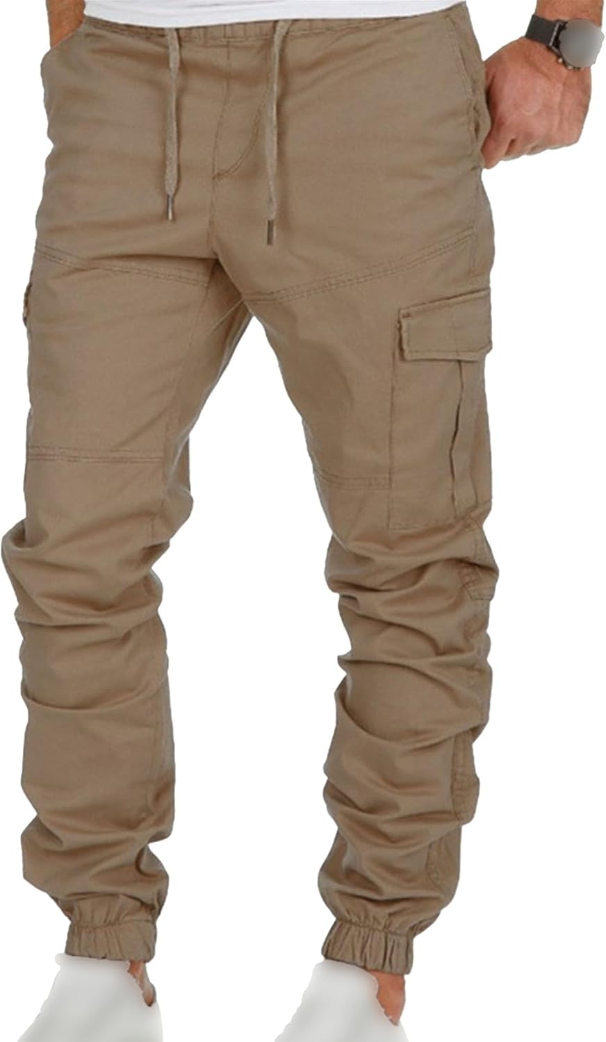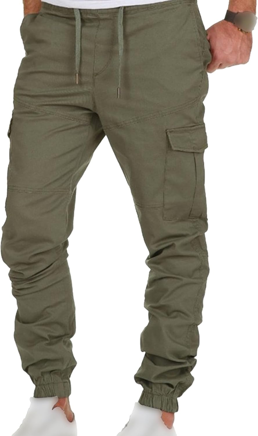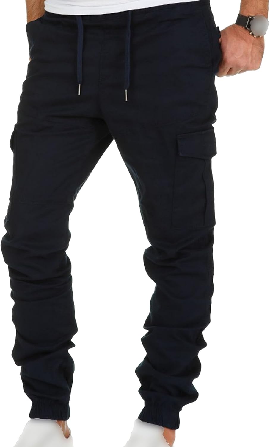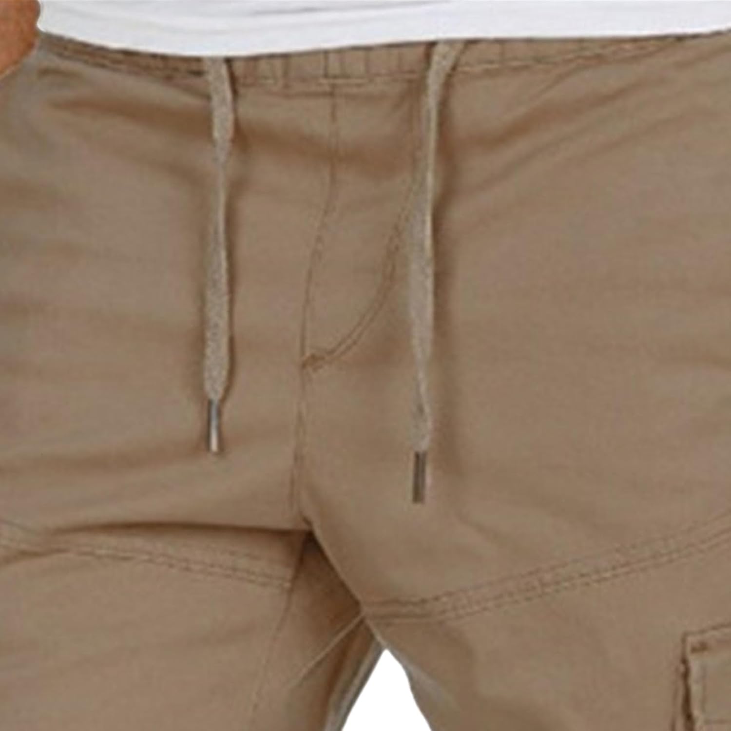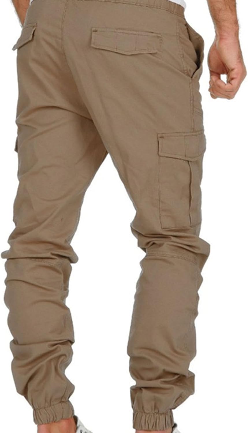 Mens Drawstring Cargo Jogger Pants Regular Slim Fit Stretch Work Pants Skinny Flap Pockets Multi Jogging Outdoor Pant