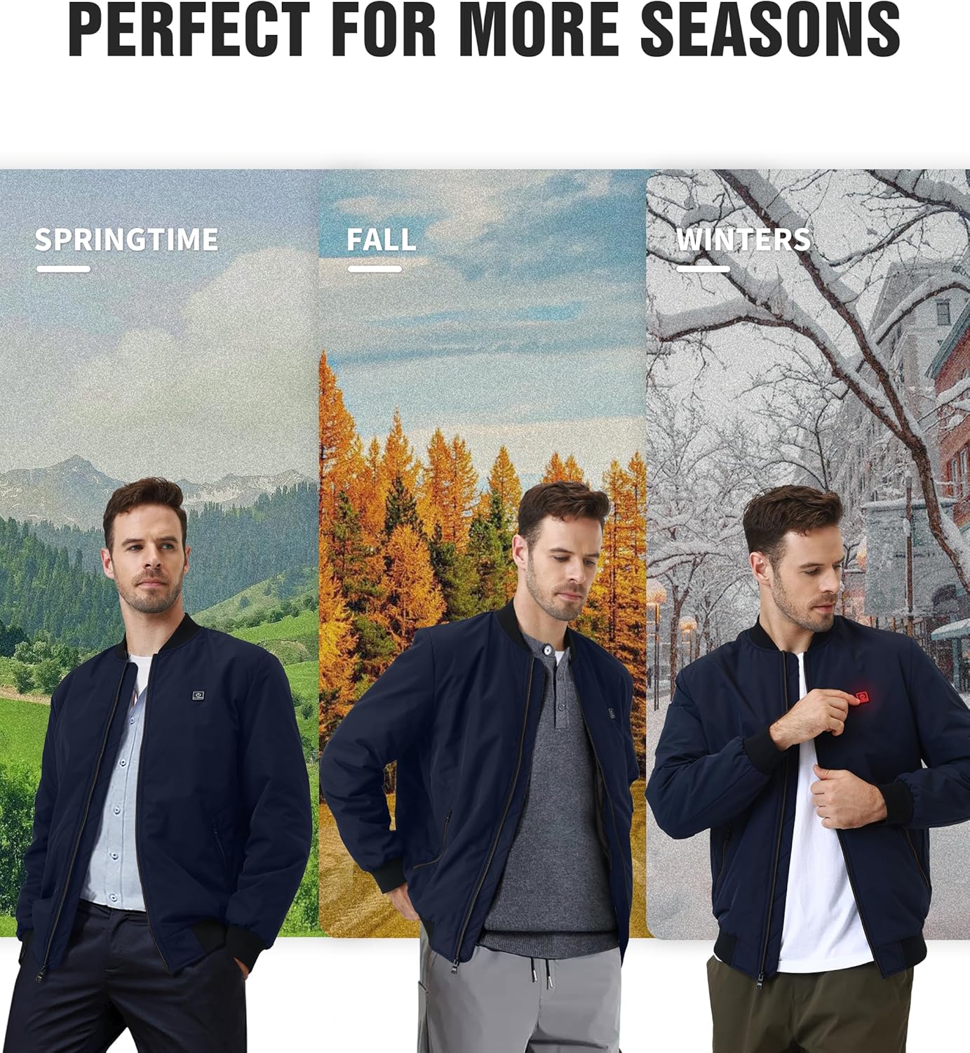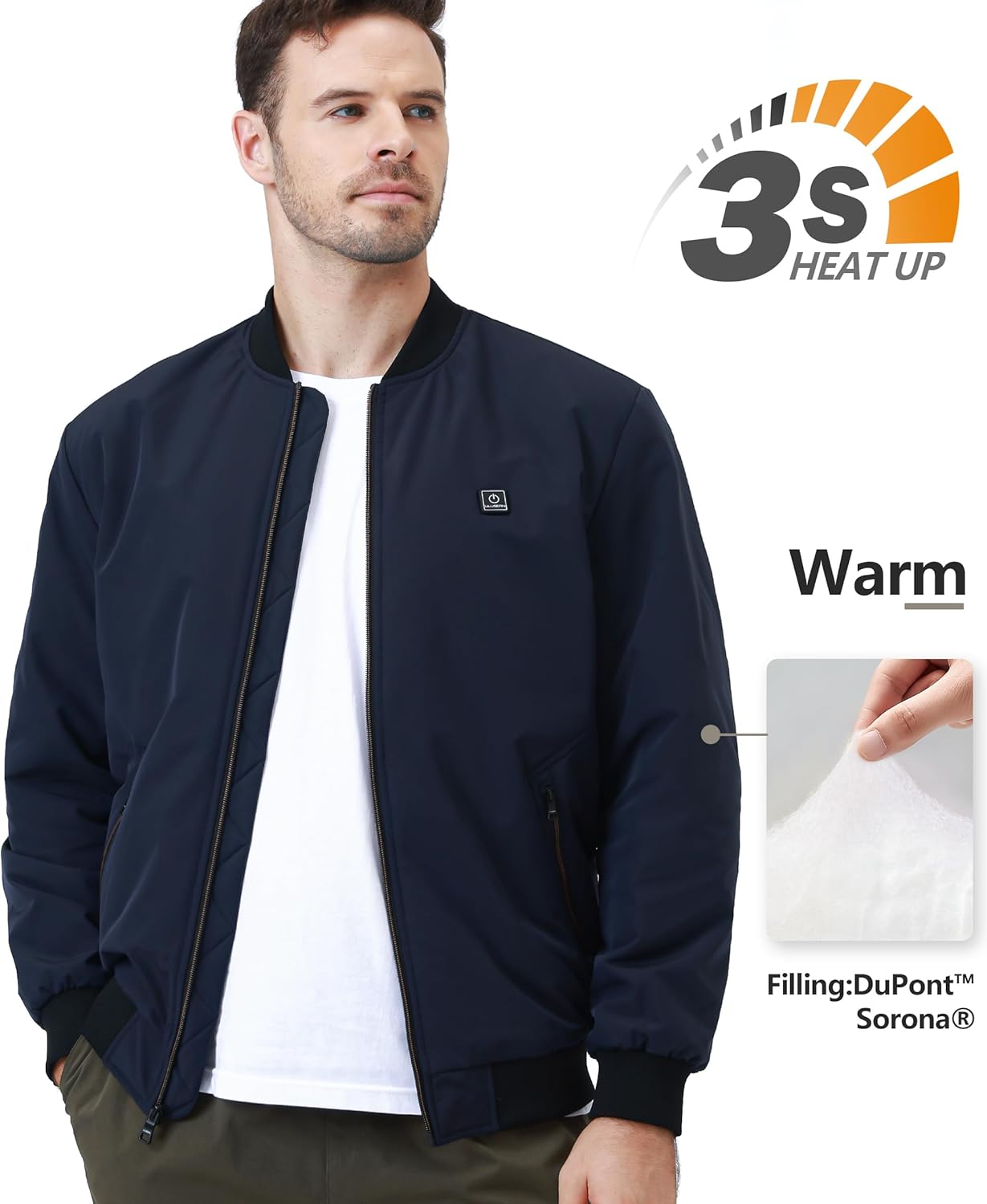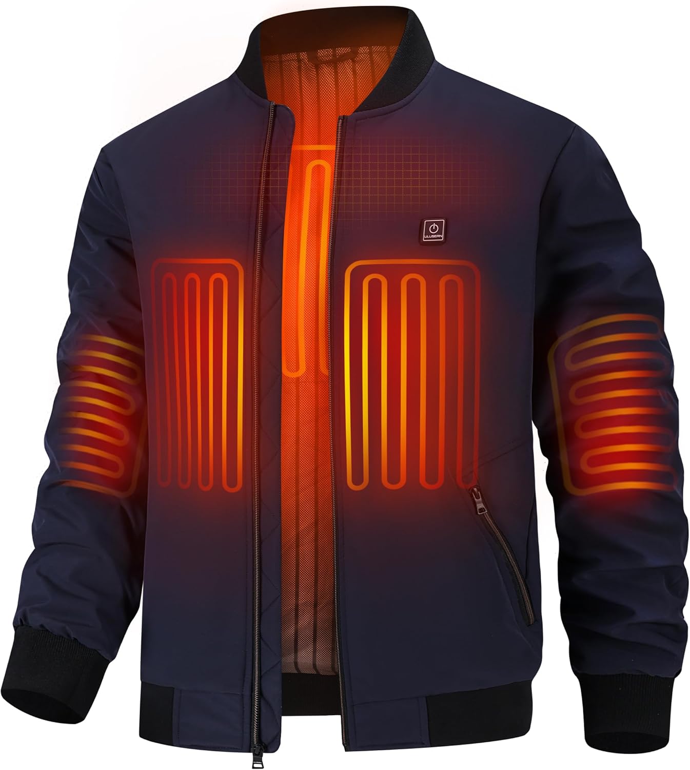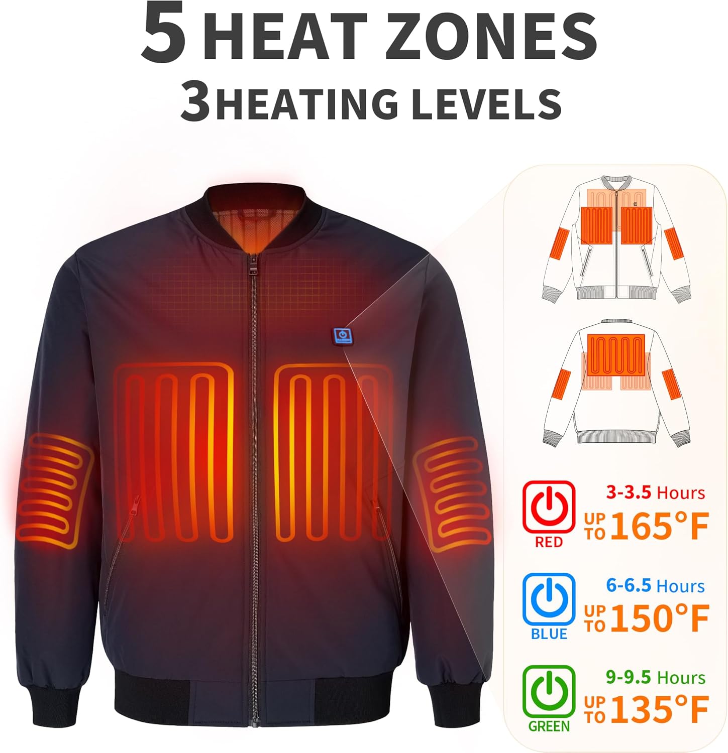 Men’s Heated Jacket with 12V Battery, Windproof Bomber Jackets Winter Warm Casual Heating Coat with 5 Heating Areas