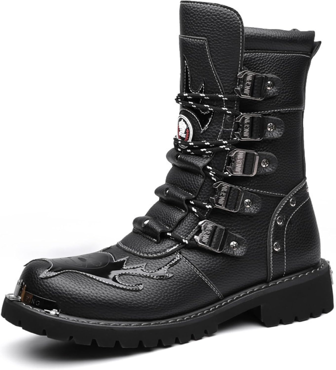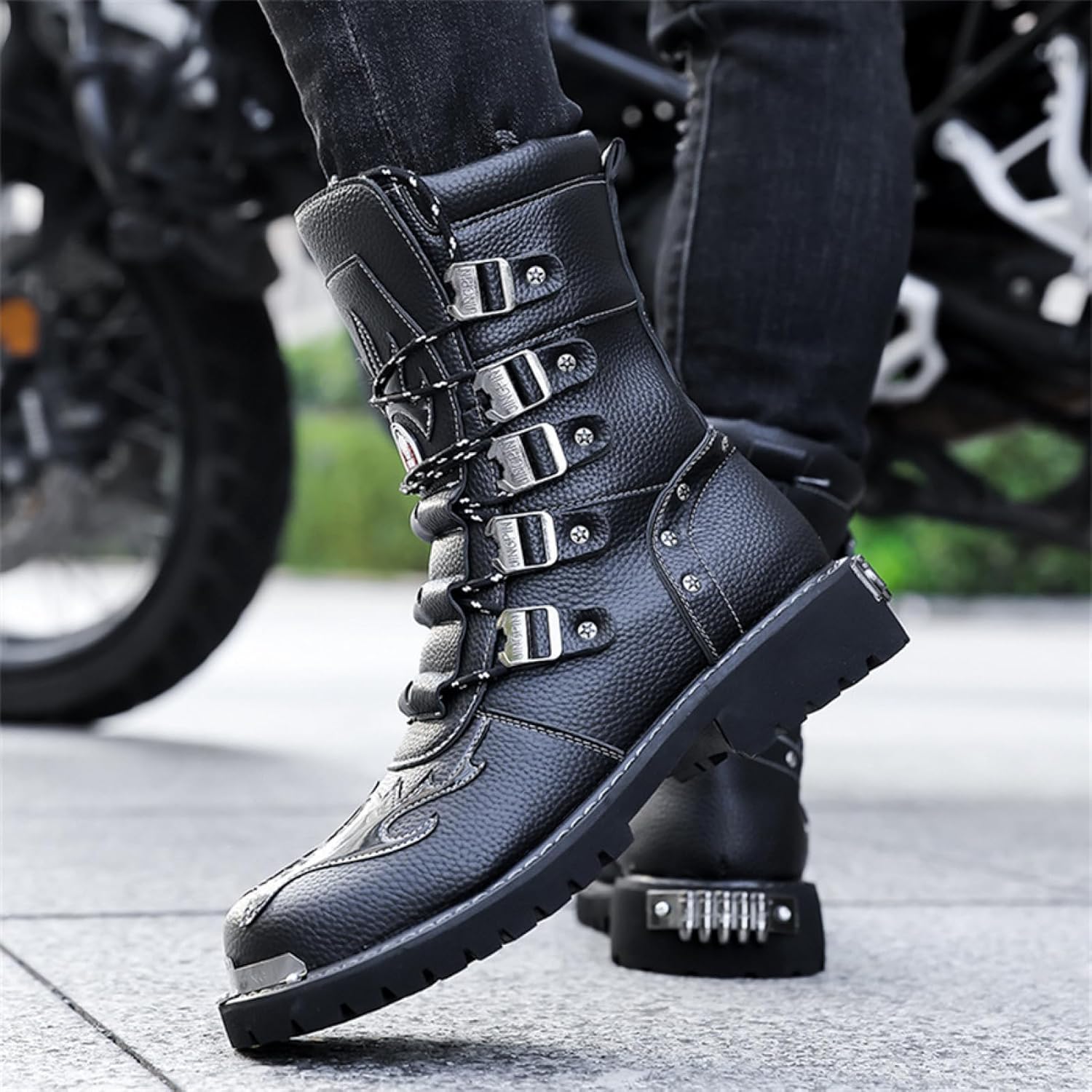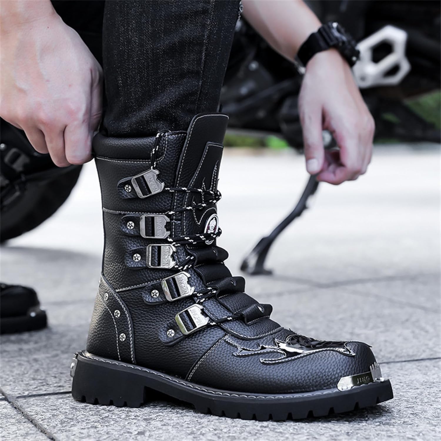 Men Drive Steel Toe Boot Motorcycle Boot Workwear Knight Racing Shoes Leather Thick Soled Non Slip Shoeses