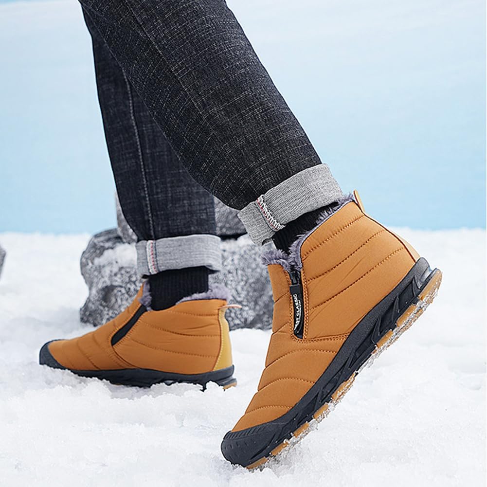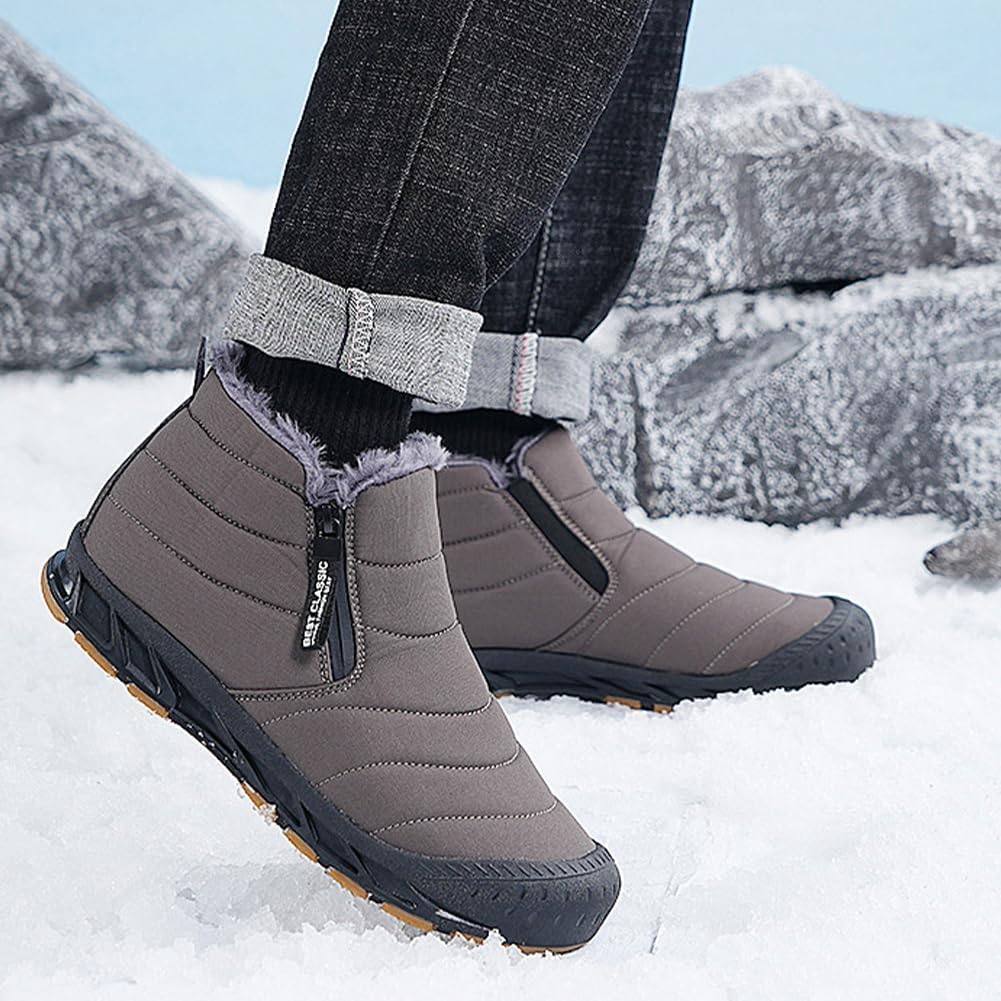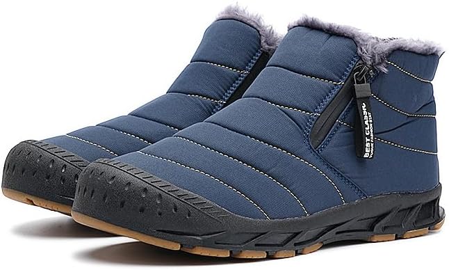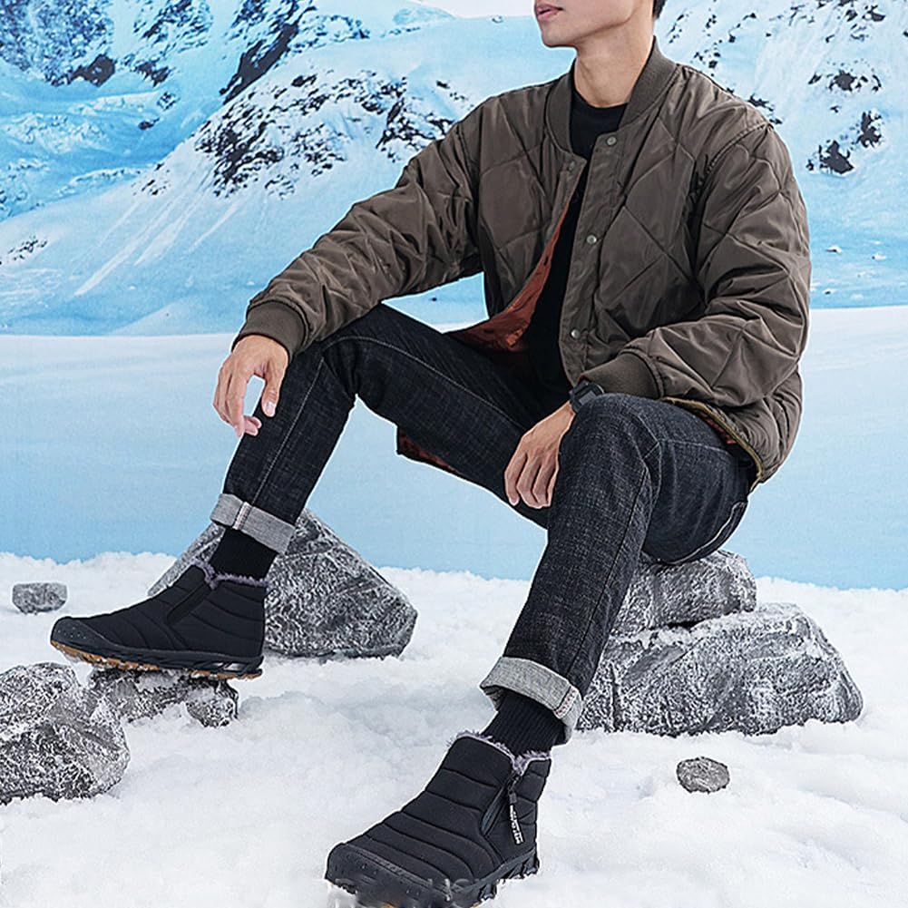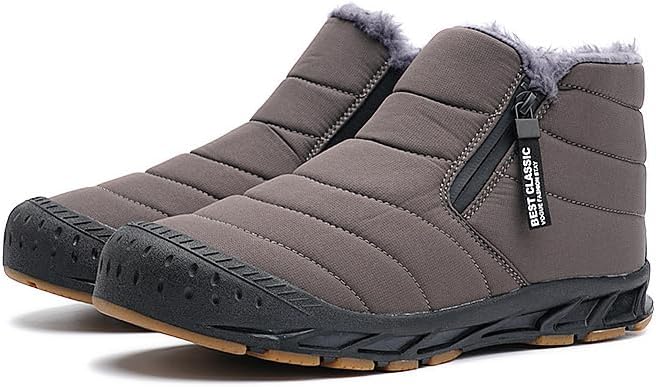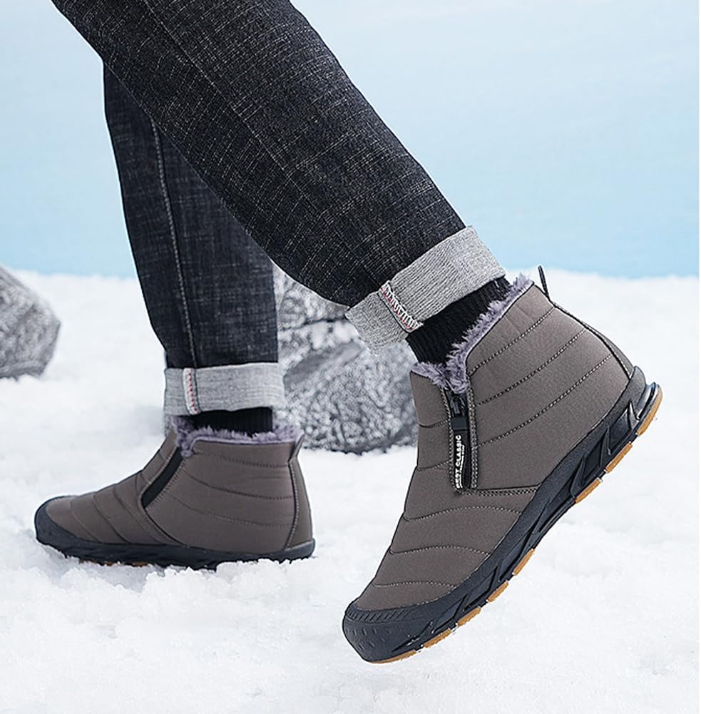 Snow Boots Mens Waterproof Winter Boots Fur Lined Warm Ankle Boots Zipper Closure Slip on Outdoor Boot