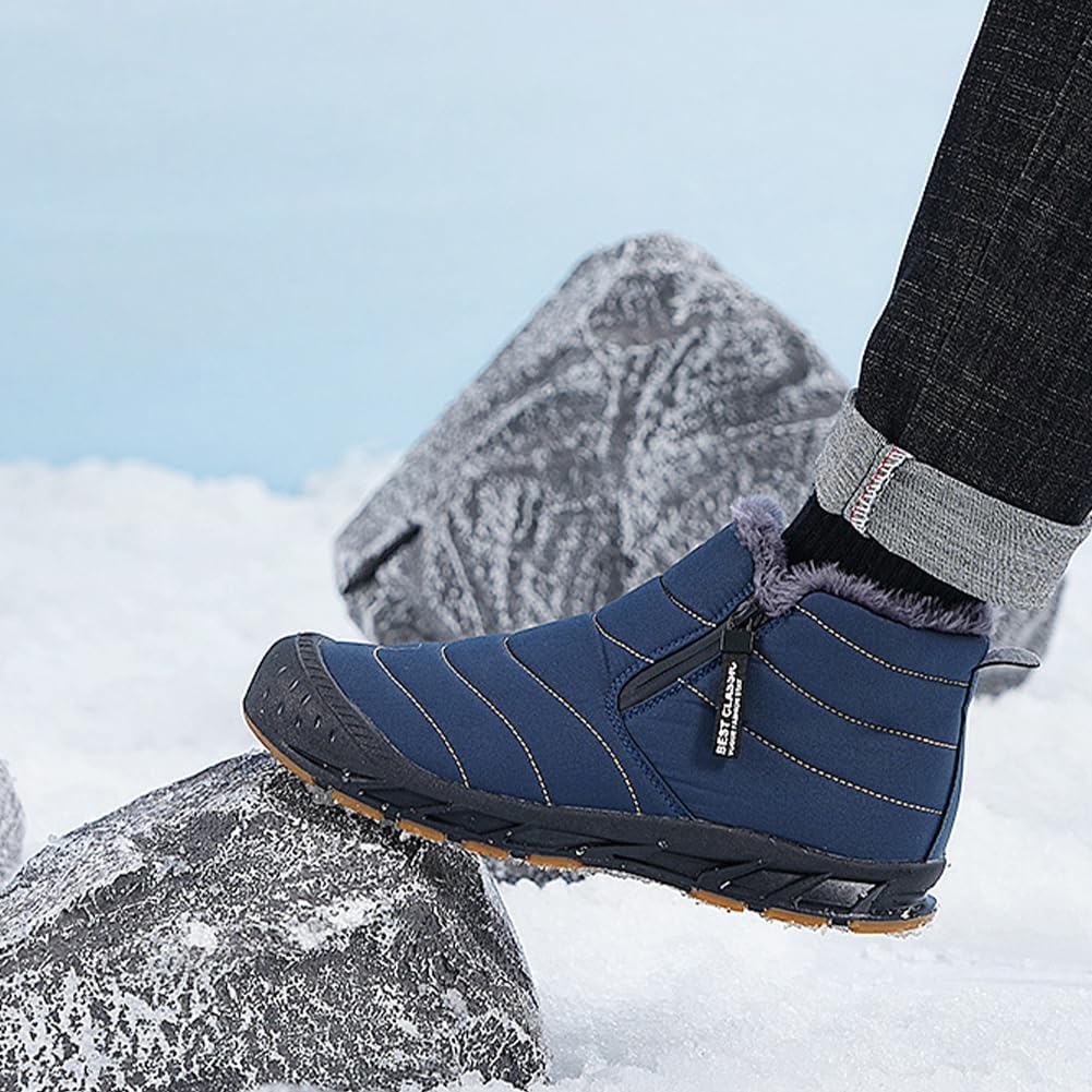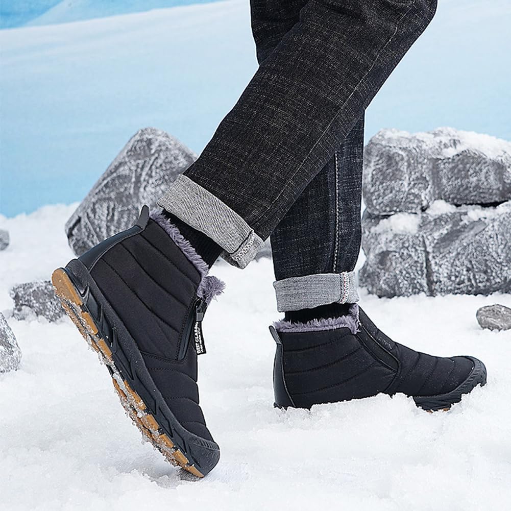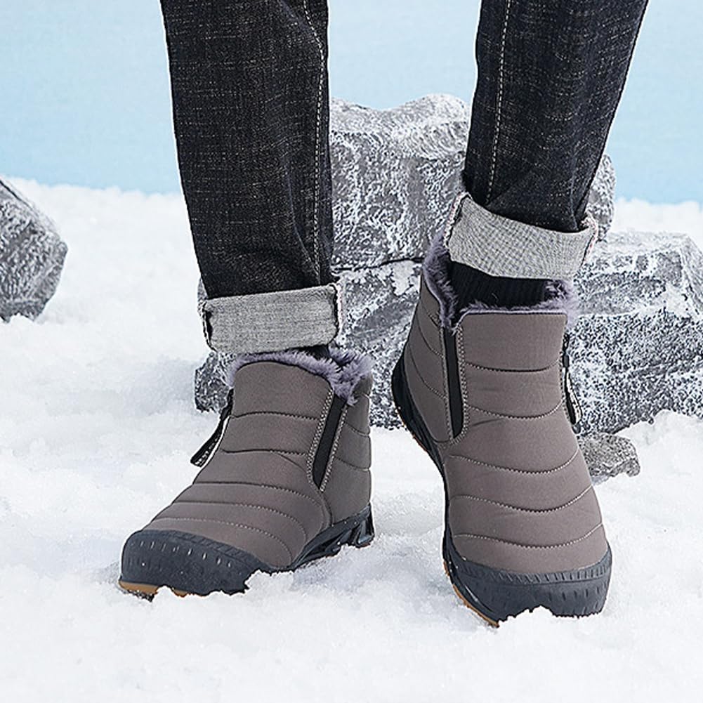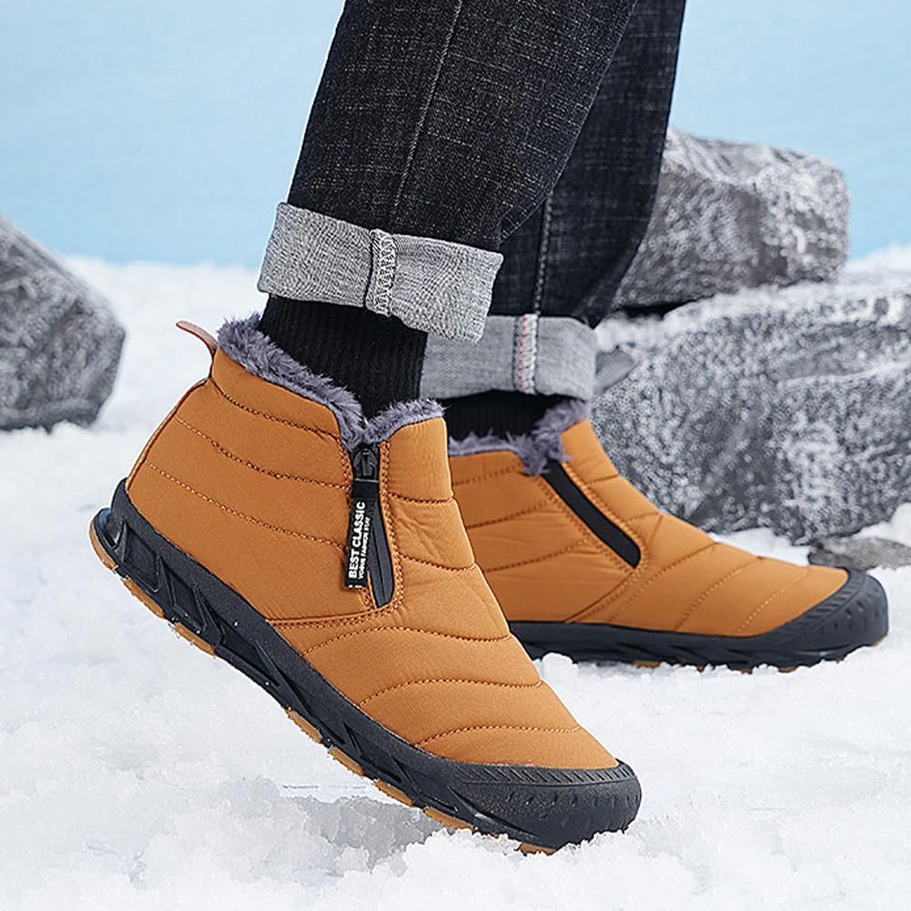Snow Boots Mens Waterproof Winter Boots Fur Lined Warm Ankle Boots Zipper Closure Slip on Outdoor Boot