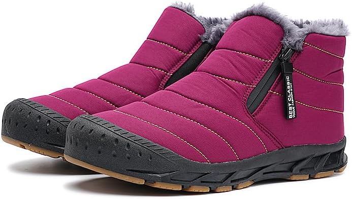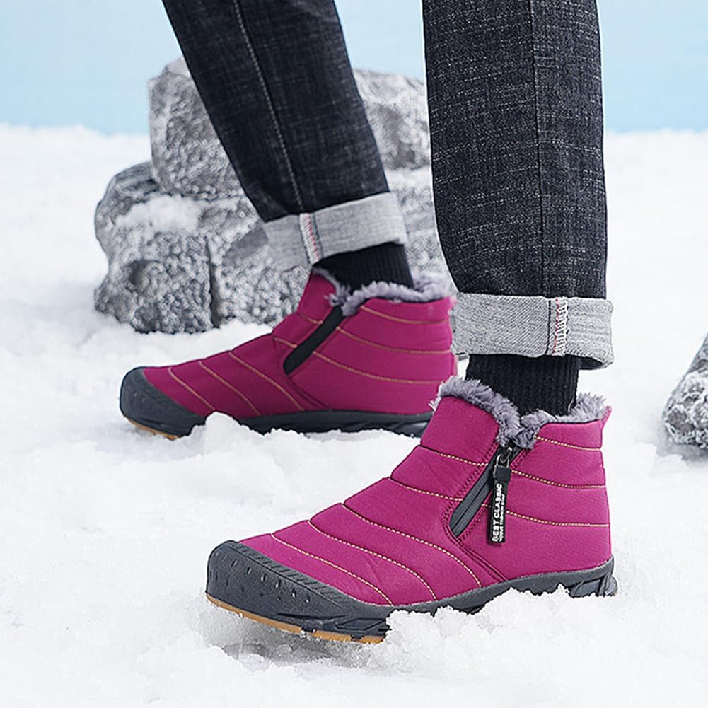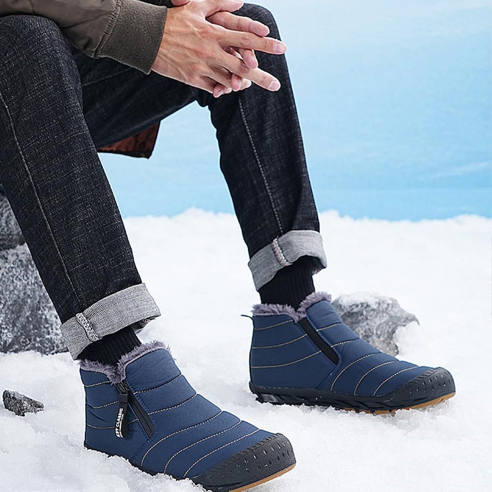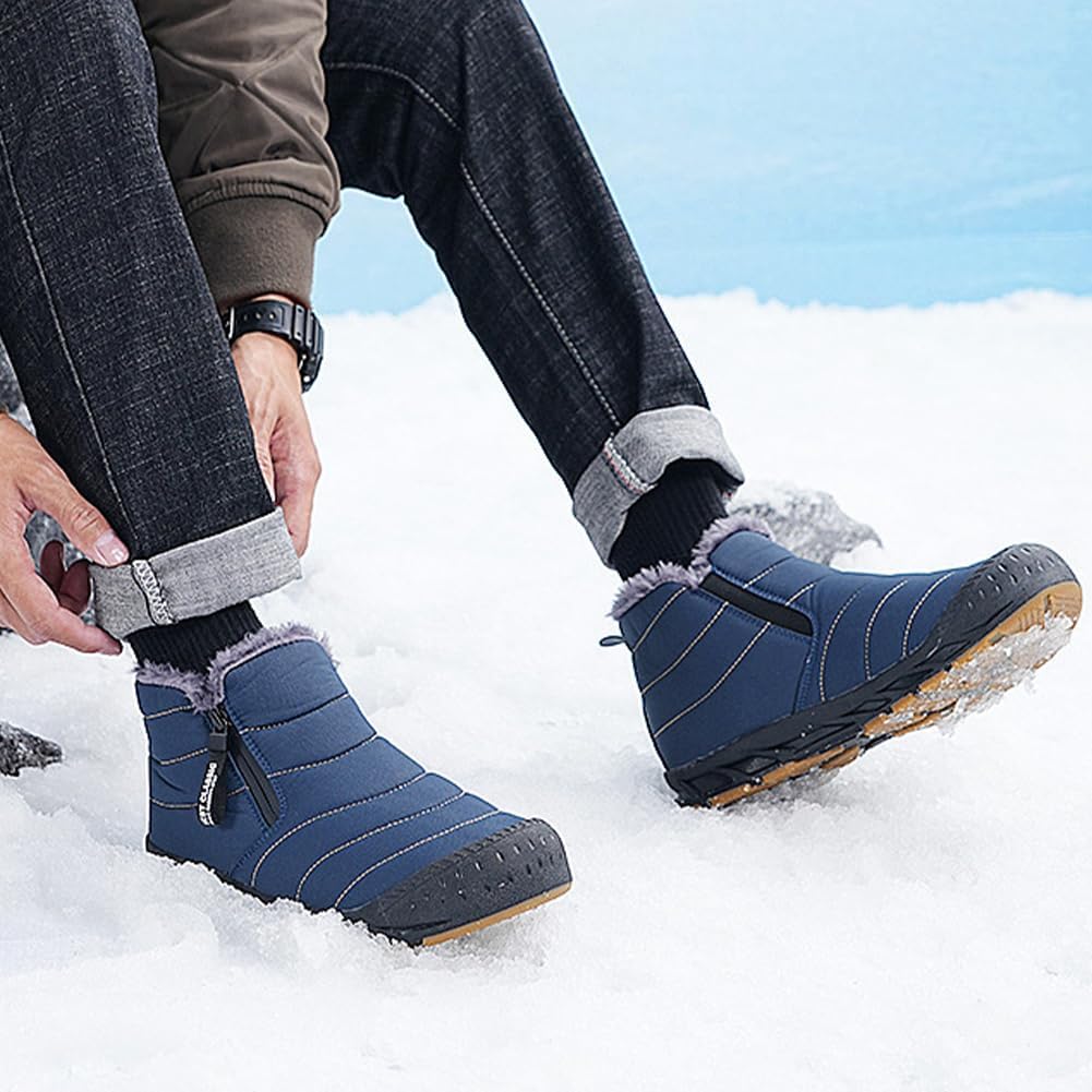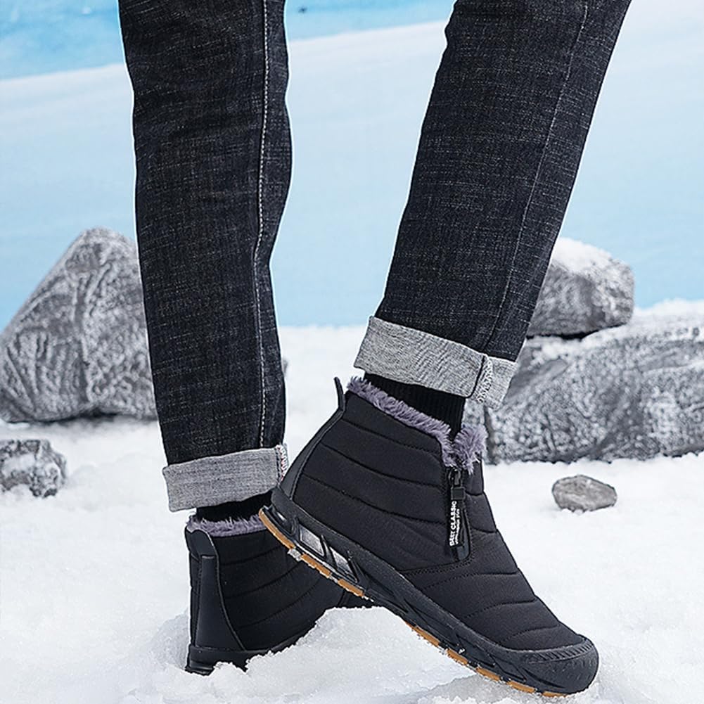 Snow Boots Mens Waterproof Winter Boots Fur Lined Warm Ankle Boots Zipper Closure Slip on Outdoor Boot