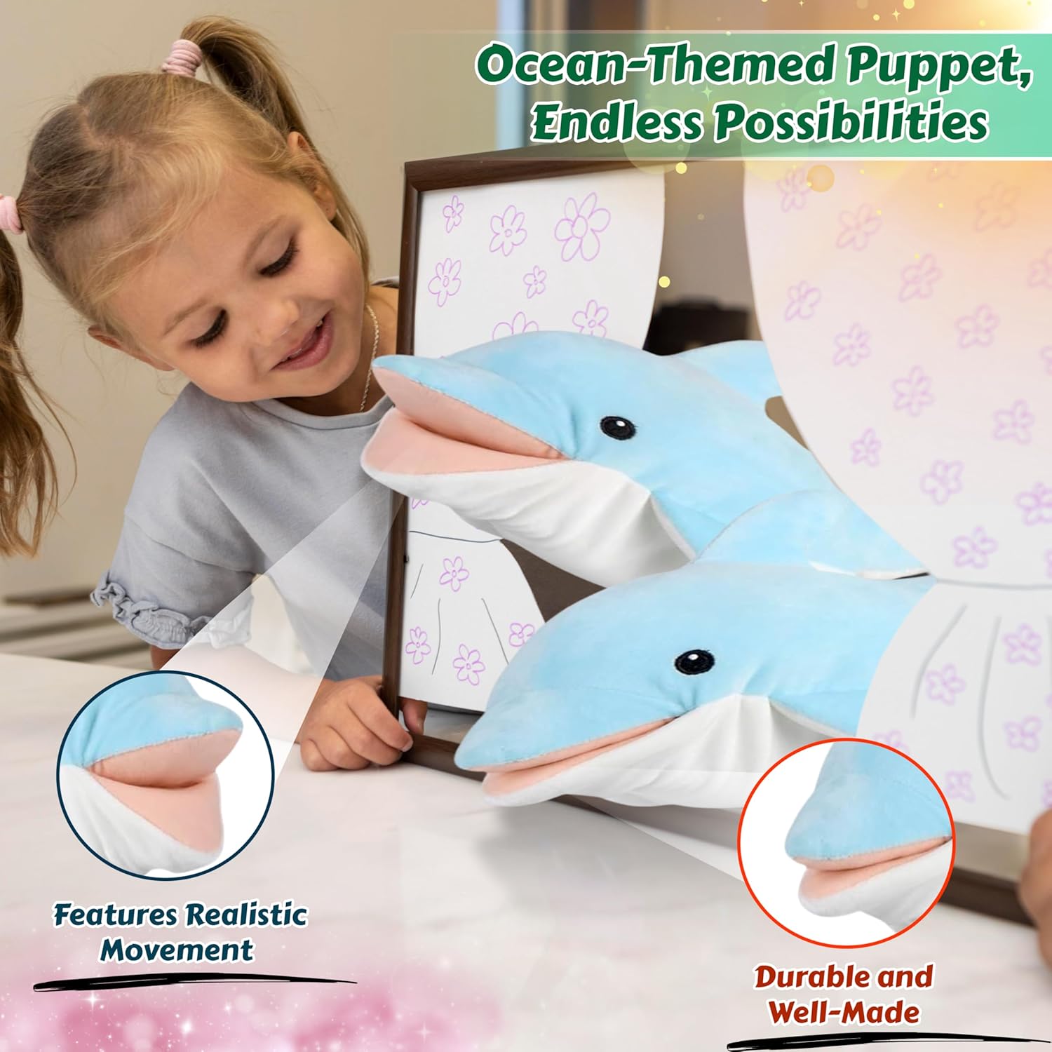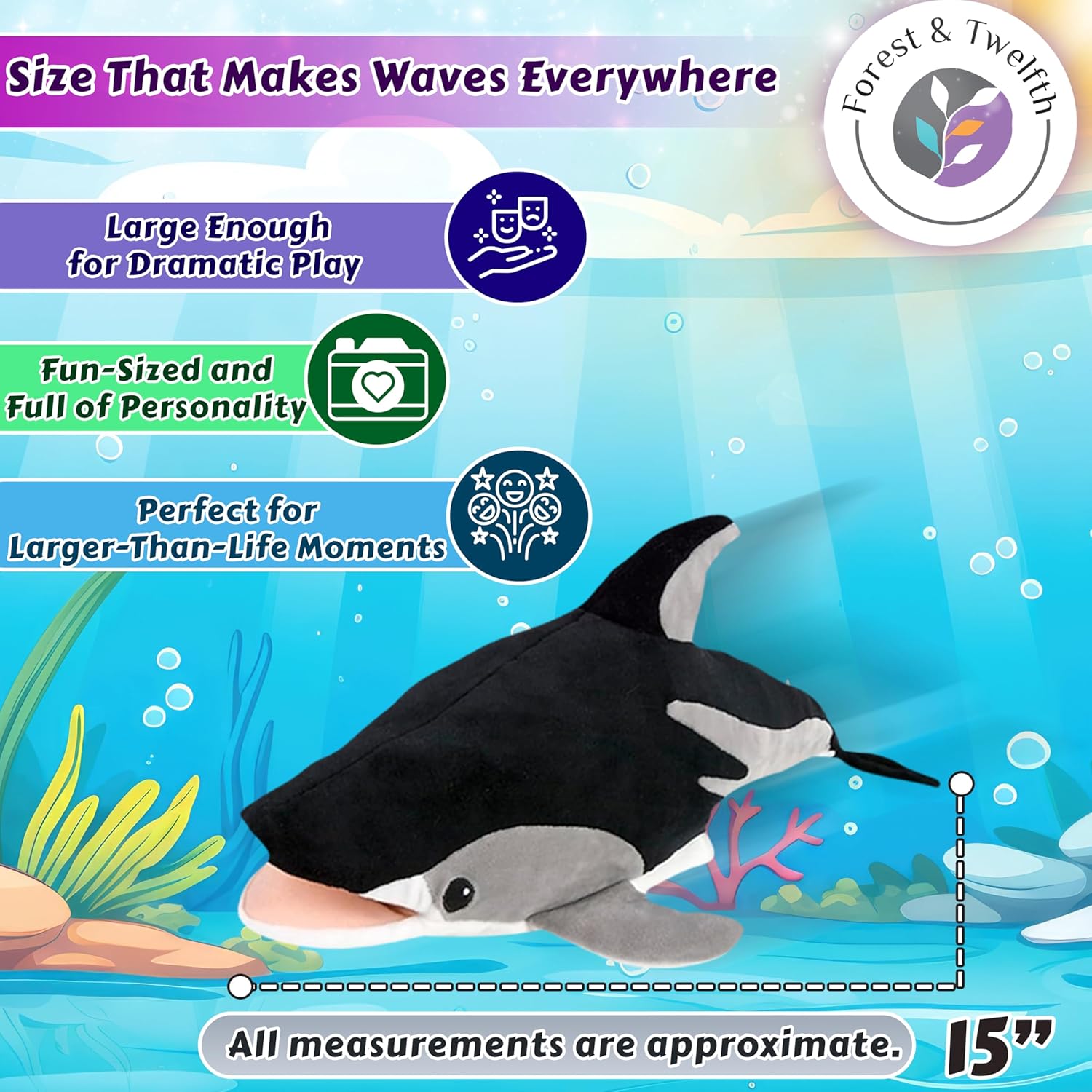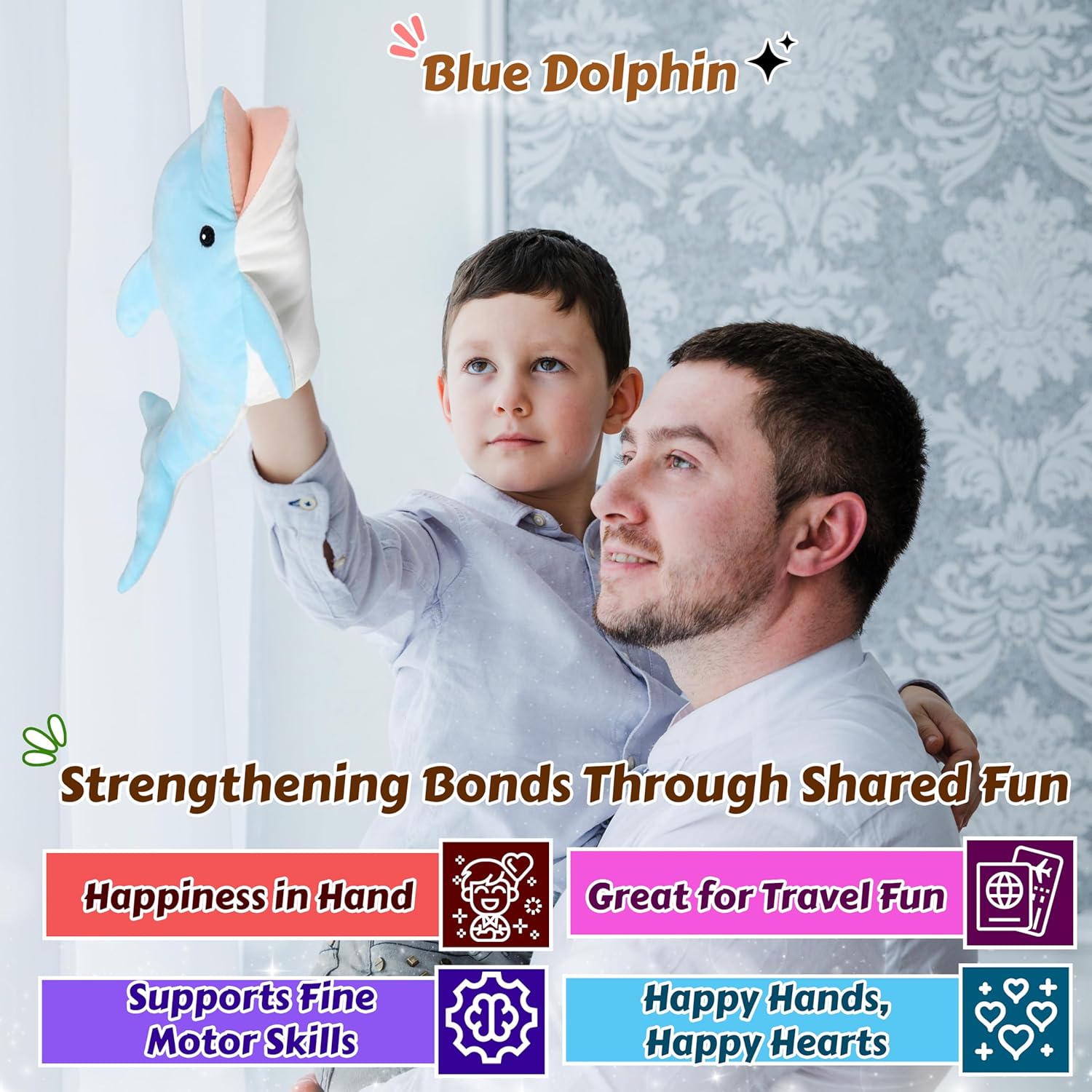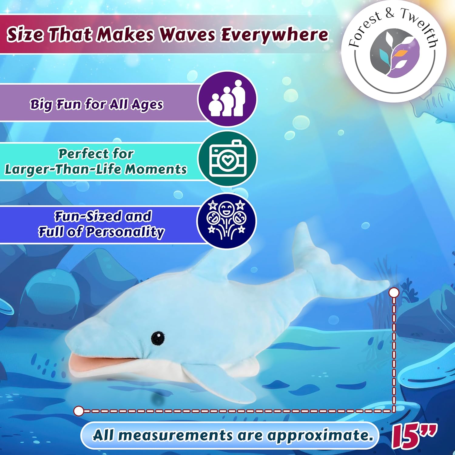 15” Animal Hand Puppets for Kids – Forest & Twelfth Hand Puppets to Spark Imaginations & Encourage Creative Play, Fun Animal Puppets for Kids Ages 0+ (Blue Dolphin)