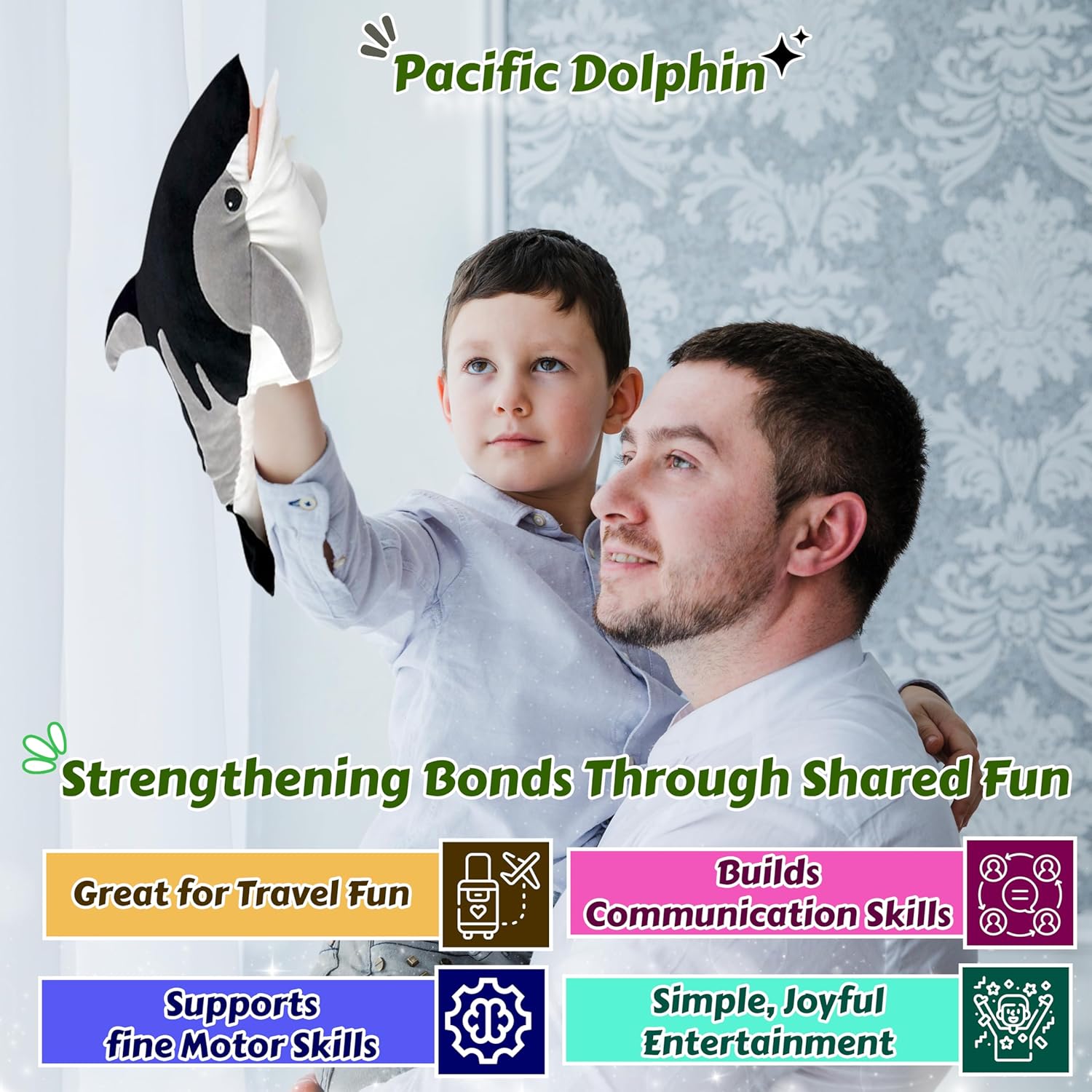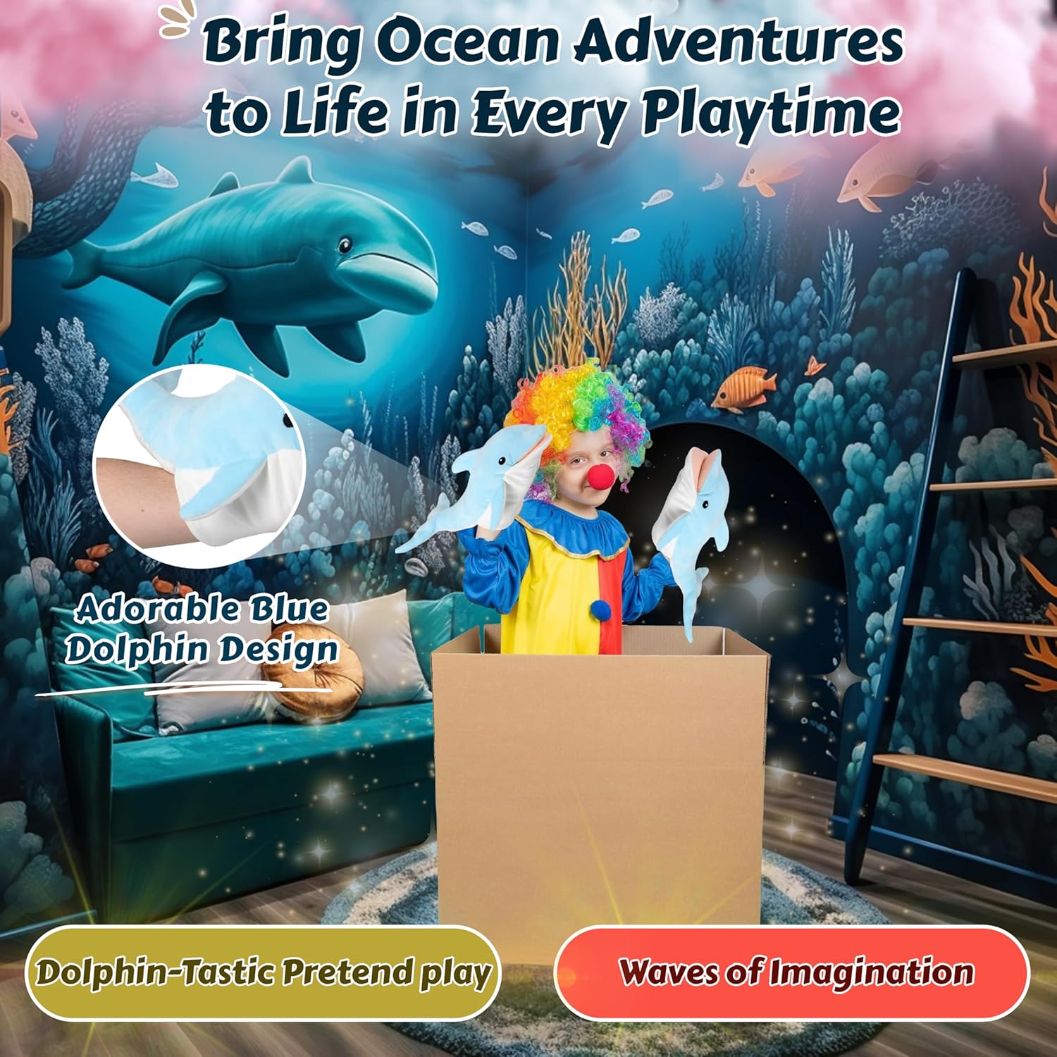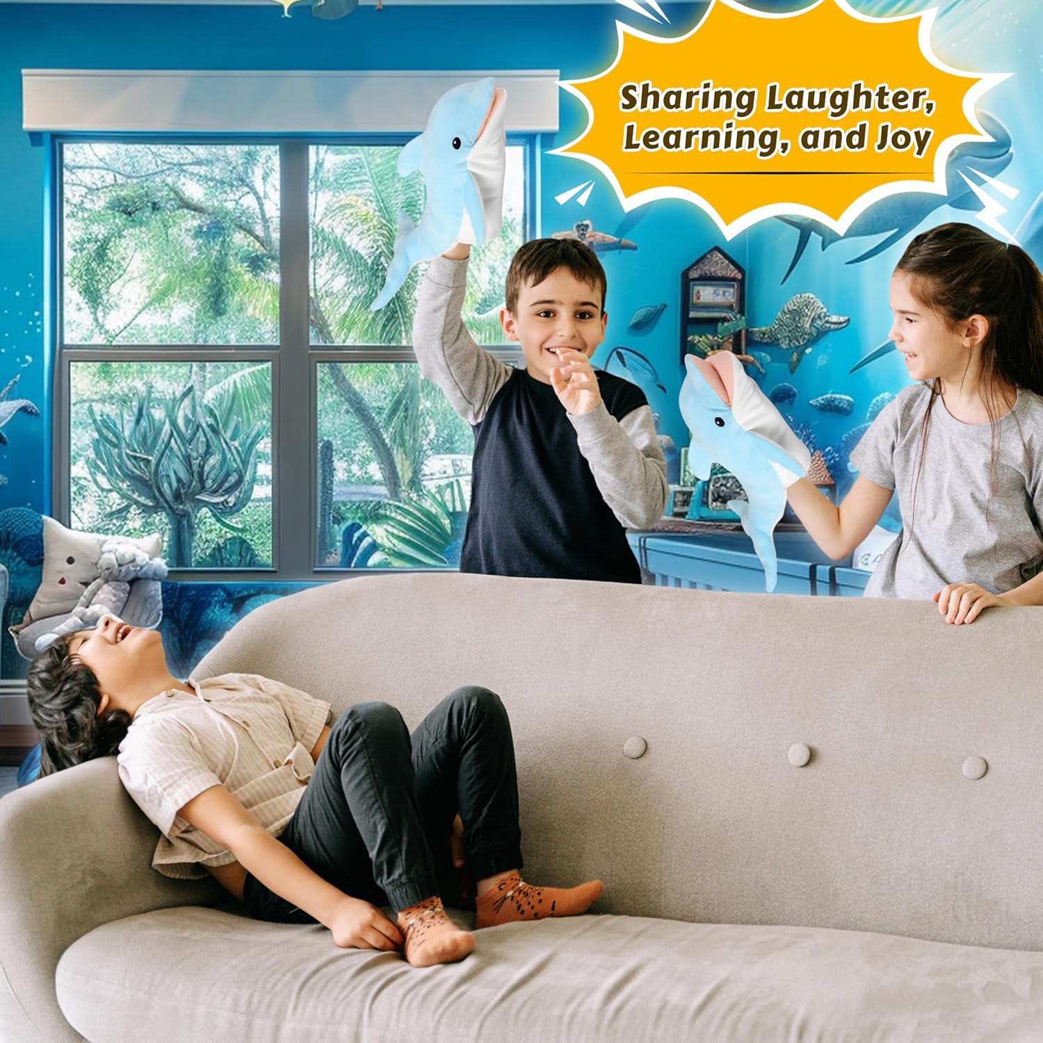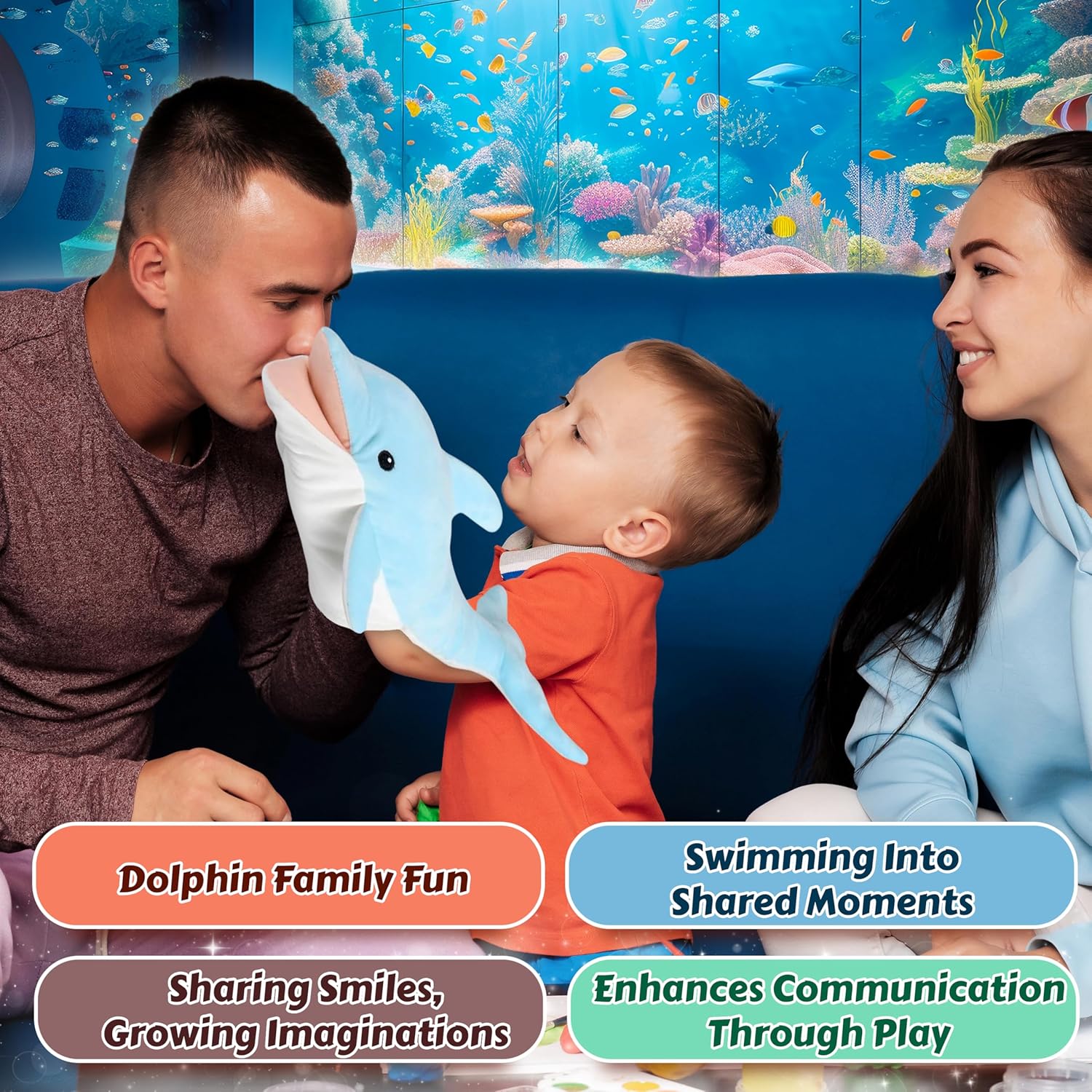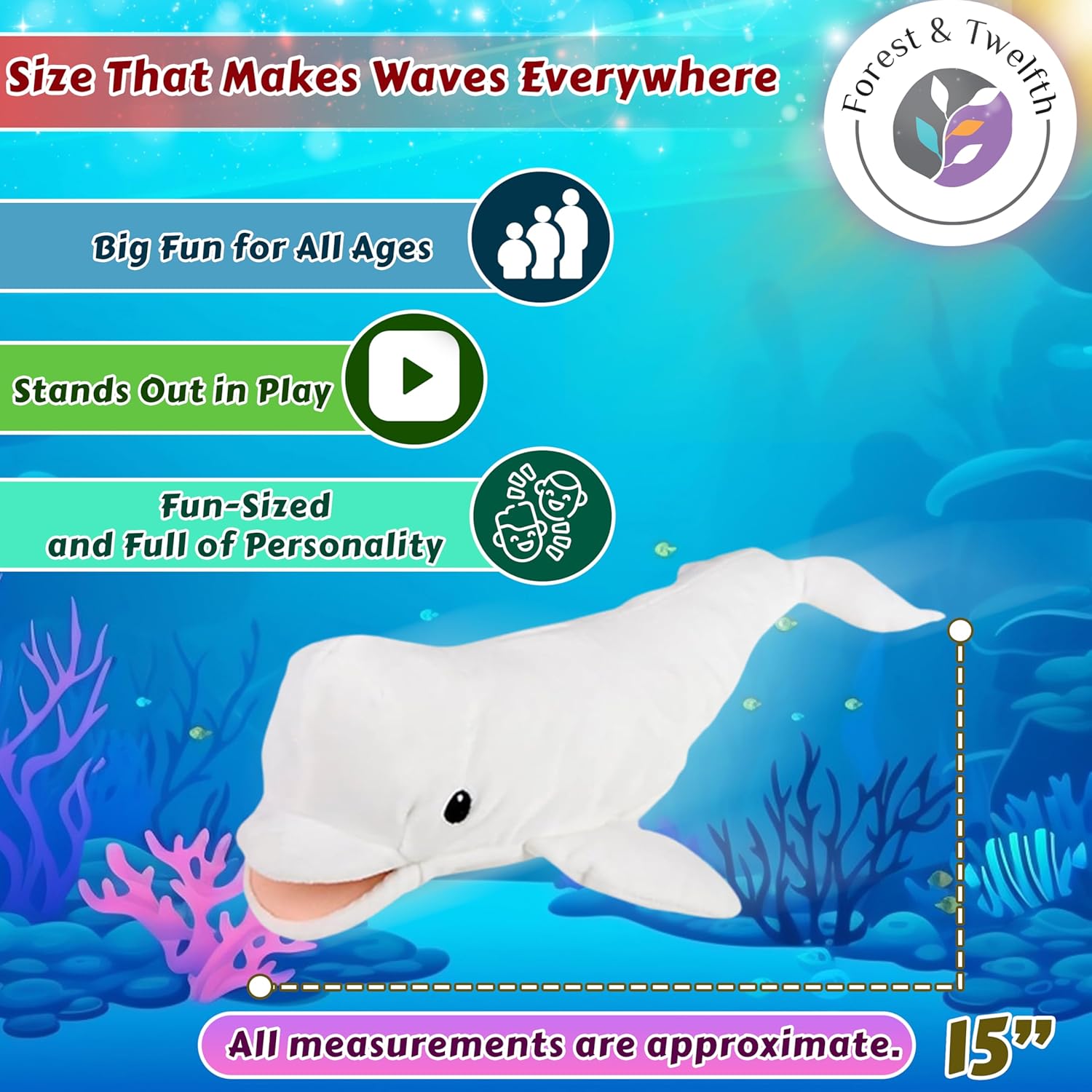 15” Animal Hand Puppets for Kids – Forest & Twelfth Hand Puppets to Spark Imaginations & Encourage Creative Play, Fun Animal Puppets for Kids Ages 0+ (Blue Dolphin)