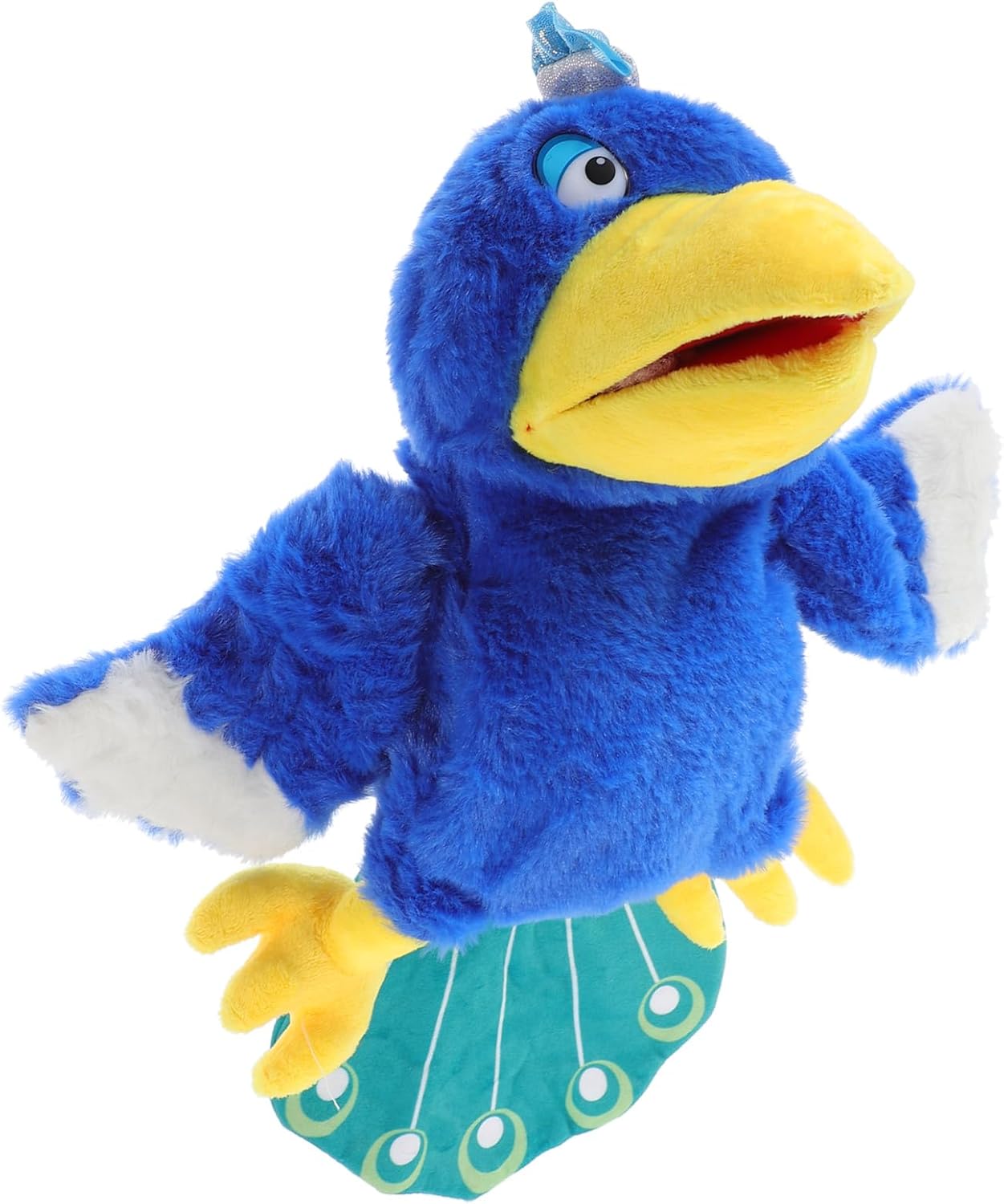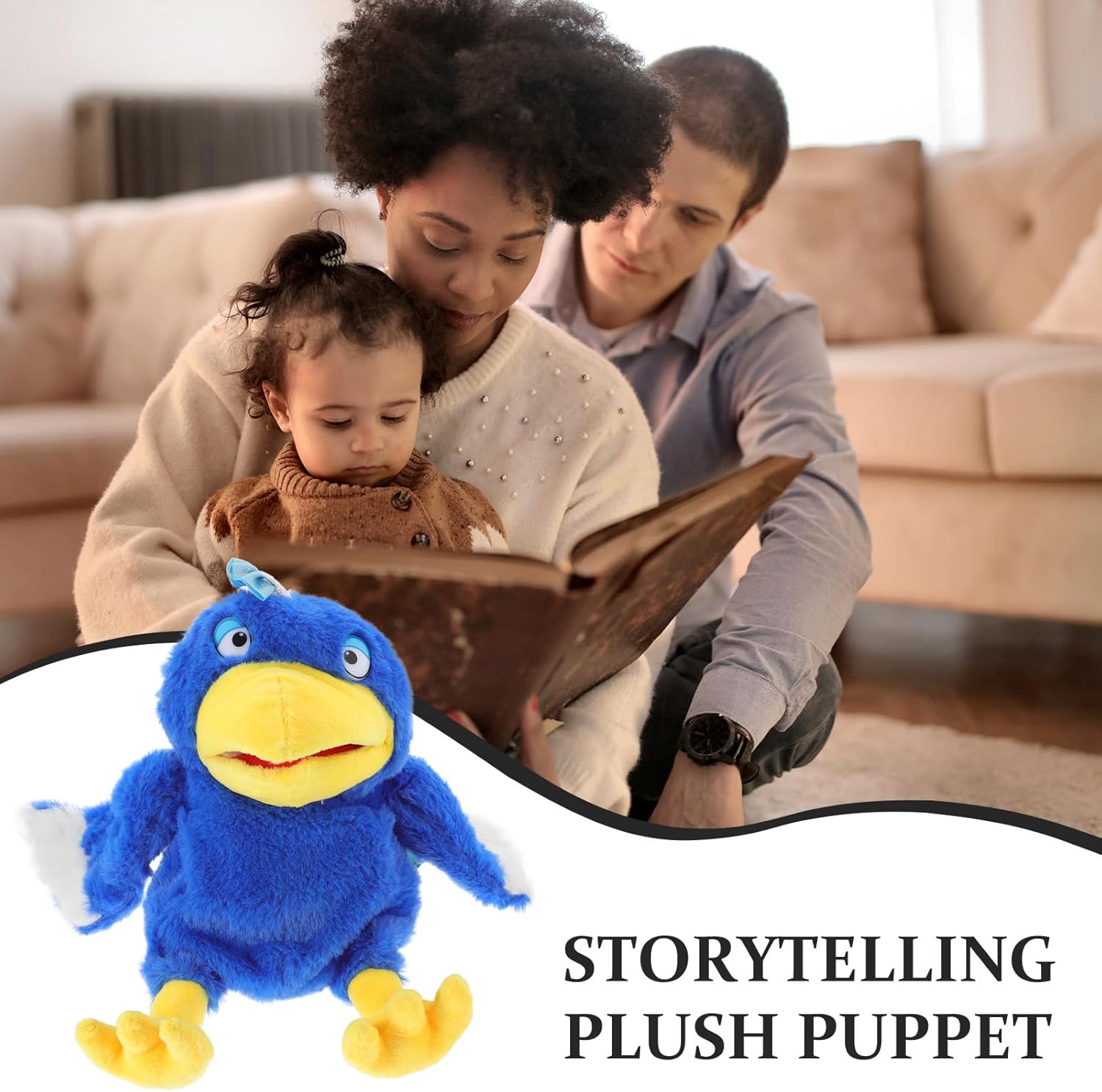 LOGOFUN Bird Hand Puppet Plush Animal Toy with Movable Mouth – Stuffed Bird Hand Puppets Doll for Pretend Play Storytelling Prop – Blue & Yellow 11.79IN