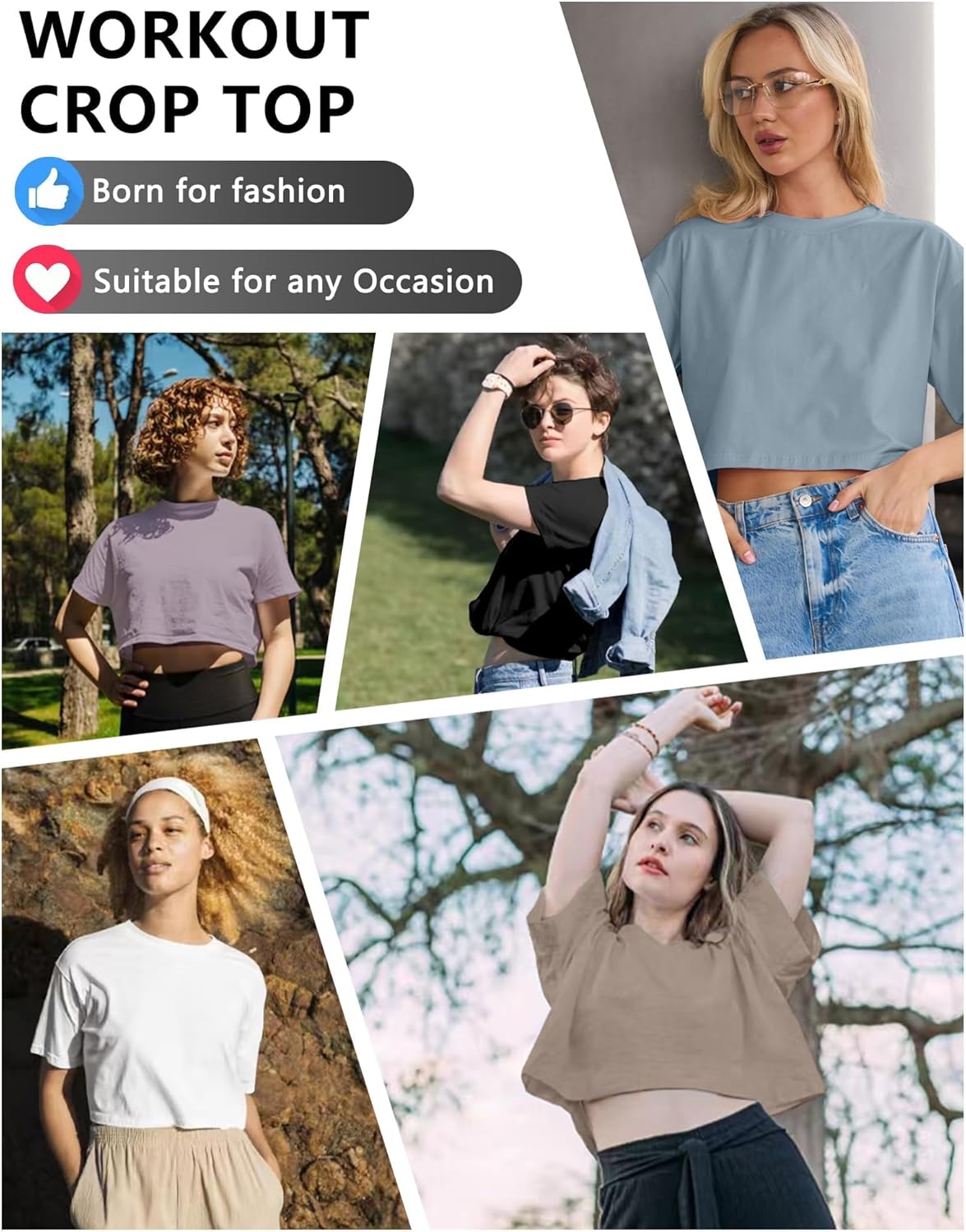 6 Pack Women’s Crop Top Short Sleeve Athletic Workout Yoga Running Gym Casual Tees T-Shirts Loose Fit