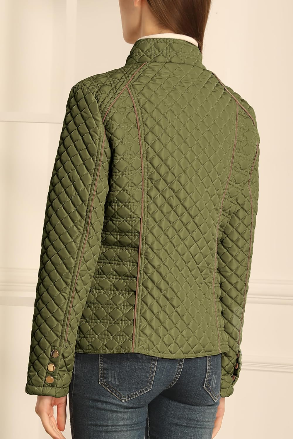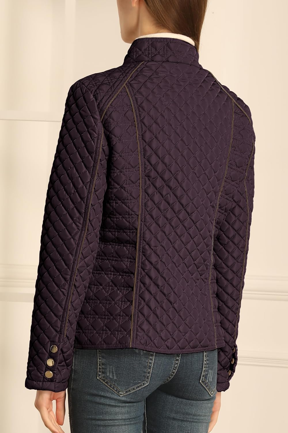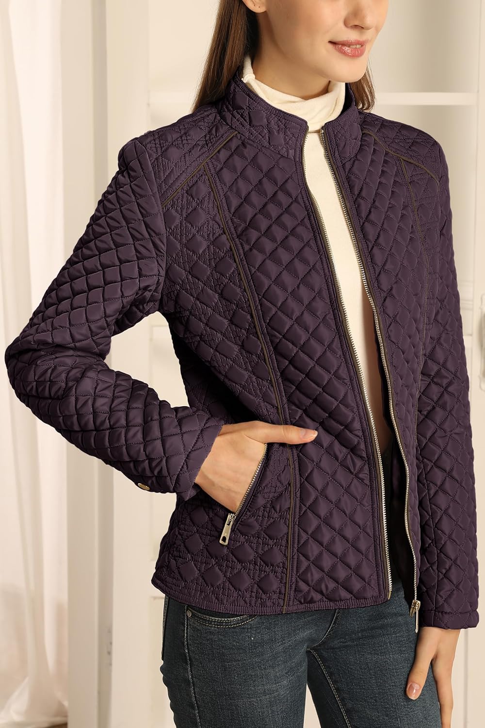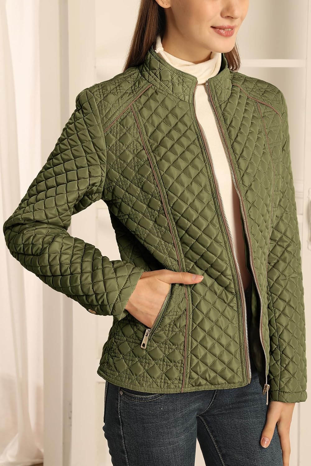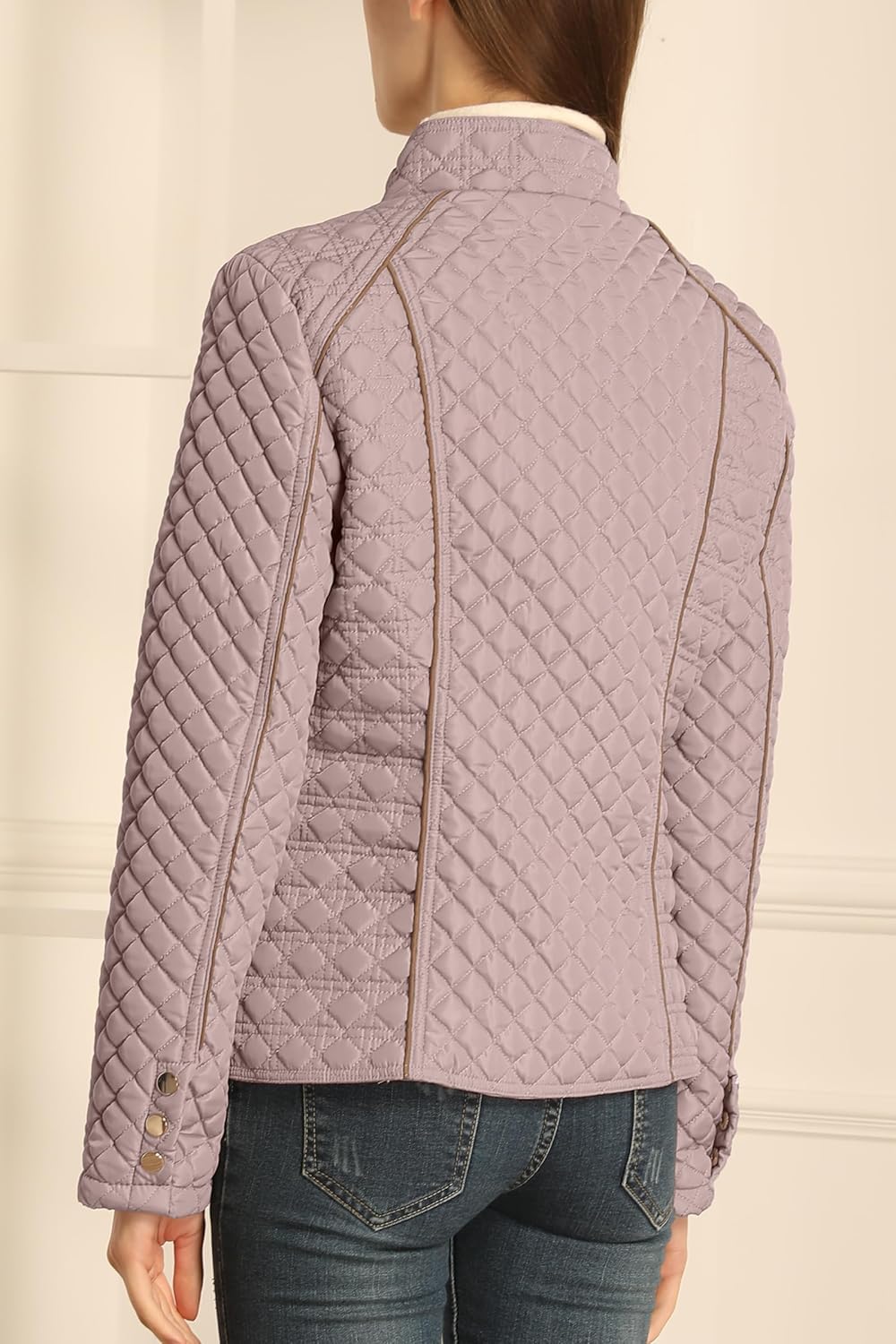 Bellivera Women’s Stand Collar Lightweight Quilted Puffer Jacket Padded Zip Coat for Spring and Winter