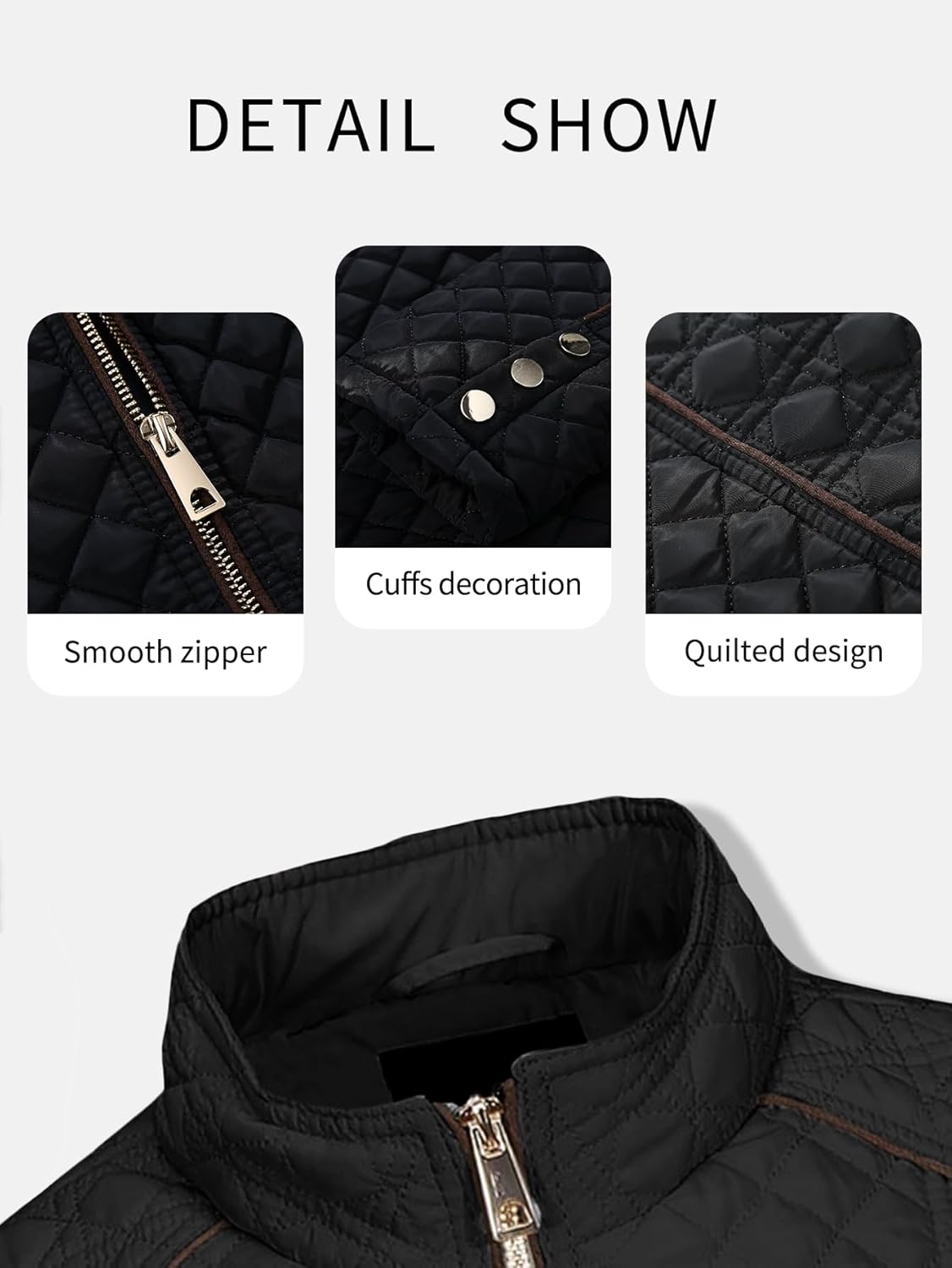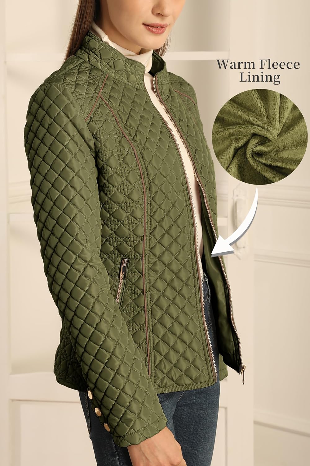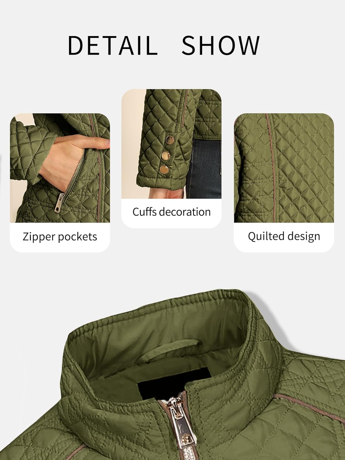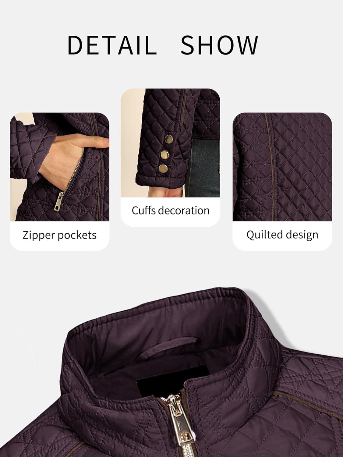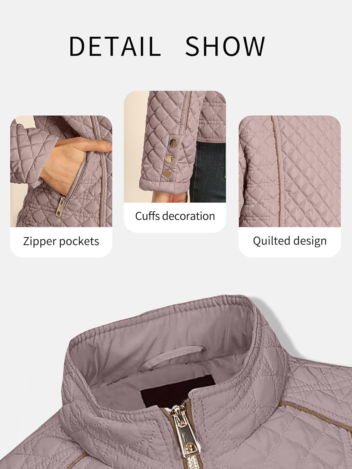 Bellivera Women’s Stand Collar Lightweight Quilted Puffer Jacket Padded Zip Coat for Spring and Winter