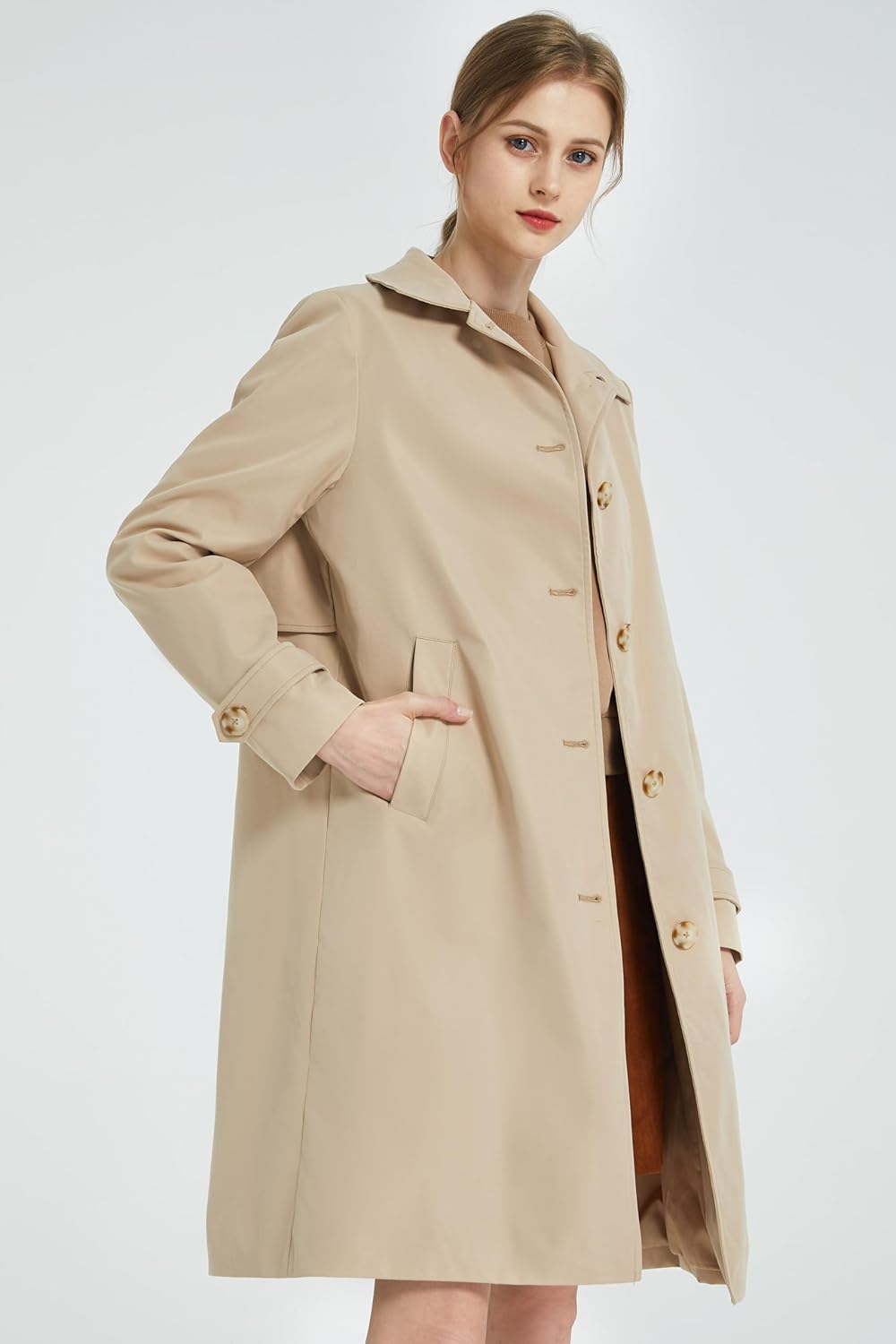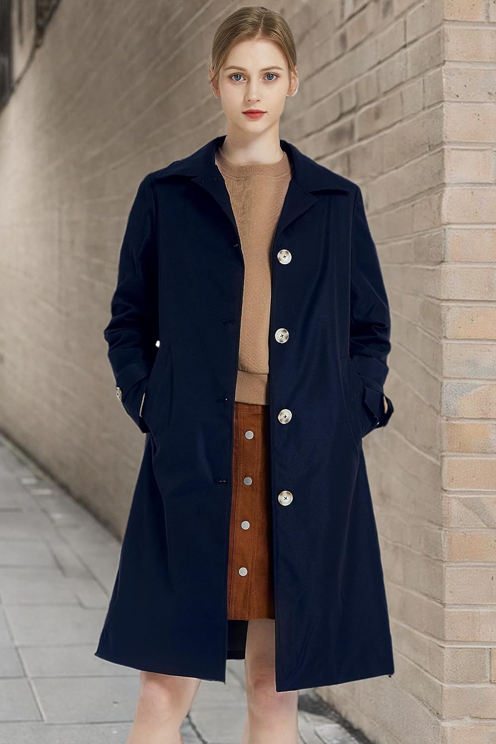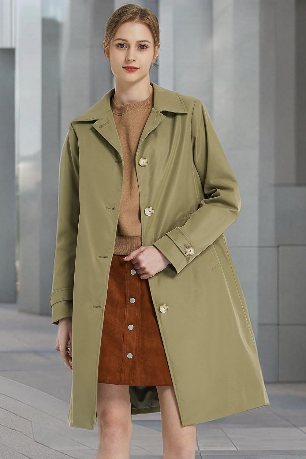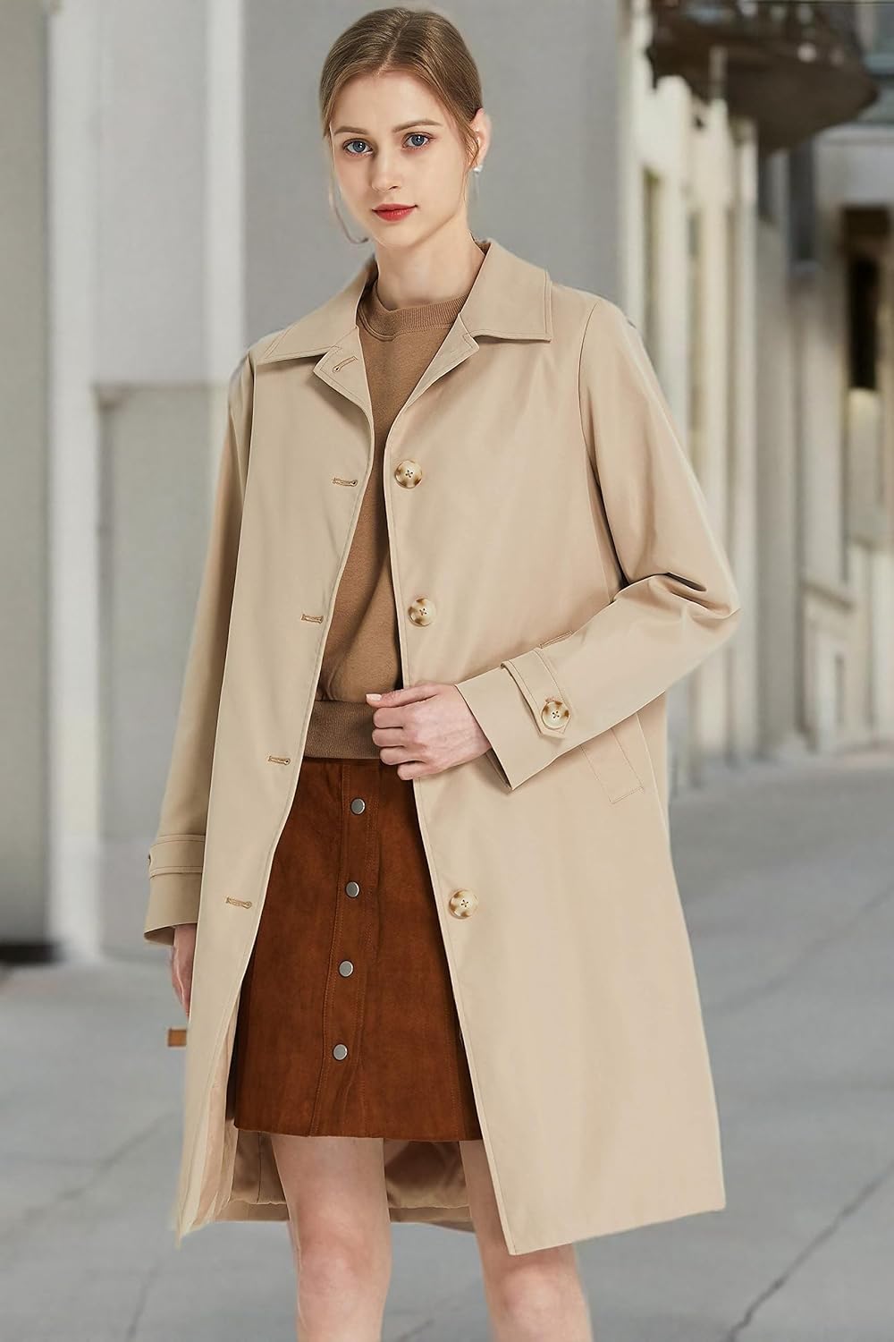 Orolay Women’s Single Breasted Trench Coat Mid Long Classic Lapel Windproof Slim Outerwear Coats