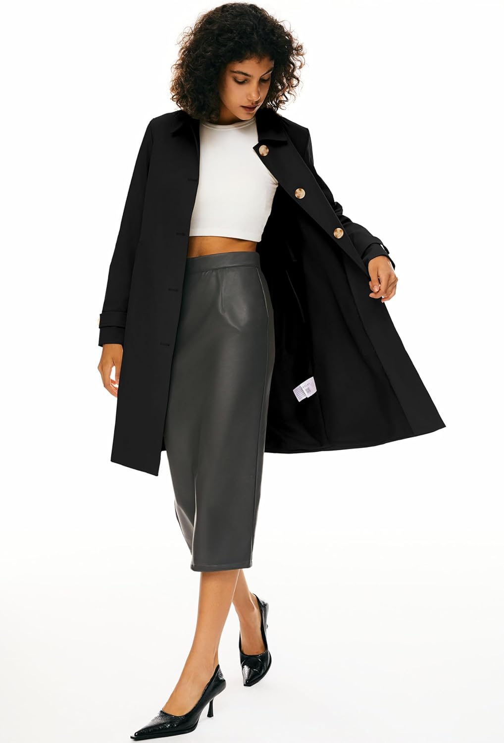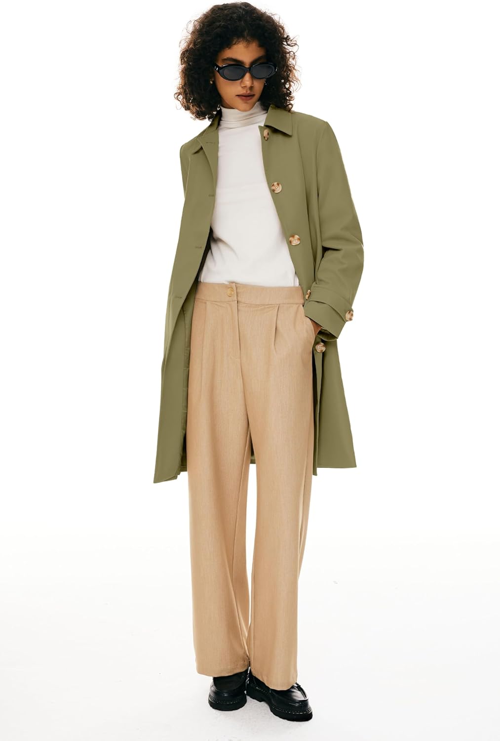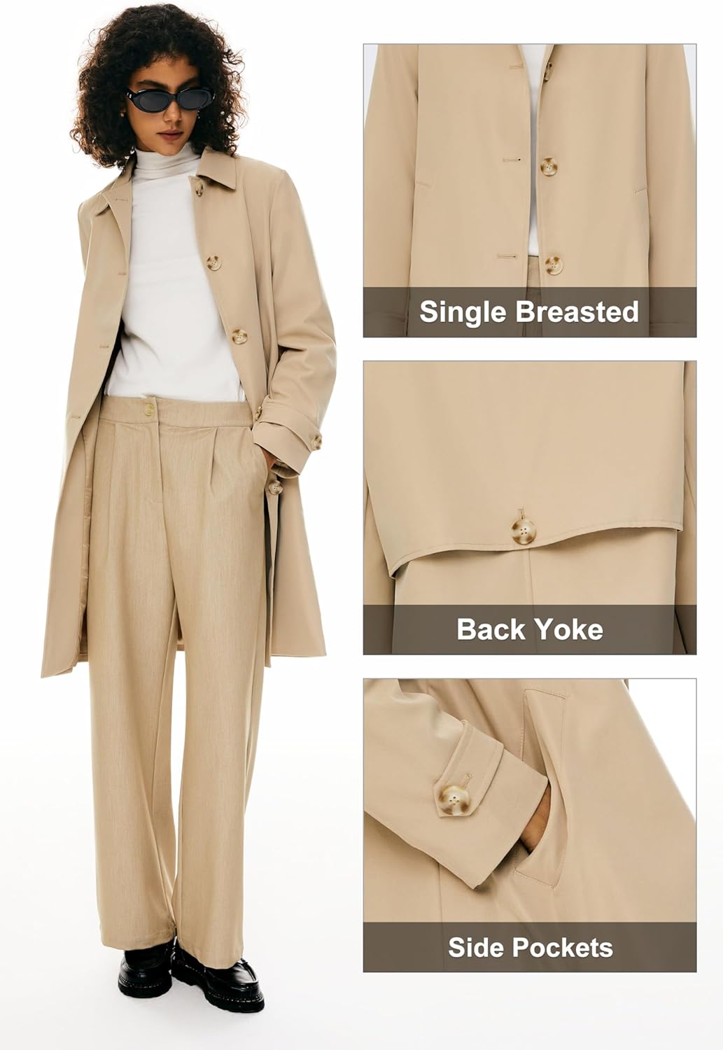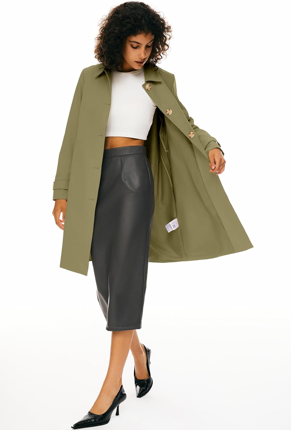 Orolay Women’s Single Breasted Trench Coat Mid Long Classic Lapel Windproof Slim Outerwear Coats