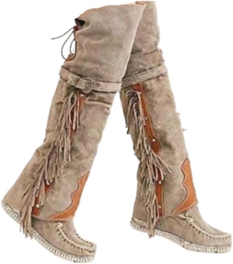 Cowboy Boots for Women Over the Knee Western Boots Embroidery Cowgirl Pull-On Pointy Toe & Wide Trending Fashion – Plus Size Retro Comfortable Walking Lightweight Running Standing All Day