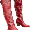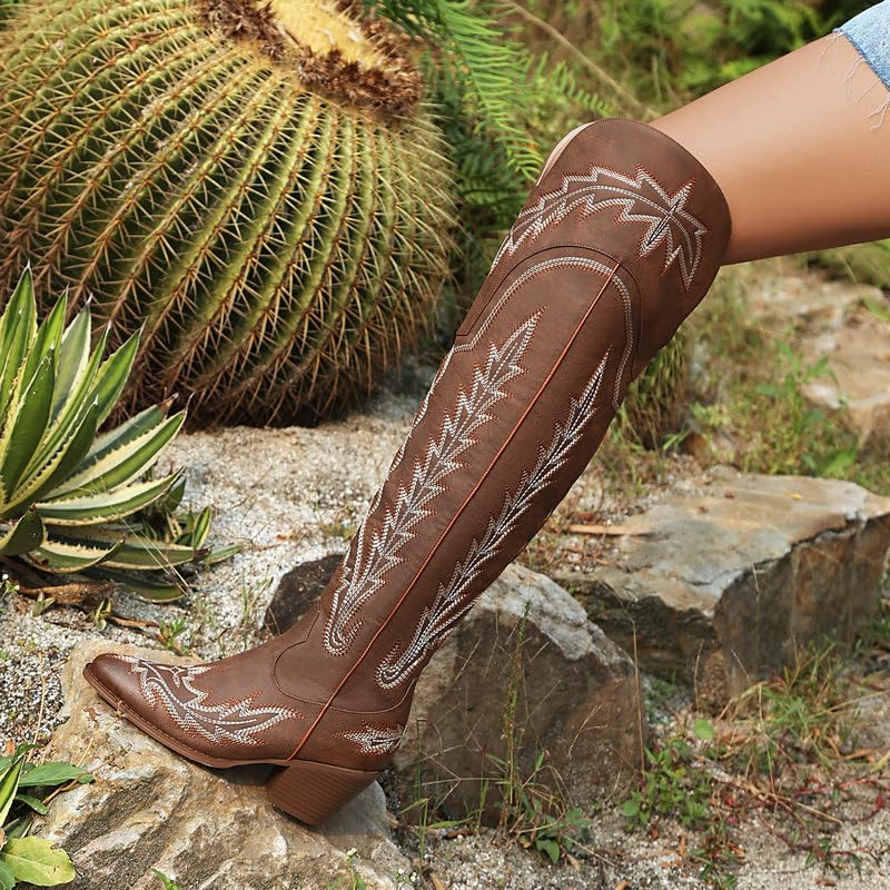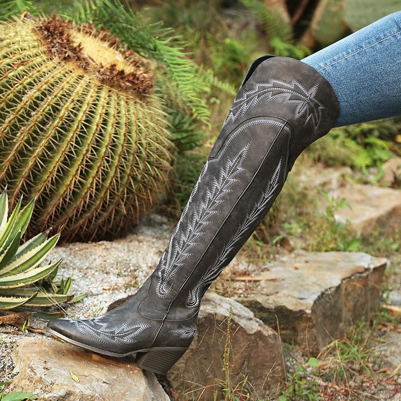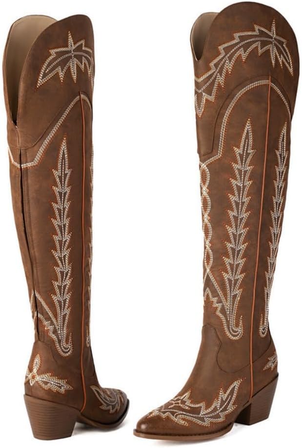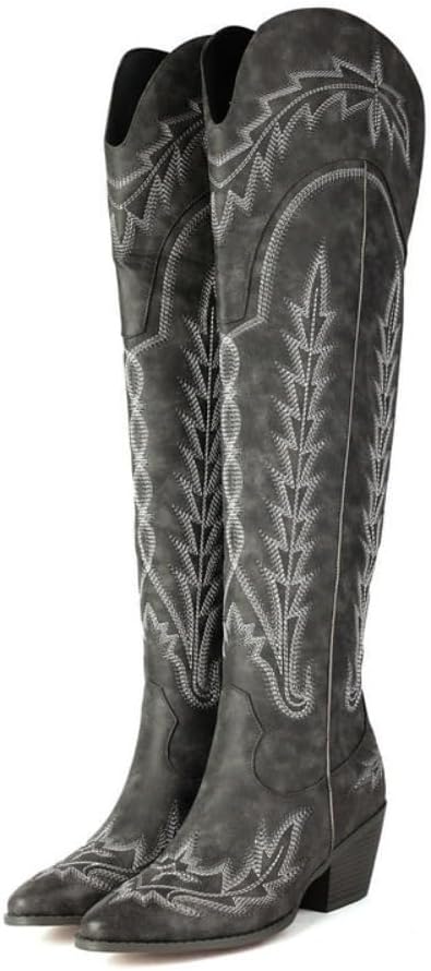 Over the Knee Cowgirl Boots for Women Pointed Toe Embroidered Western Boots with Side Zipper Chunky Long Cowboy Plus Size Rave Fashion Cute Kawaii Goth Emo Grunge Comfy Casual Non Slip Walking Shoes