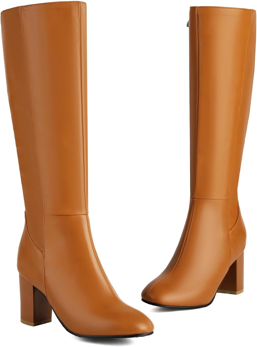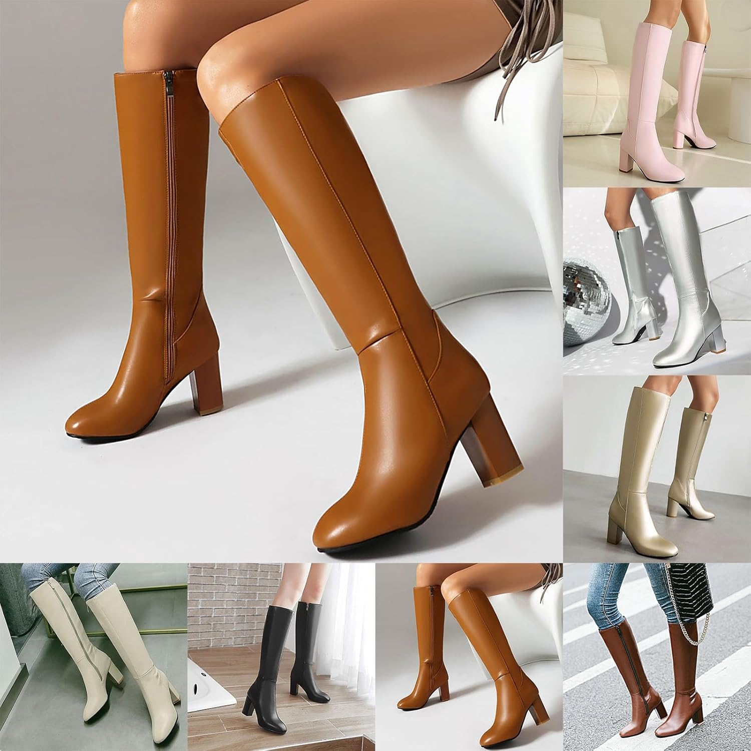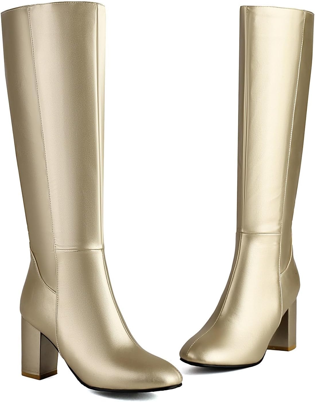 Platform Chunky High Heel Knee High Boots for Women Comfy Side Zipper Waterproof Pull on Long Boots Fashion Comfortable Almond Round Toe Solid Color Shoes Classic Motorcycle Knight Riding Tall Shoes
