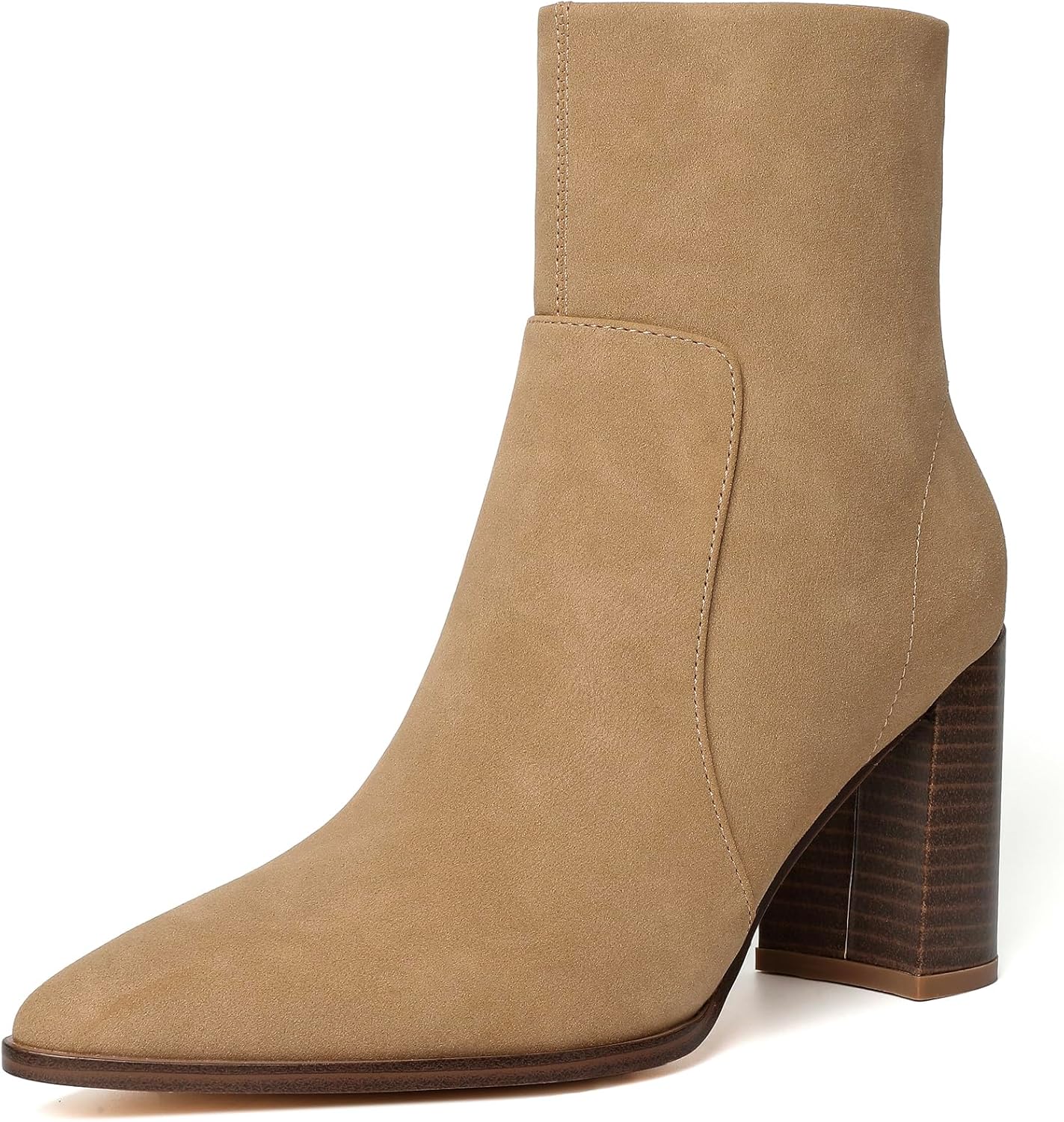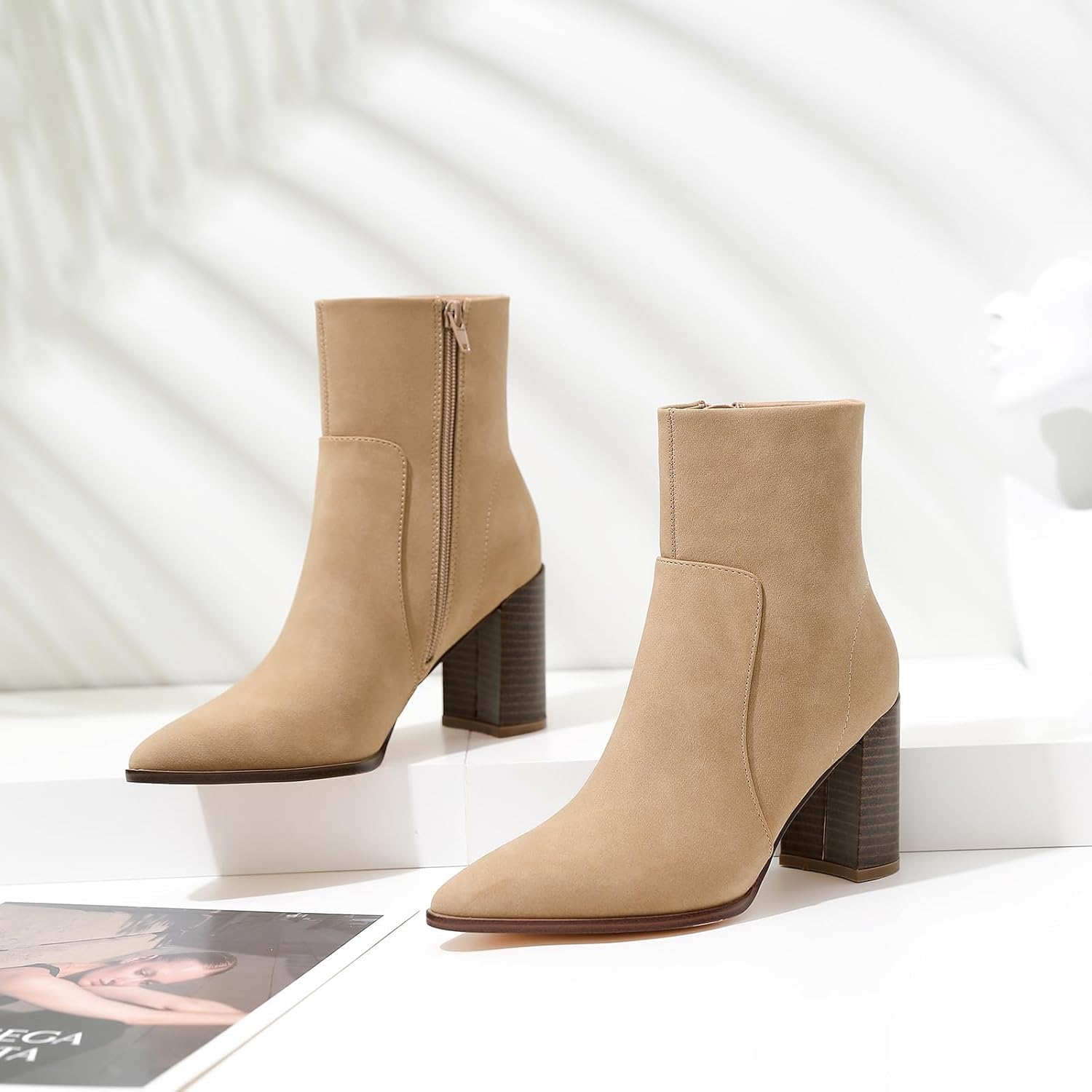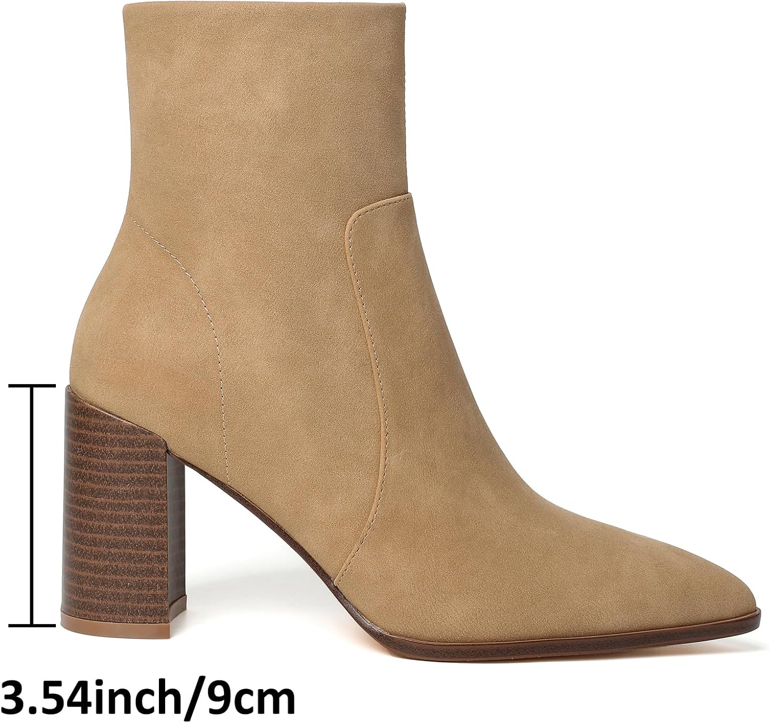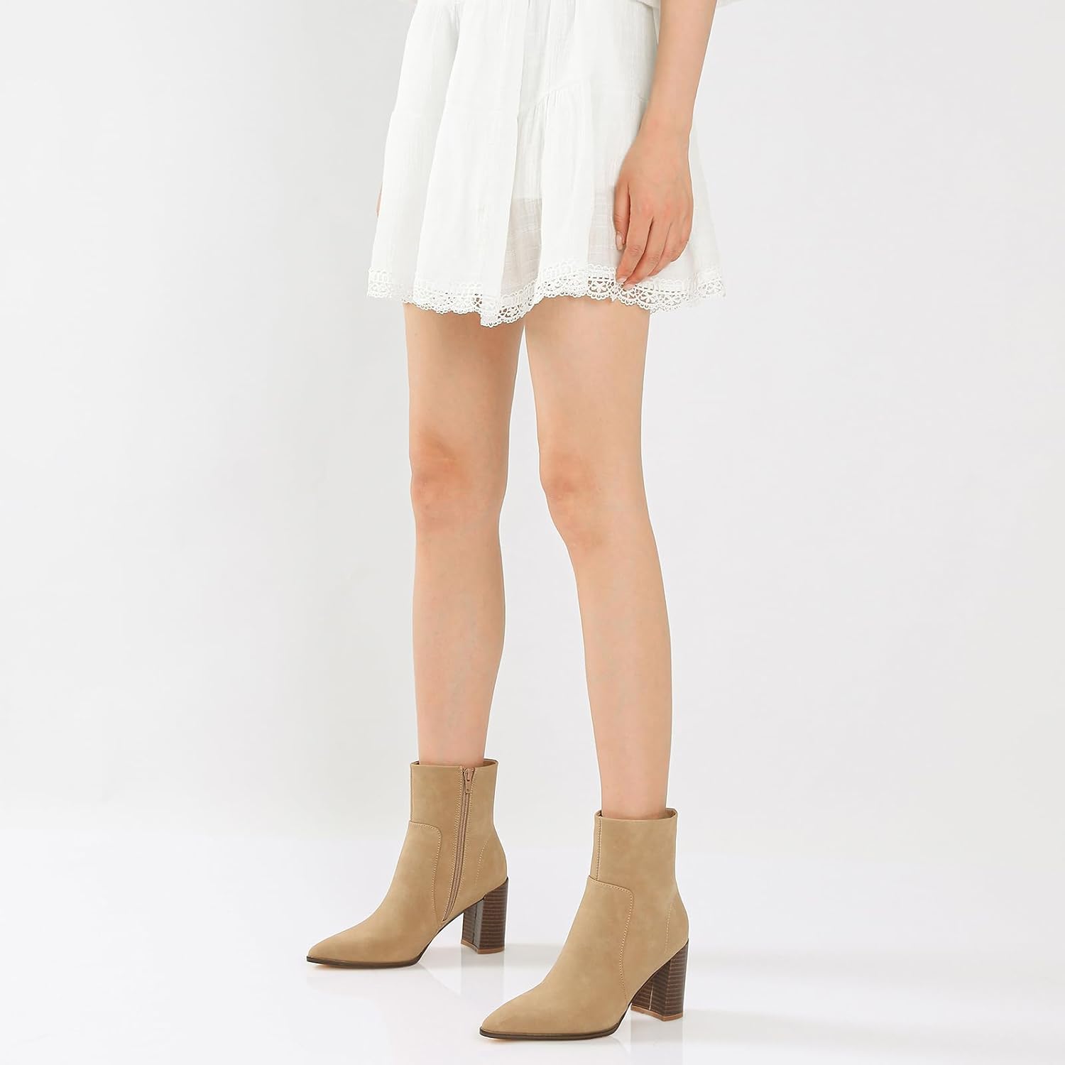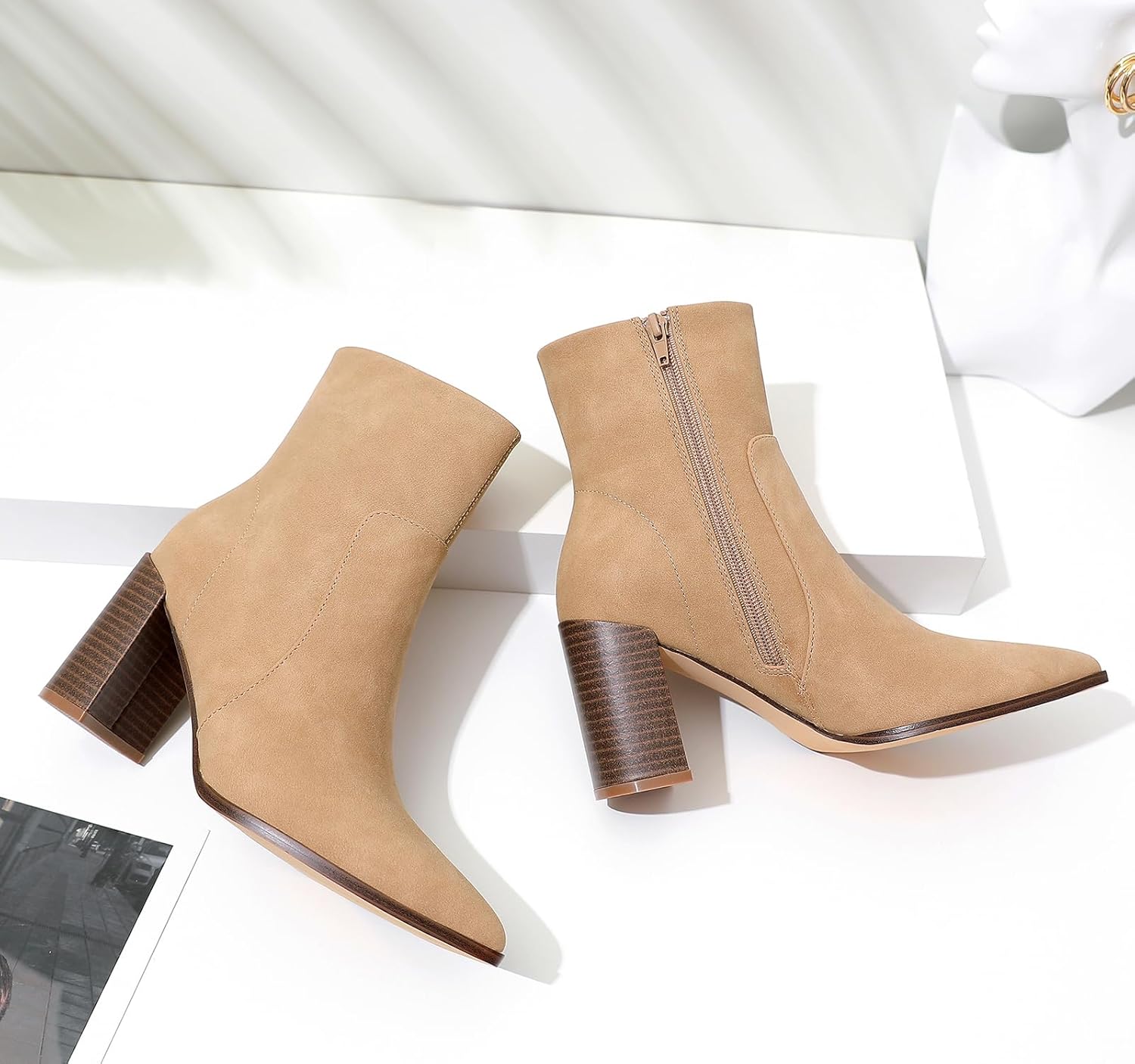 Susanny Ankle Boots for Women Chunky High Heel Warm Boot Mid Calf Chelsea Booties Leather Suede Fur Slip On Pointed Toe Heeled Boots Dress Work Hiking Snow Shoes