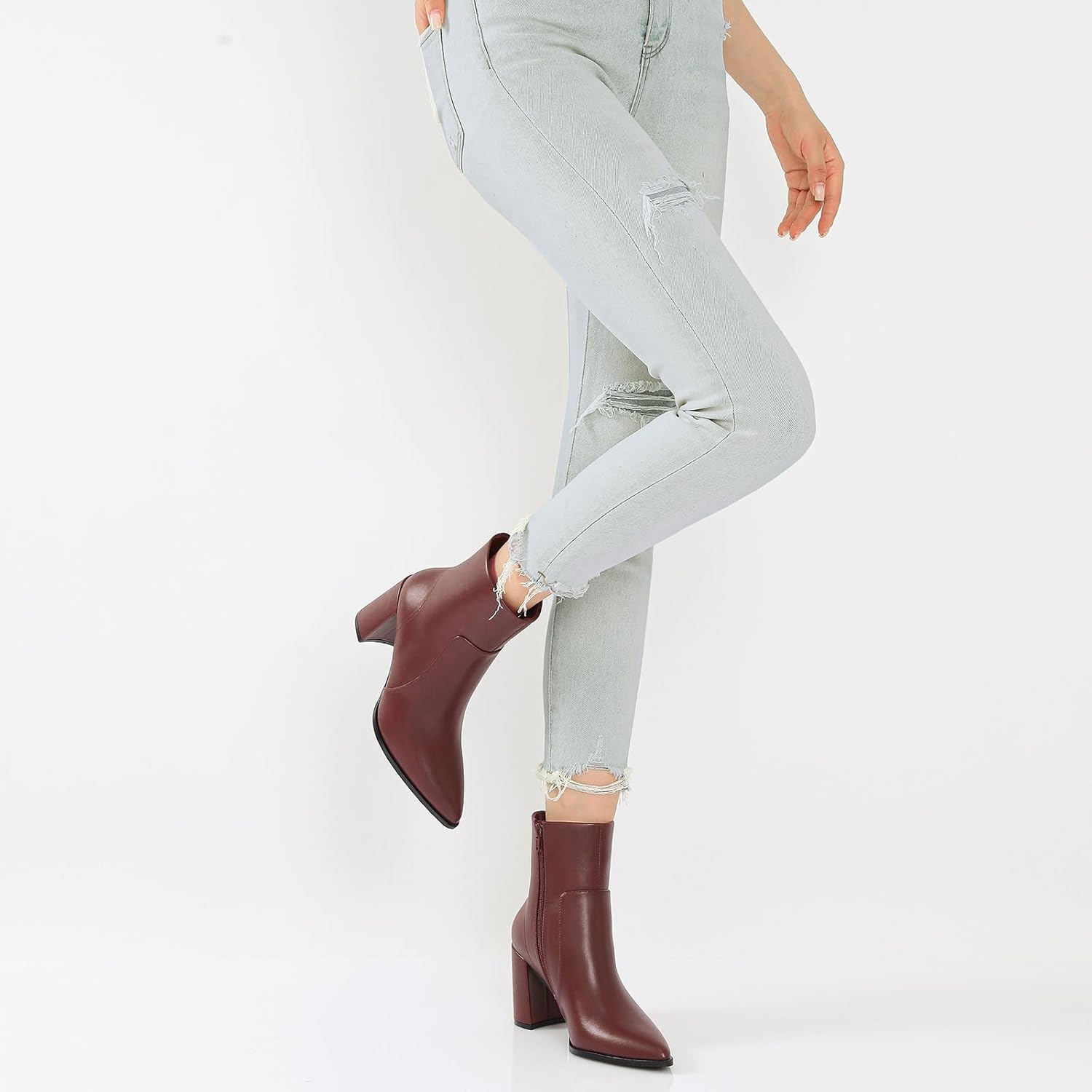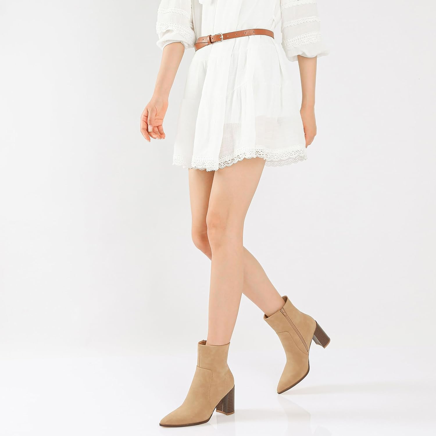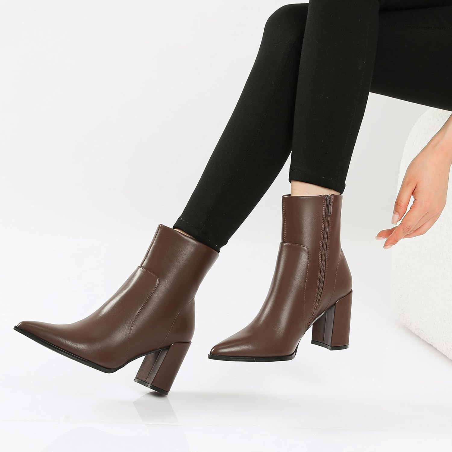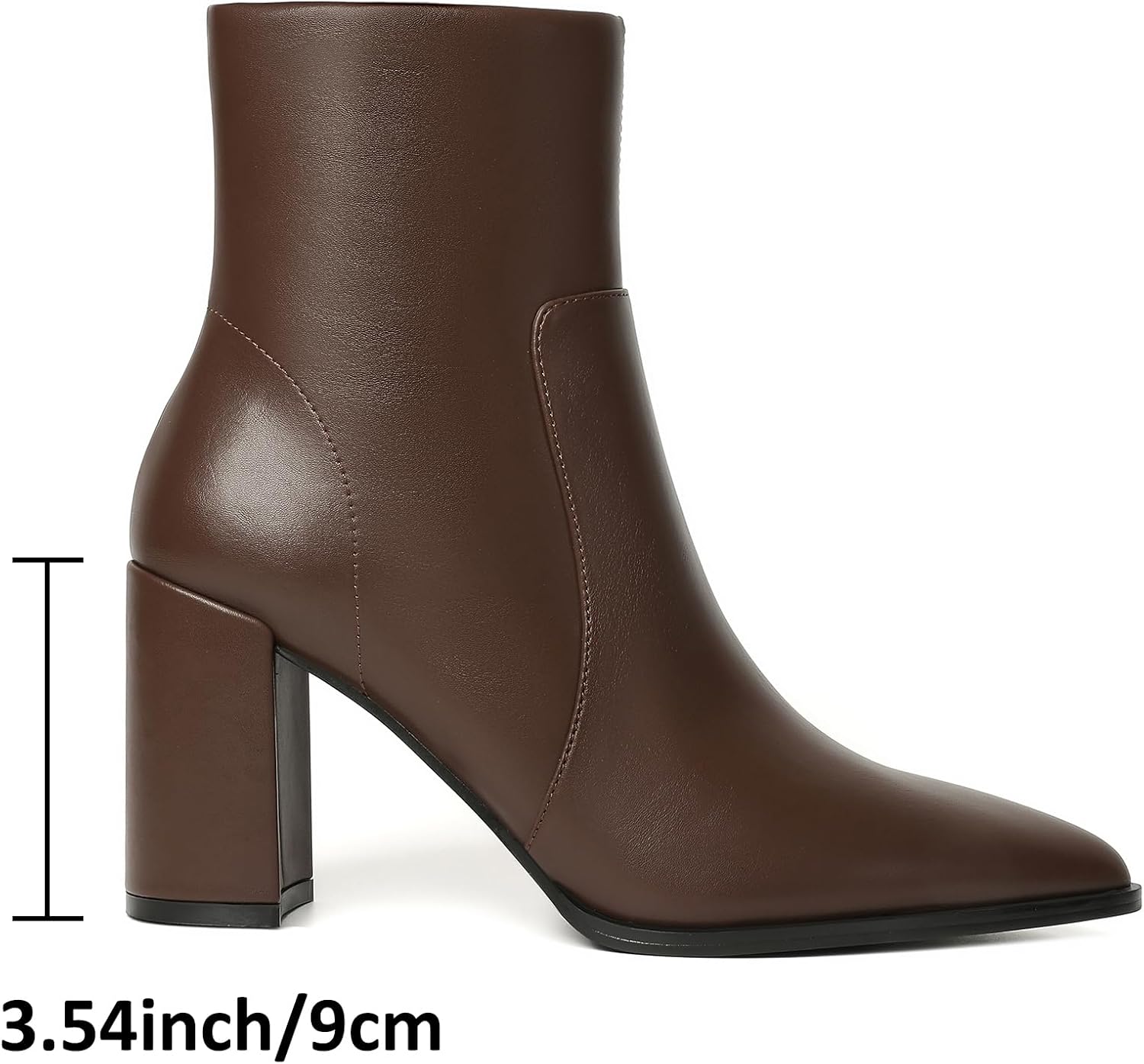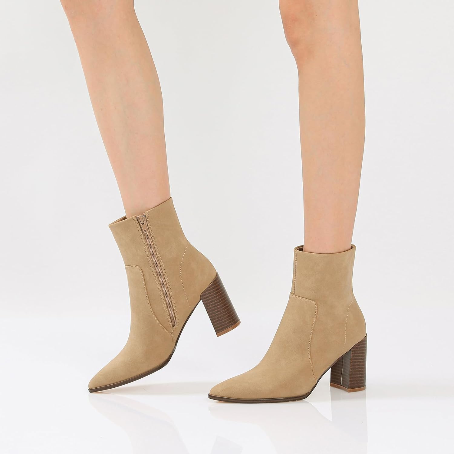 Susanny Ankle Boots for Women Chunky High Heel Warm Boot Mid Calf Chelsea Booties Leather Suede Fur Slip On Pointed Toe Heeled Boots Dress Work Hiking Snow Shoes