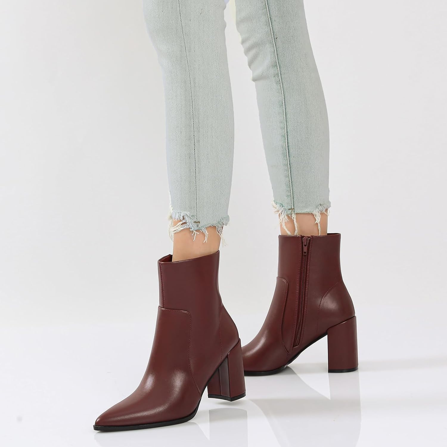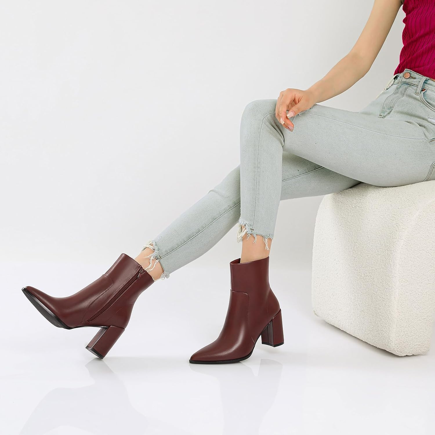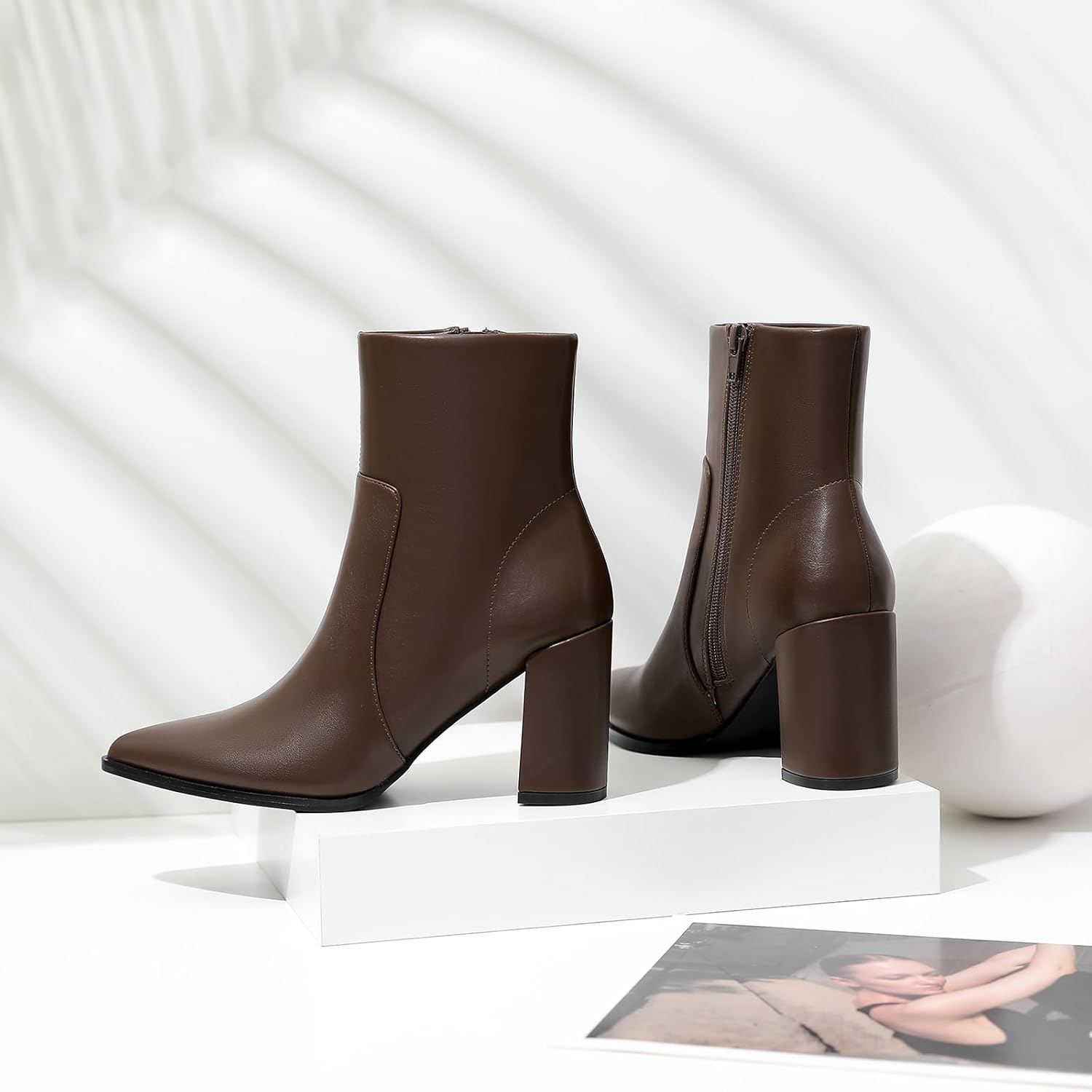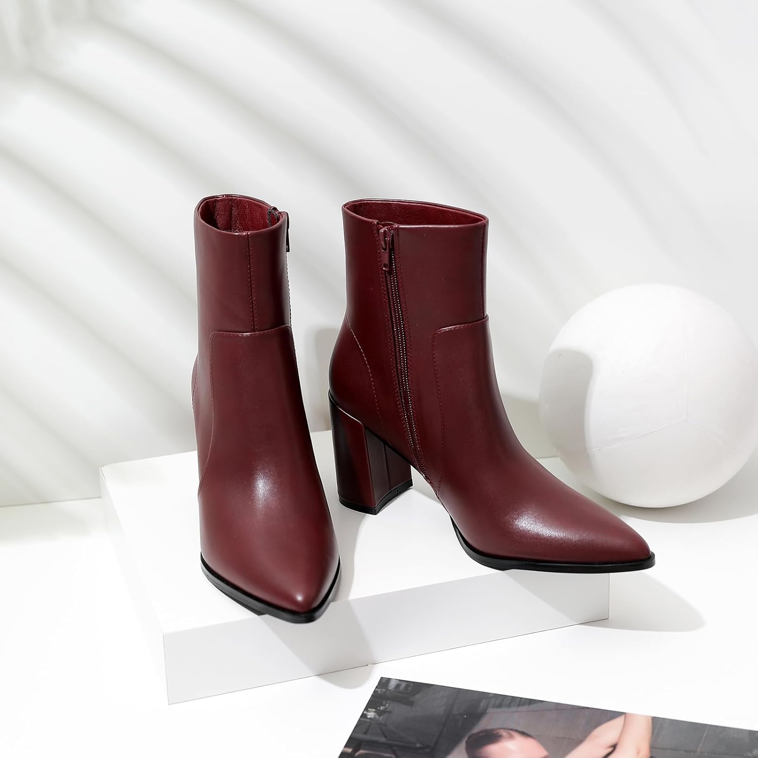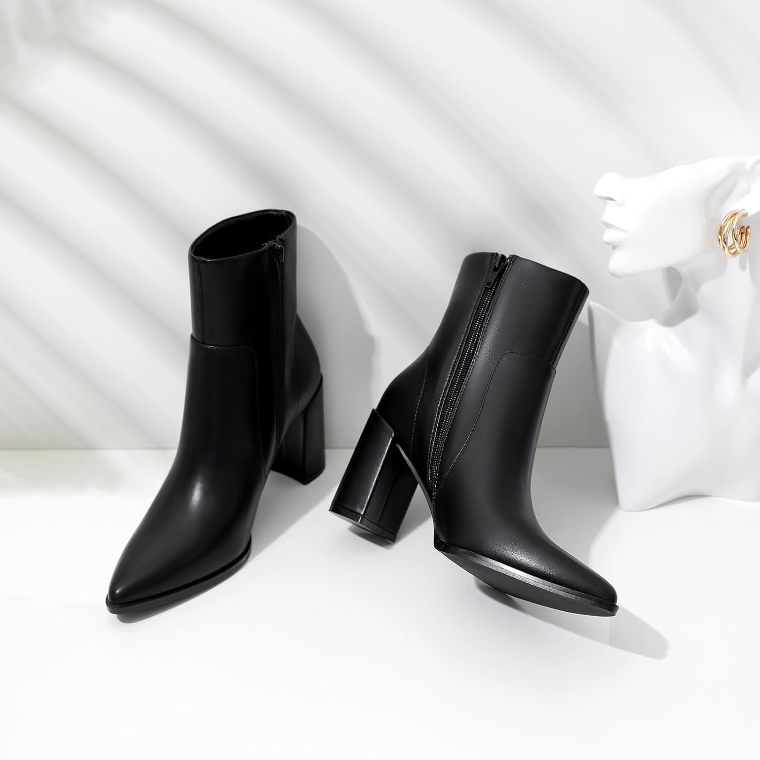 Susanny Ankle Boots for Women Chunky High Heel Warm Boot Mid Calf Chelsea Booties Leather Suede Fur Slip On Pointed Toe Heeled Boots Dress Work Hiking Snow Shoes