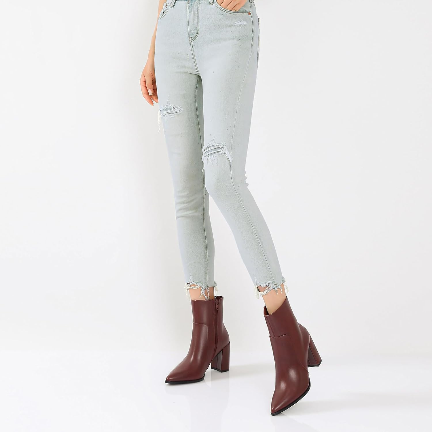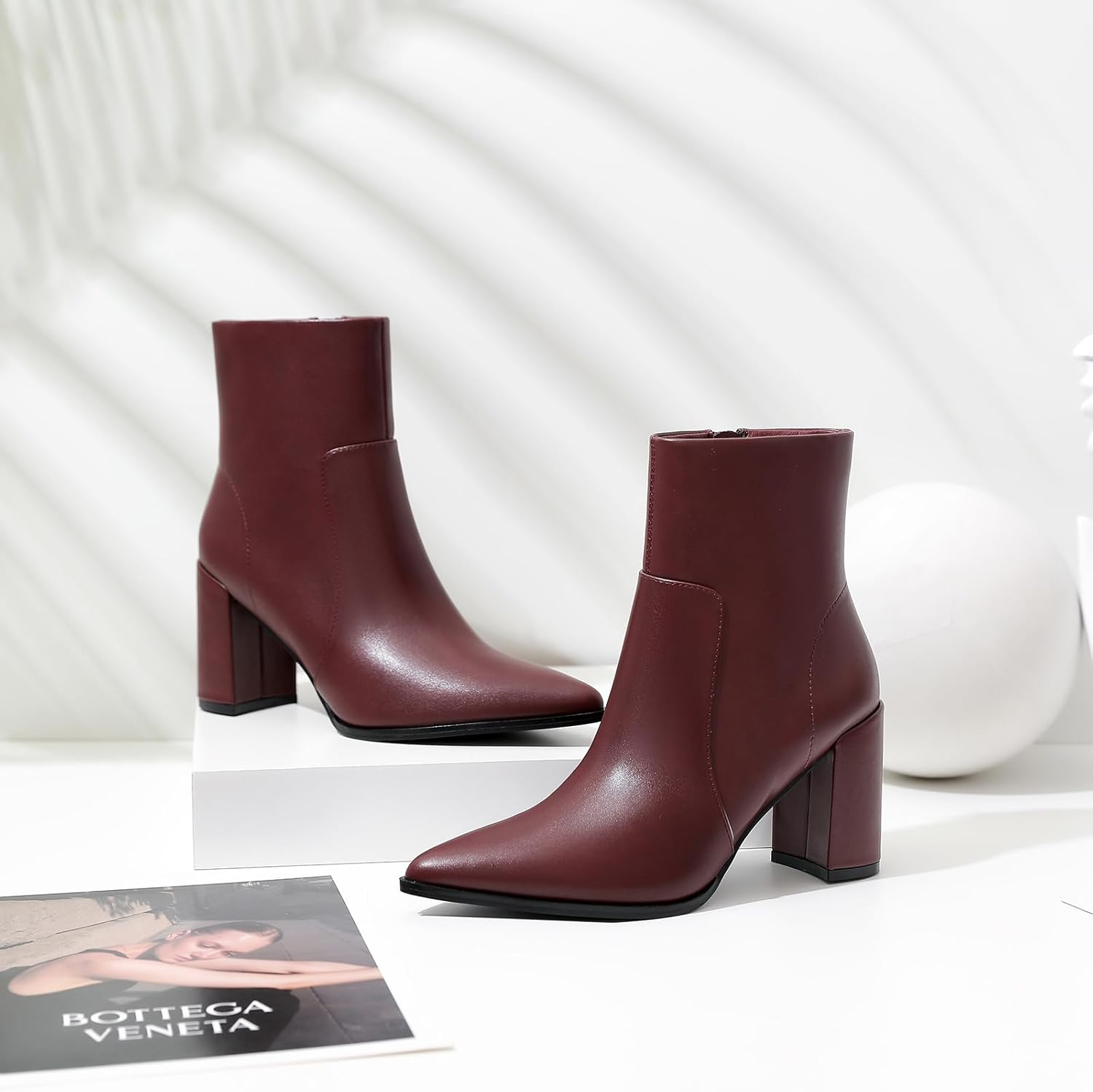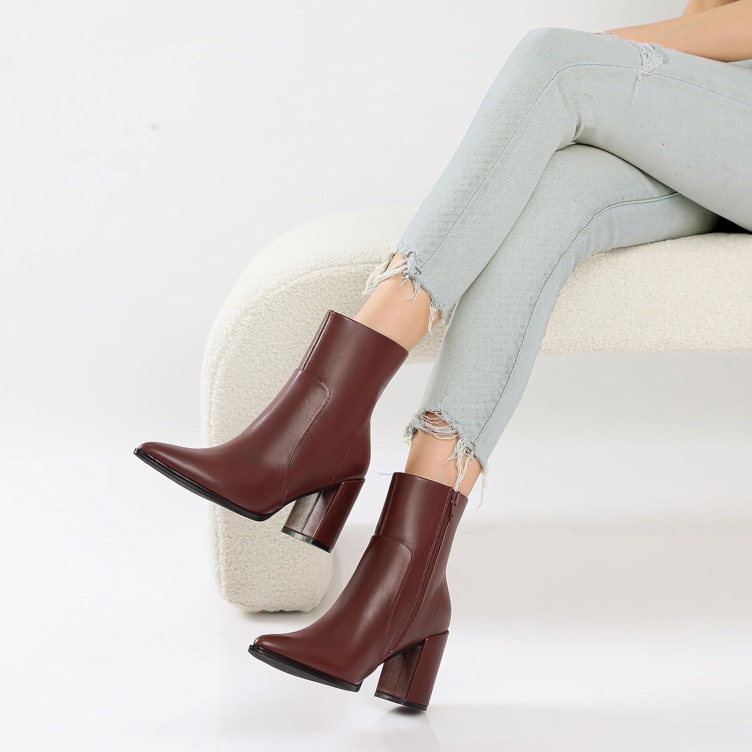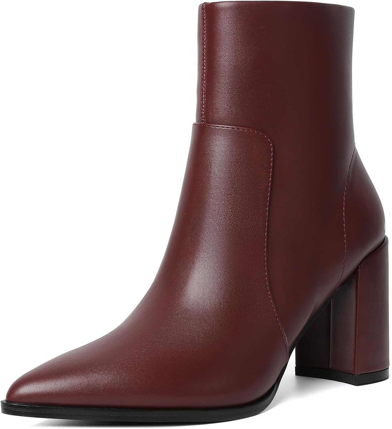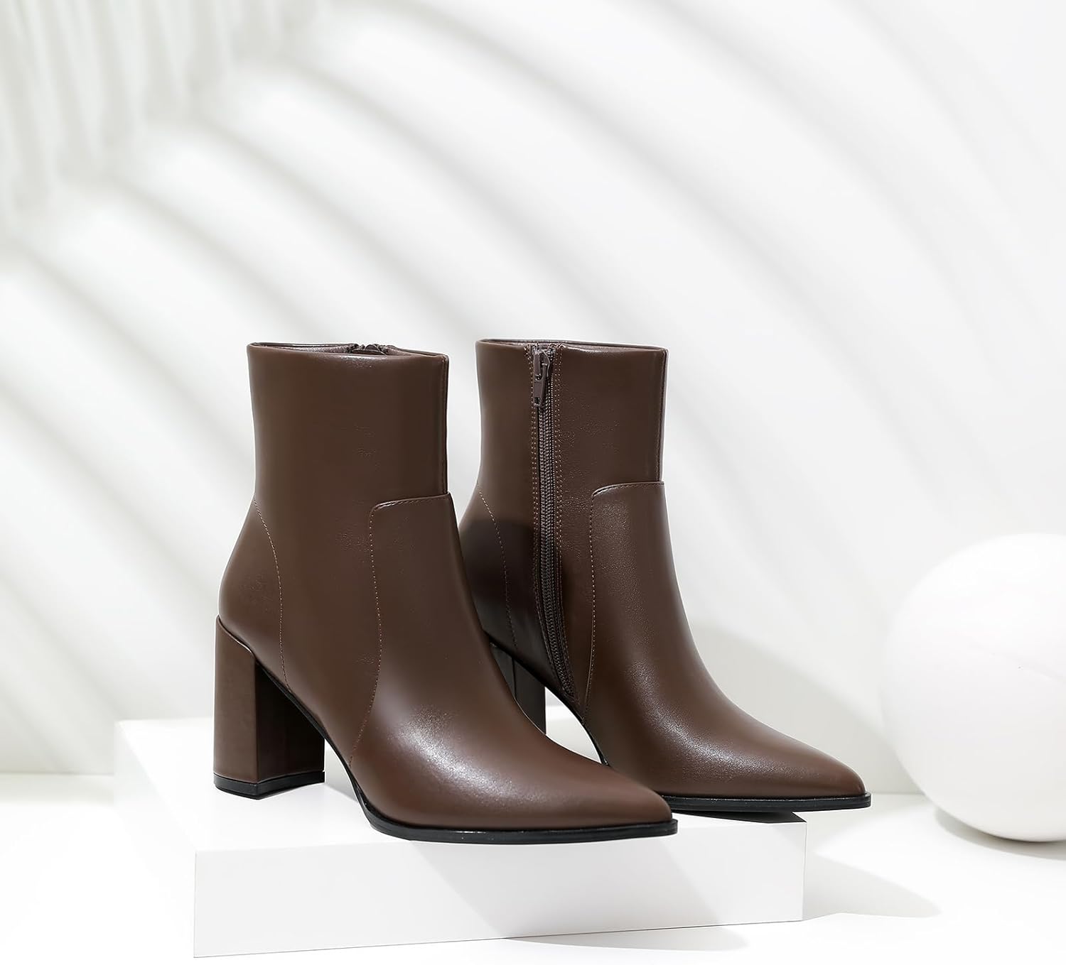 Susanny Ankle Boots for Women Chunky High Heel Warm Boot Mid Calf Chelsea Booties Leather Suede Fur Slip On Pointed Toe Heeled Boots Dress Work Hiking Snow Shoes