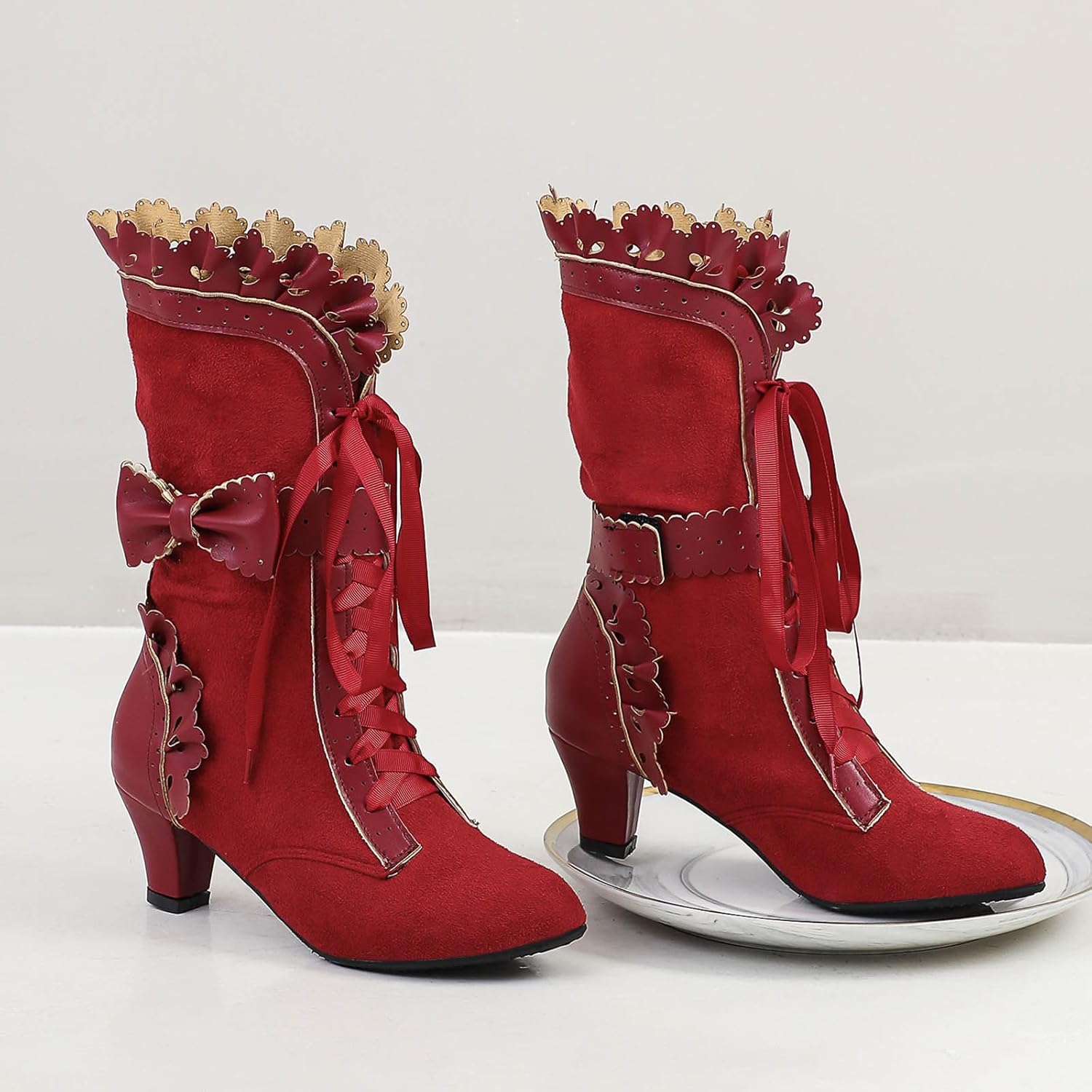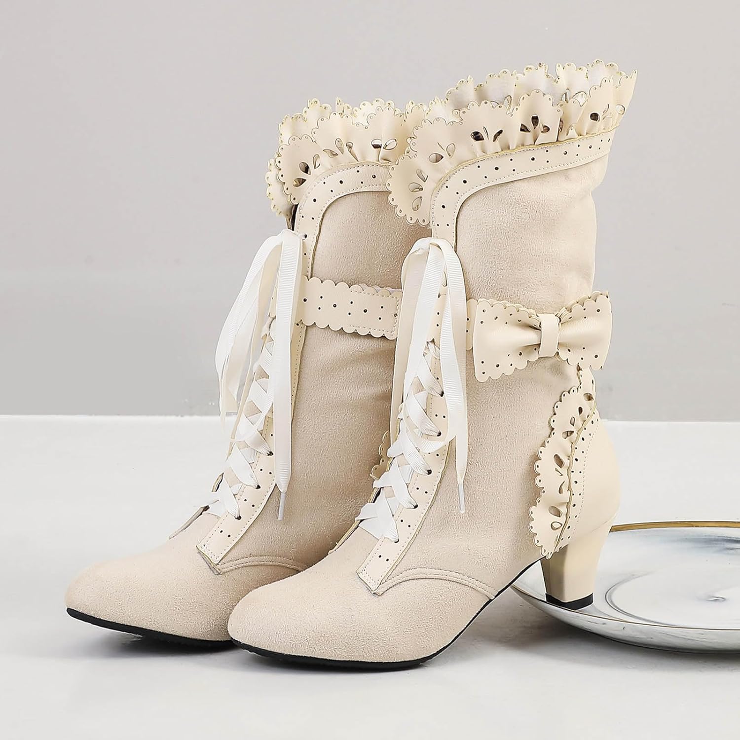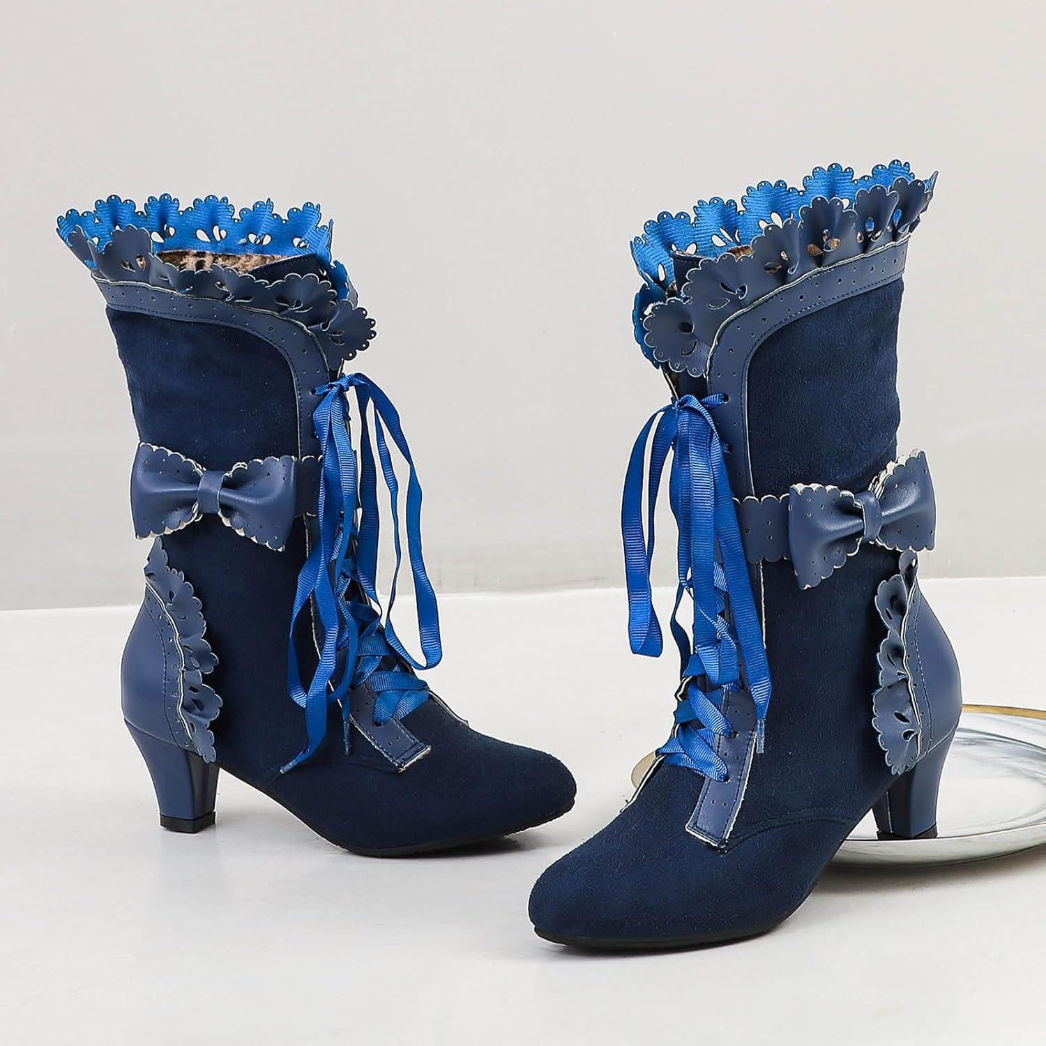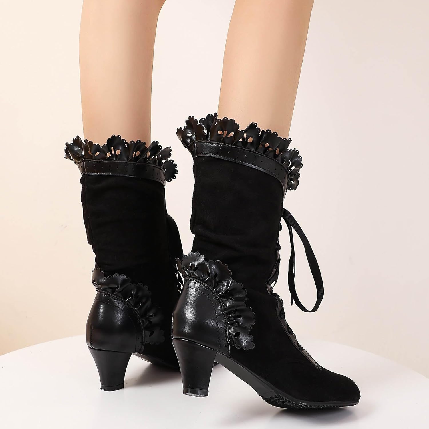 Be the first to review “Victorian Boots for Women Vintage Bow Ruffles Goth Boots Costume Lace Up Retro Boot Halloween Witch Stuff Cuban Heel Mid Calf Shoes” Cancel reply