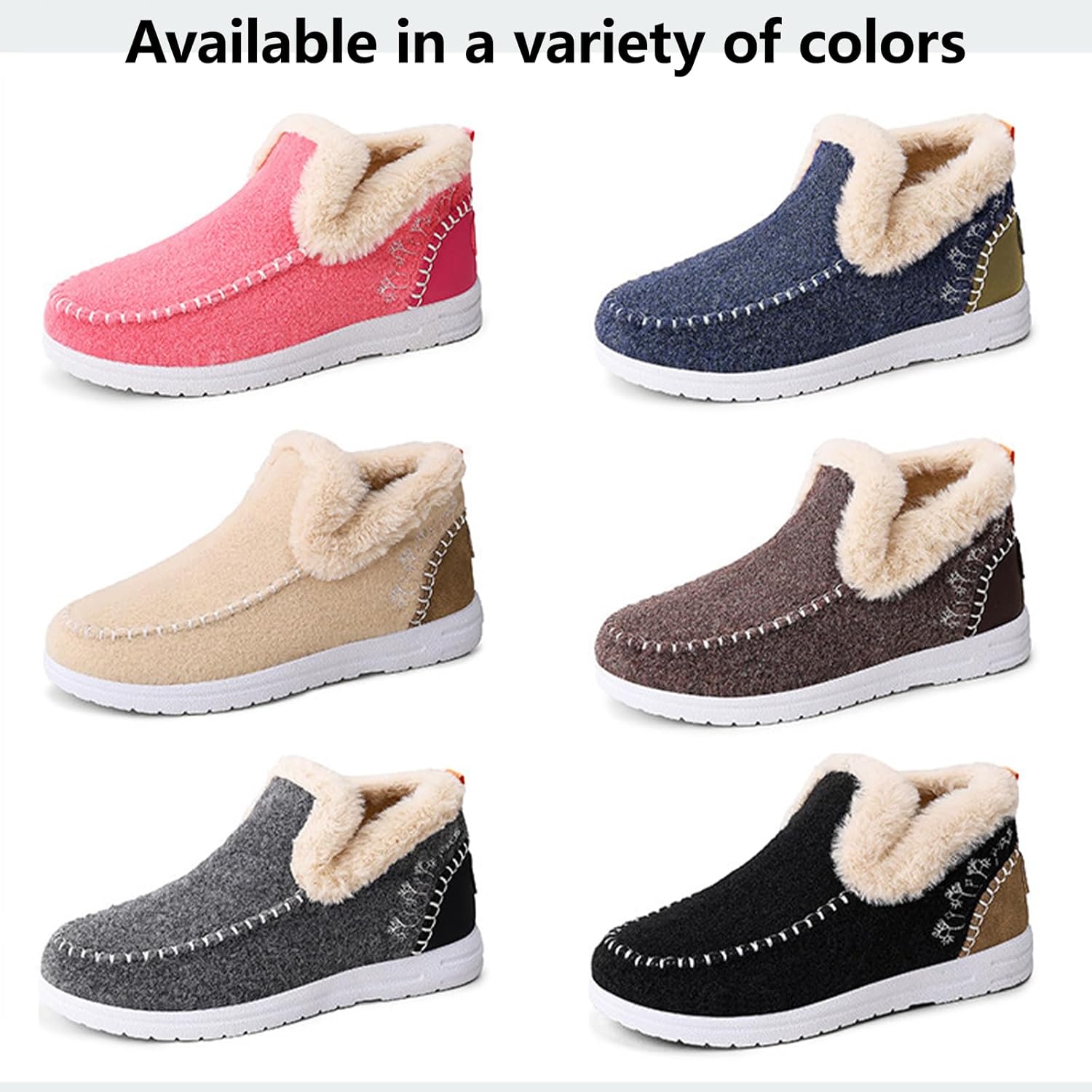 Women Winter Plush Lined Flat Shoes Comfy Orthopedic Arch Support Outdoor Walking Short Boots Non Slip Fuzzy Cozy Booties (10.5,Rose Red)