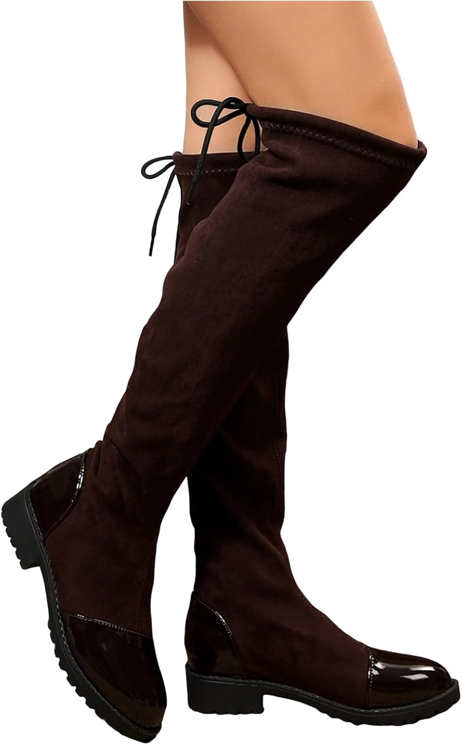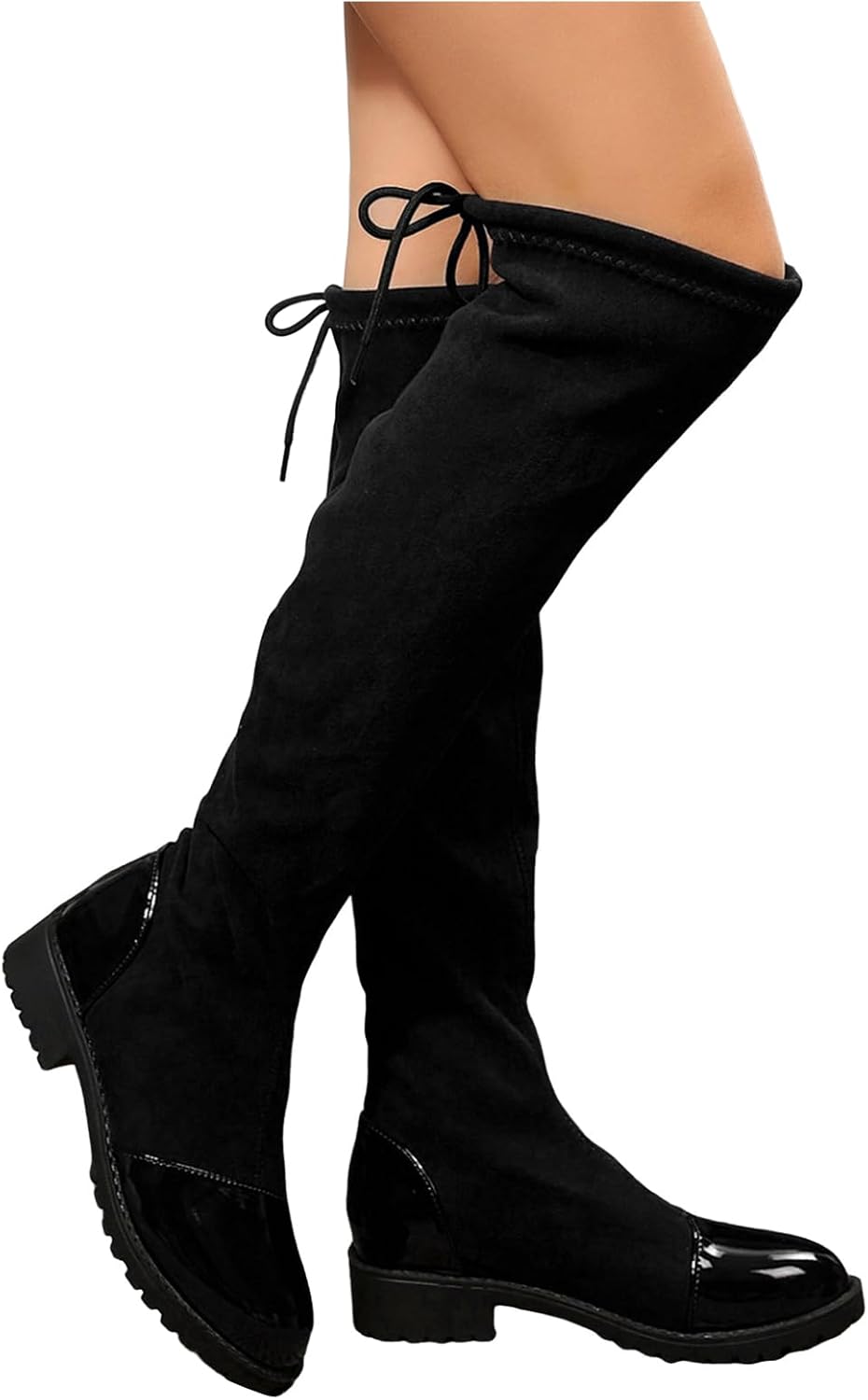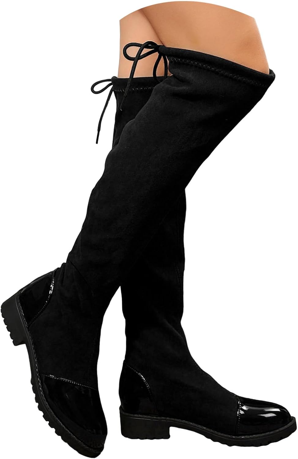 Be the first to review “Women’s Over The Knee Low Heel Lace Up Tall Boots Womens Stretchy Thigh High Combat Boot Fashion Round Toe Faux Leather Elastic Chunky Heels Pull On Booties Fall Long Boots for Women” Cancel reply